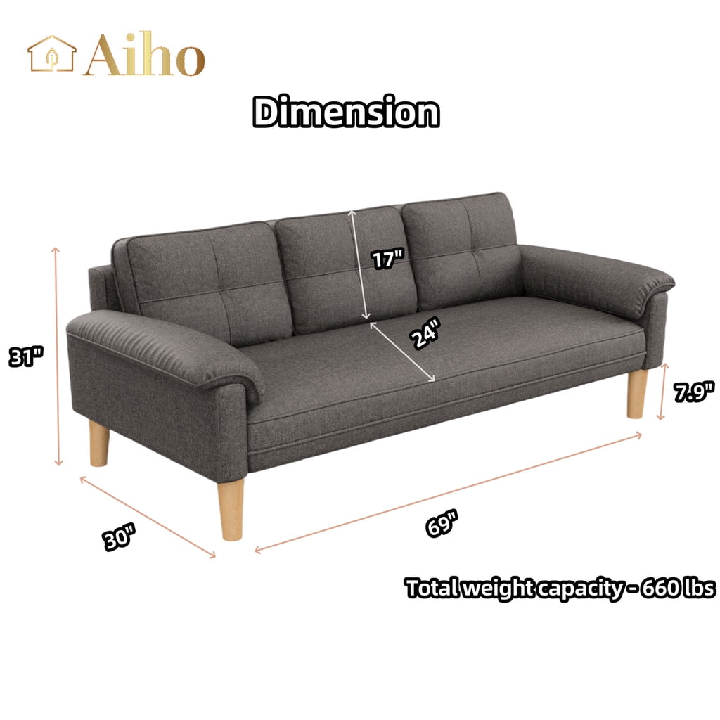 Aiho Couches and Sofas, Loveseat with 2 Comfortable Pillows and Sturdy Wood Legs for Living Room, Bedroom