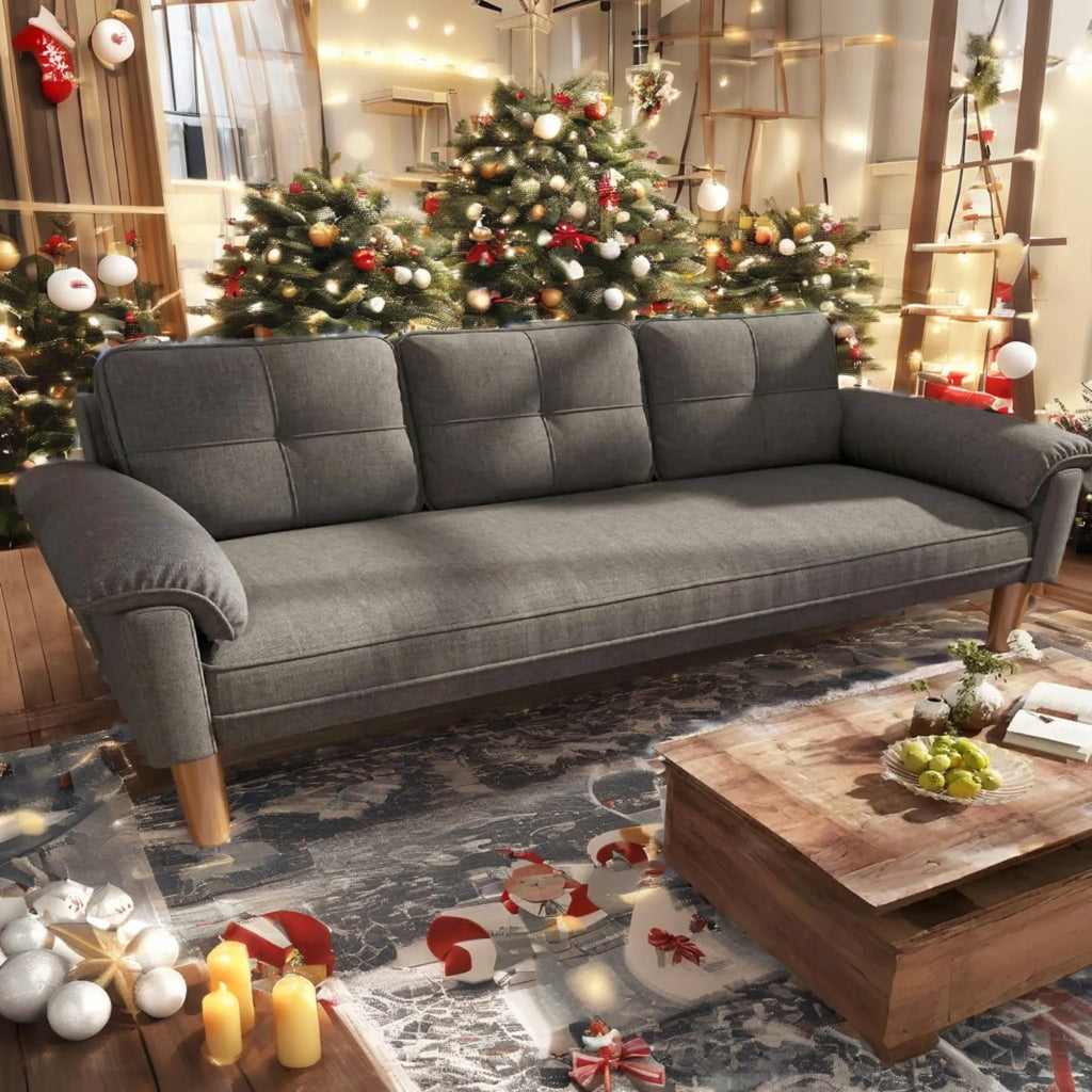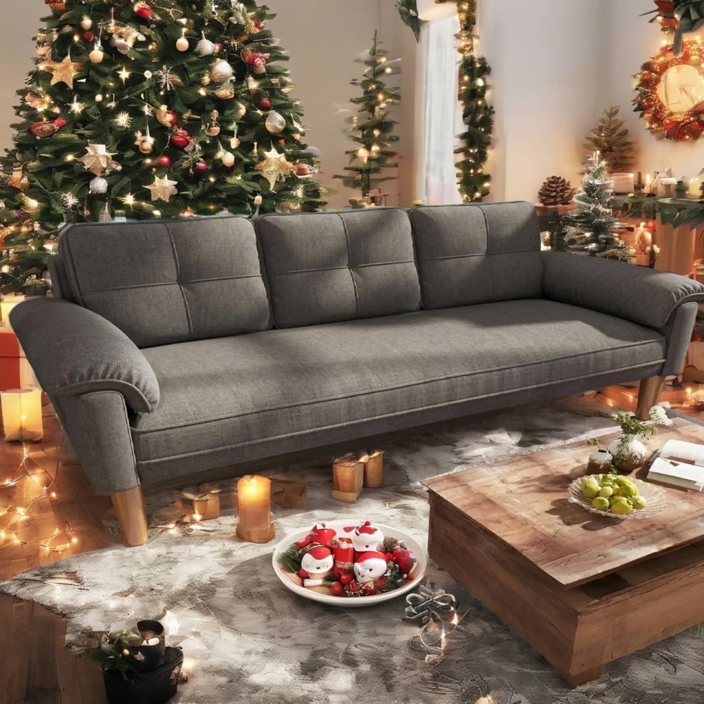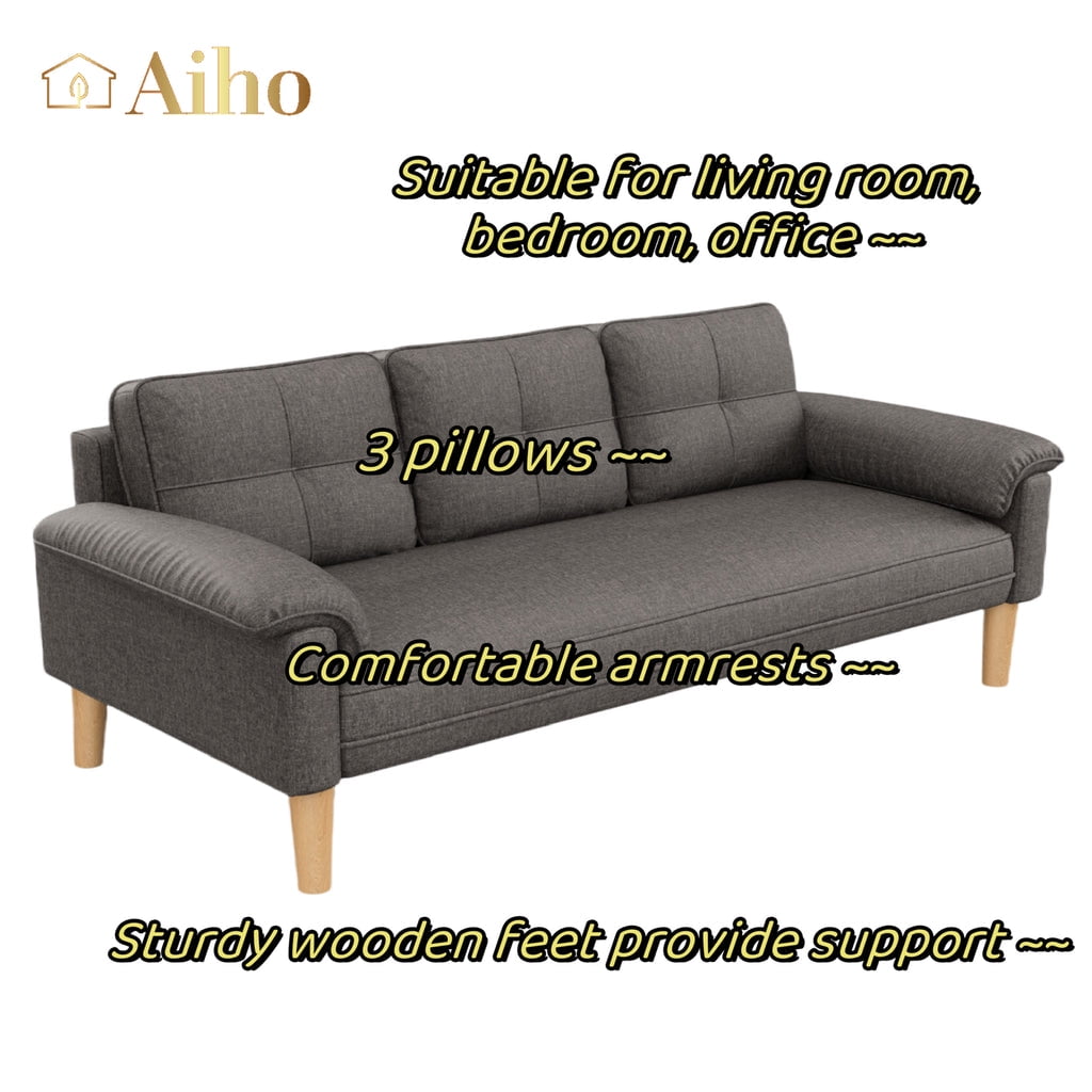 pillows, offering extra support for your head and neck to enhance relaxation. The spacious seating area accommodates three people, making it an ideal choice for family gatherings. The modern design and high-quality linen fabric add a touch of sophisticated