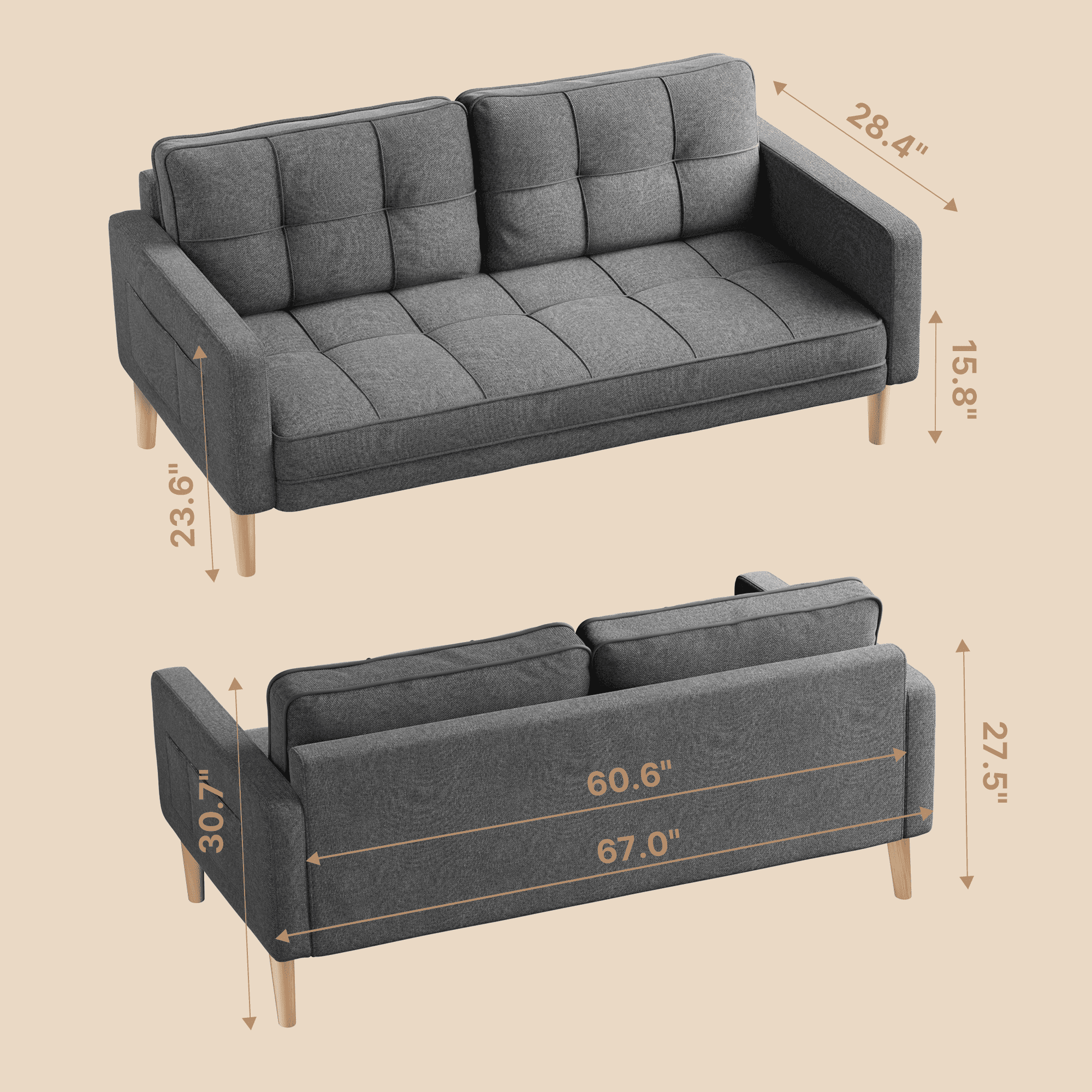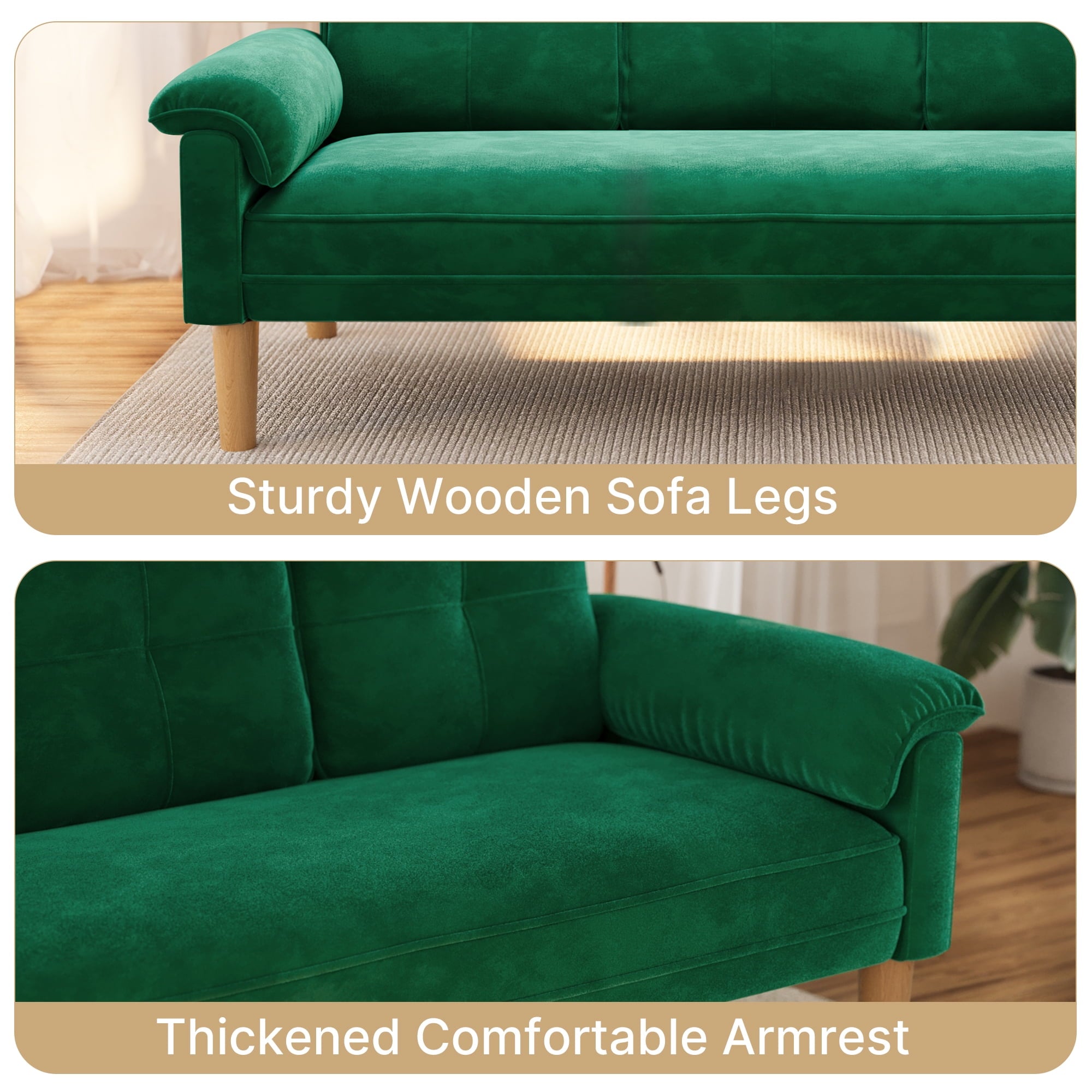 - Sturdy & Heavy-Duty Build:Crafted with a solid hardwood frame, the sofa boasts long-lasting durability. 4 upgraded wooden legs support up to 660 lbs, ensuring maximum sturdiness and stability.