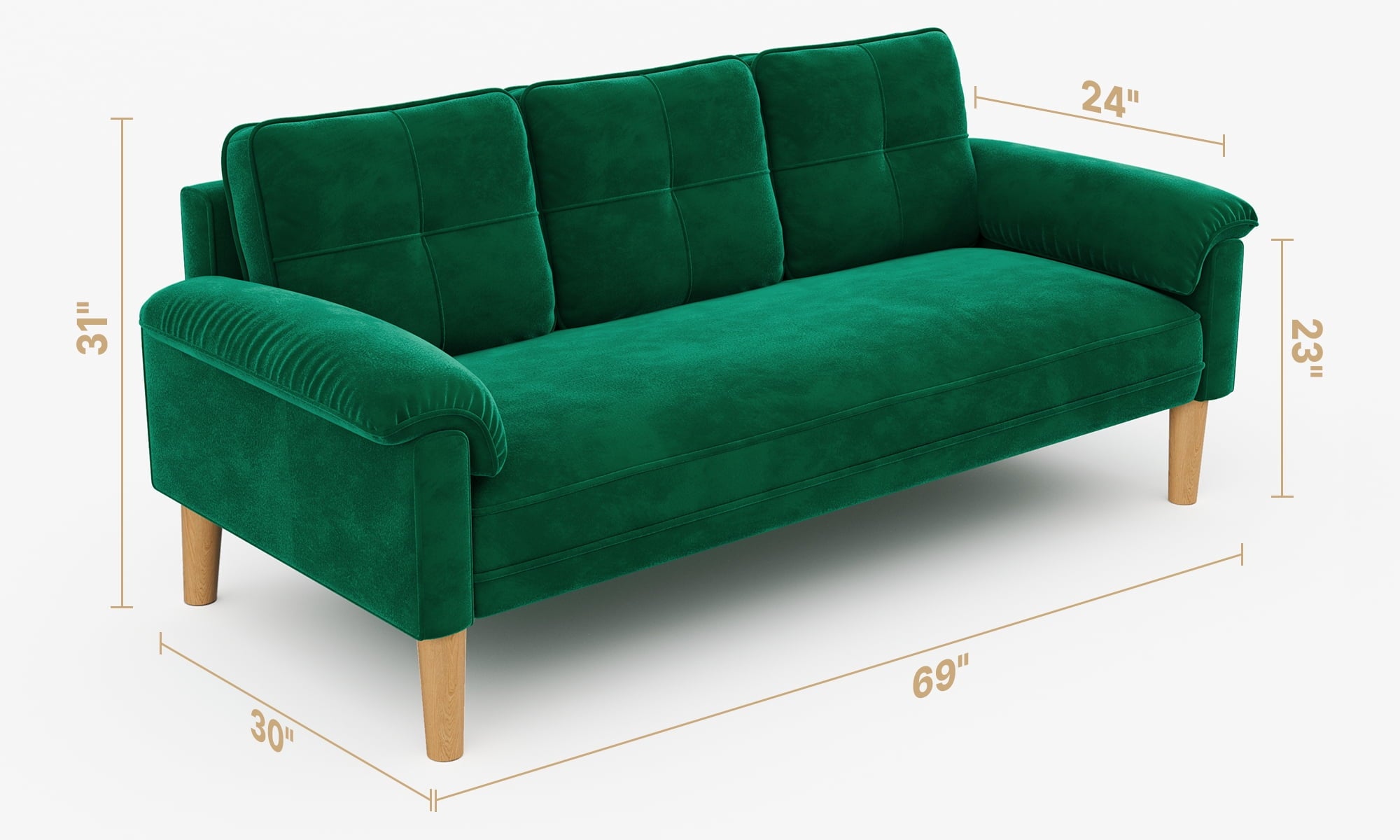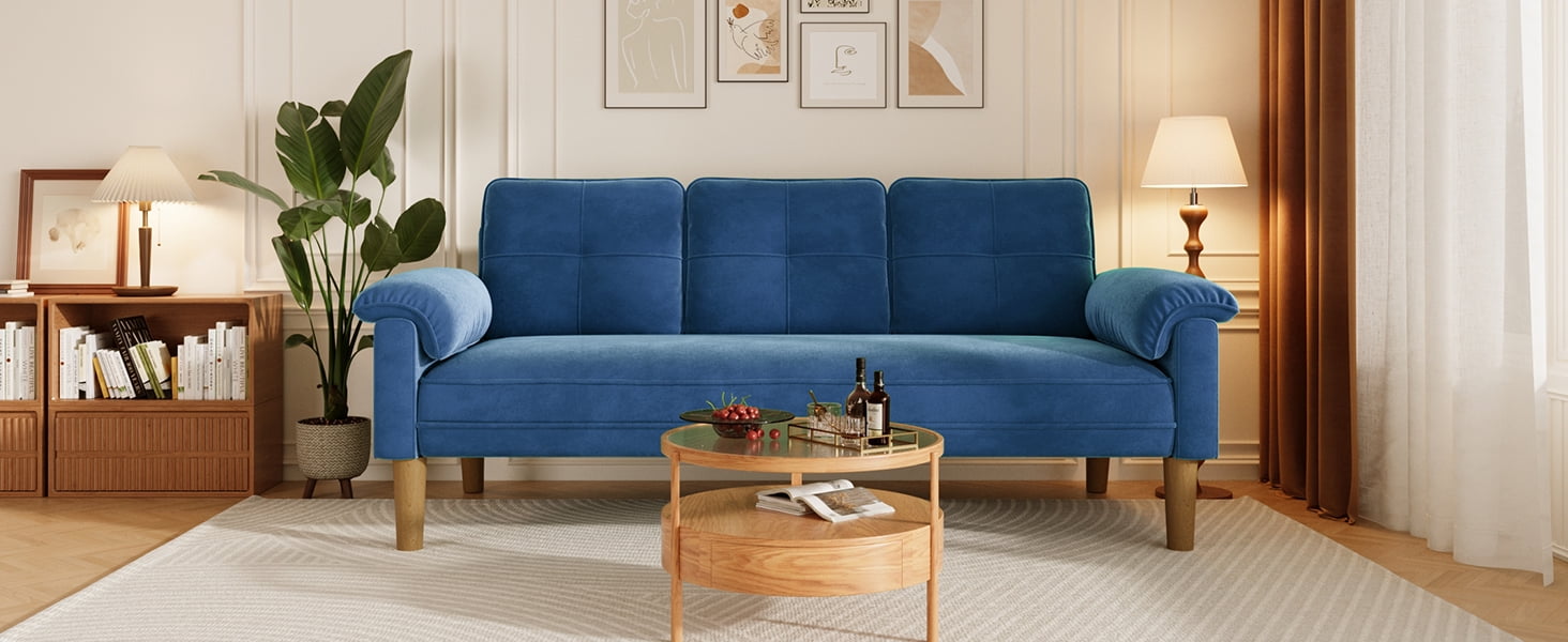- Enhanced Comfort Level:With a 69-inch width and 24-inch seat depth, this sofa comfortably fits 3 people. High-density foam fills the backrest and seat for soft support, while thickened padded armrests elevate the overall cozy experience.