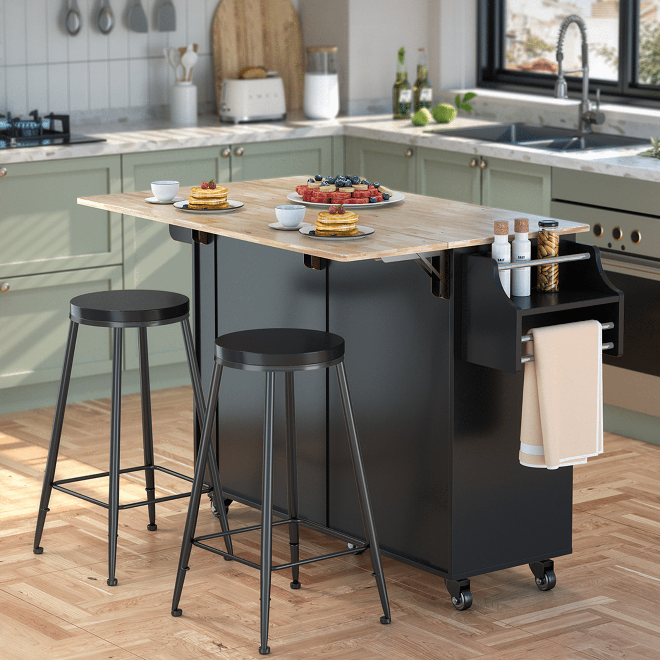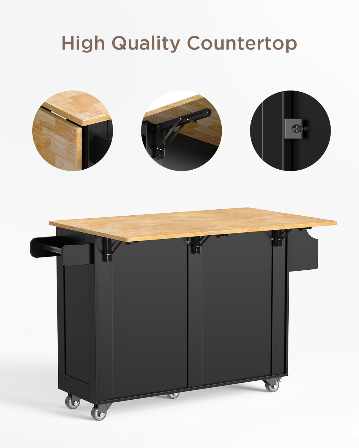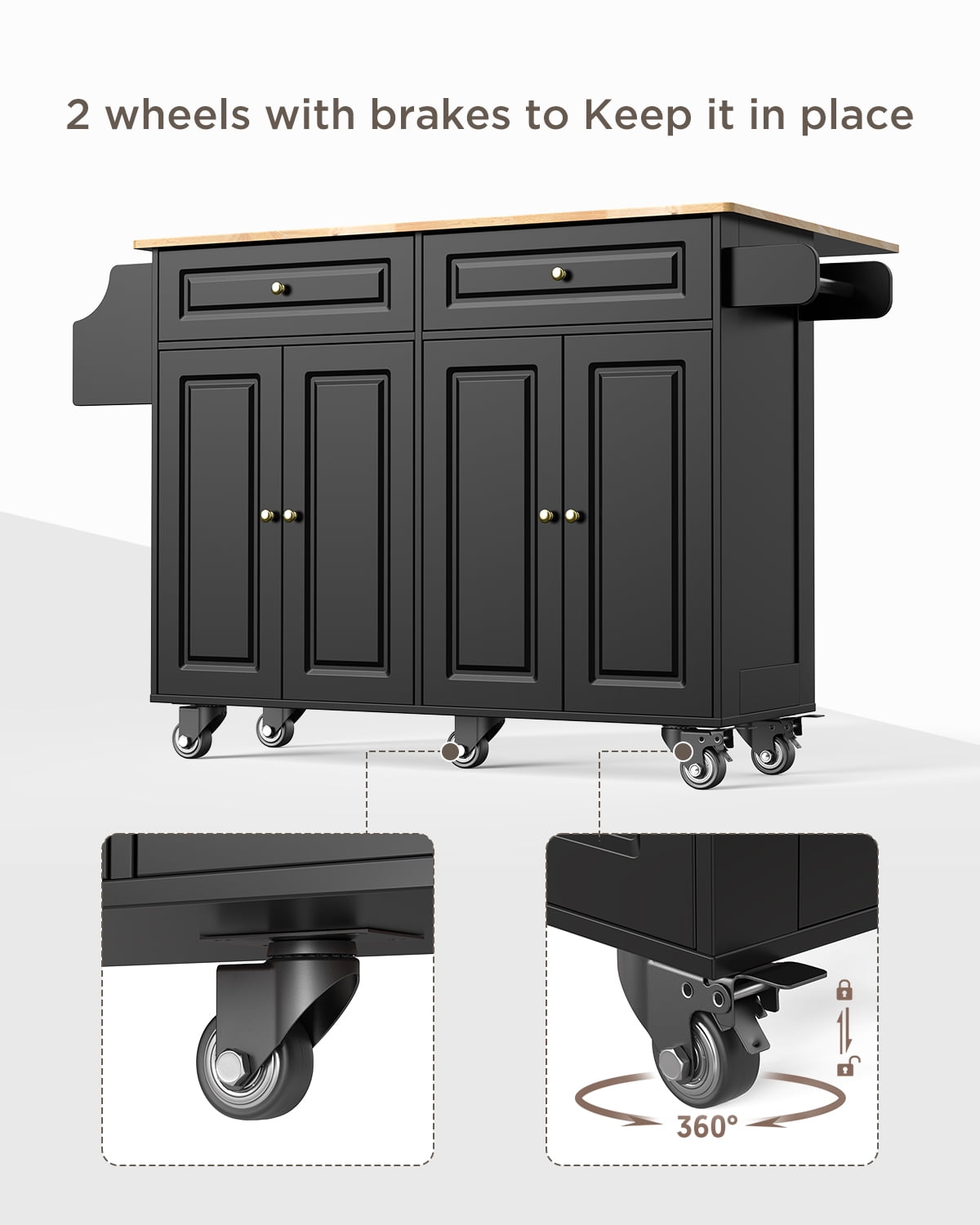 Aiho Rolling Kitchen Island Cart with Storage and Rubber Wood Countertop, Black