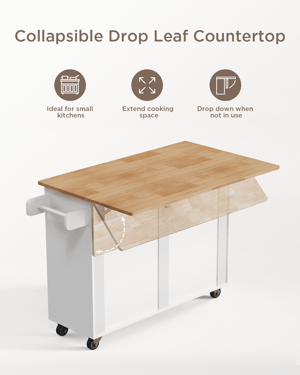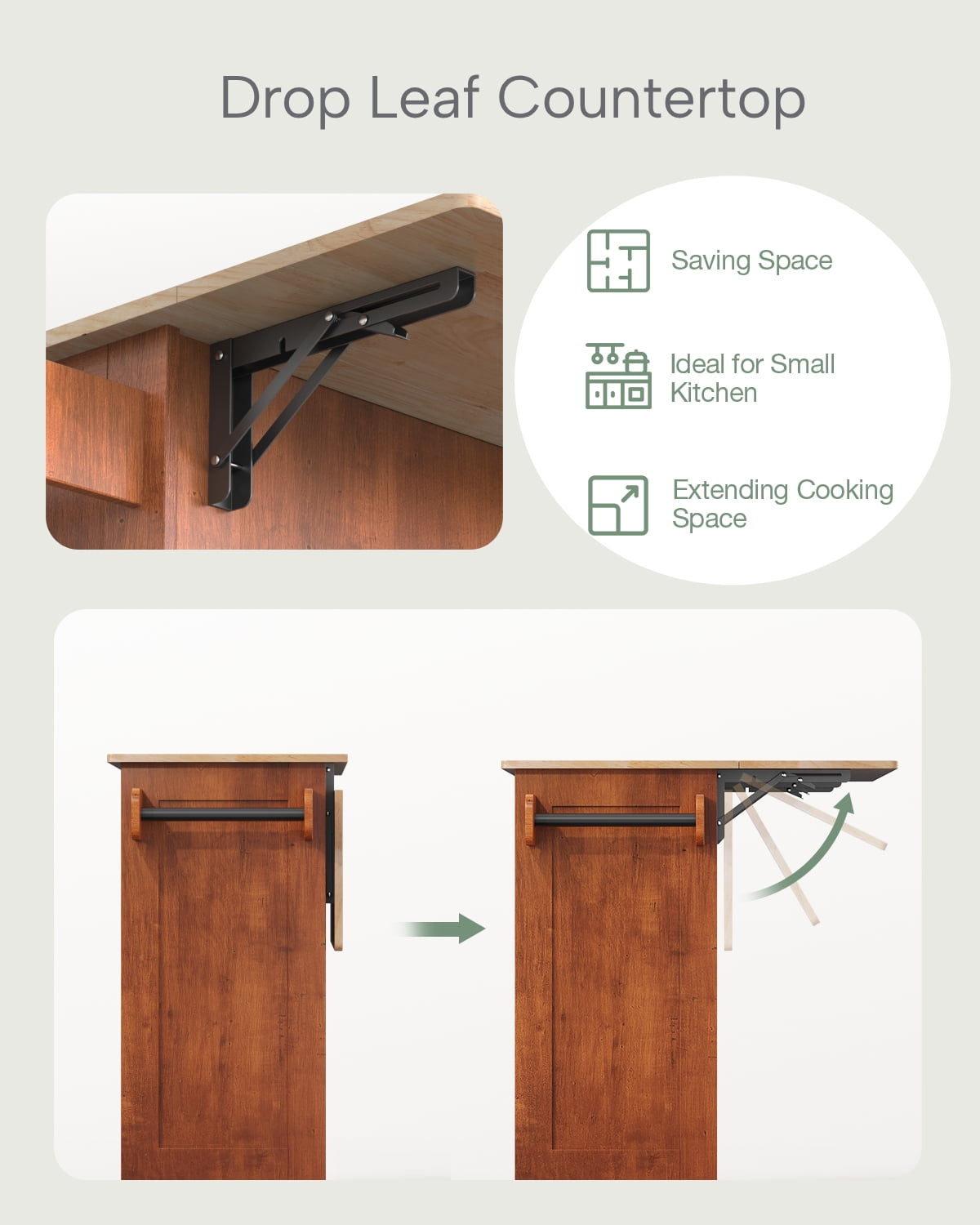 - 🍳【ADJUSTABLE SOLID WOOD COUNTERTOP 】 – The solid wood countertop can be folded out to create a spacious 29.3″ x 43.3″ kitchen workspace, allowing you to easily adjust it and gain extra counter space, perfect for smaller kitchens.