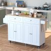 Aiho Rolling Kitchen Island Cart with Storage and Rubber Wood Countertop, White