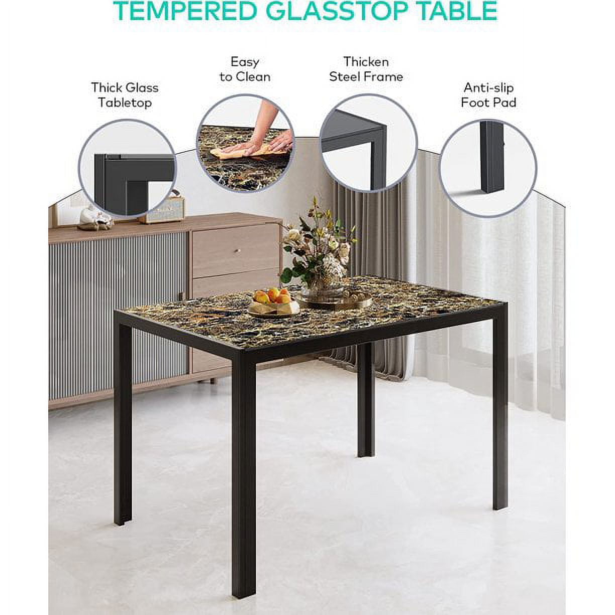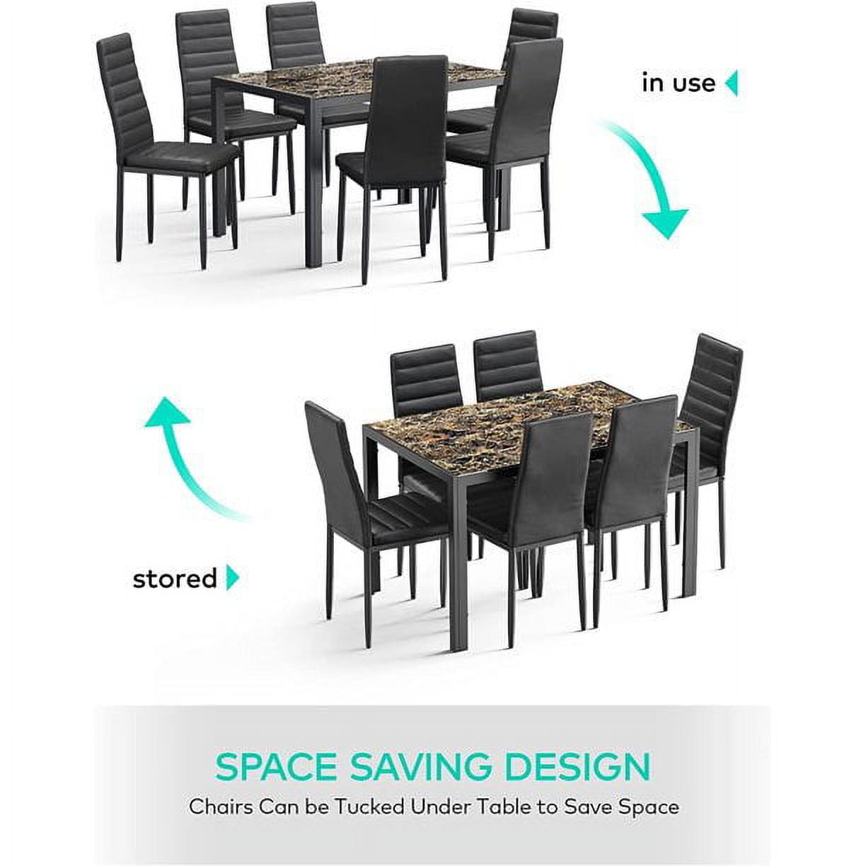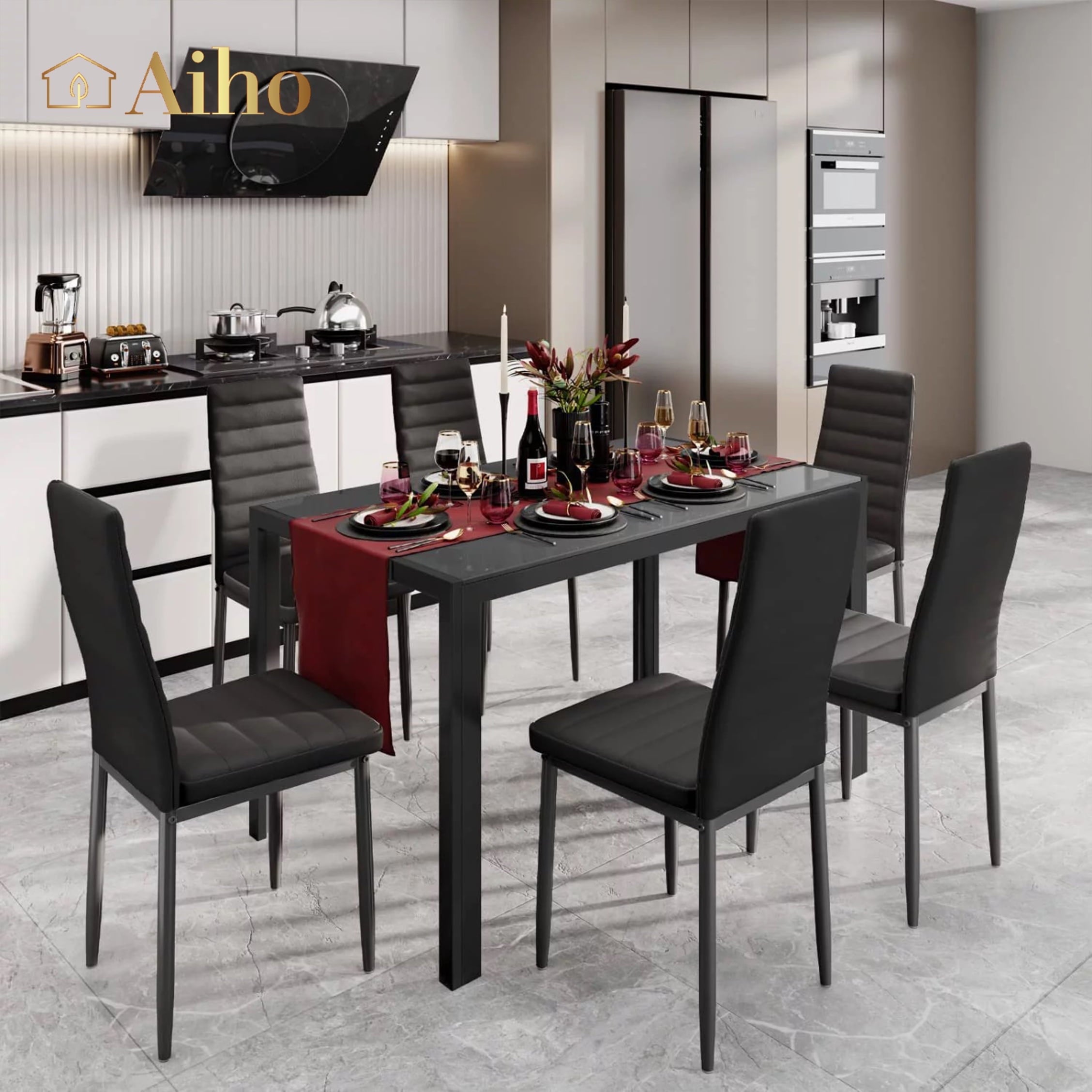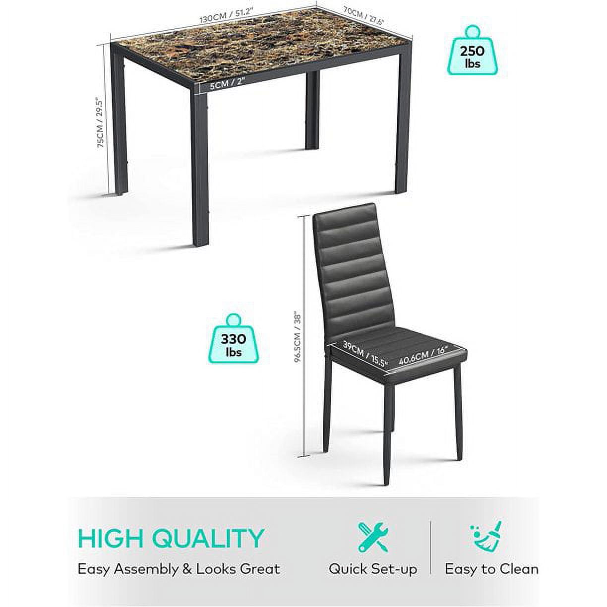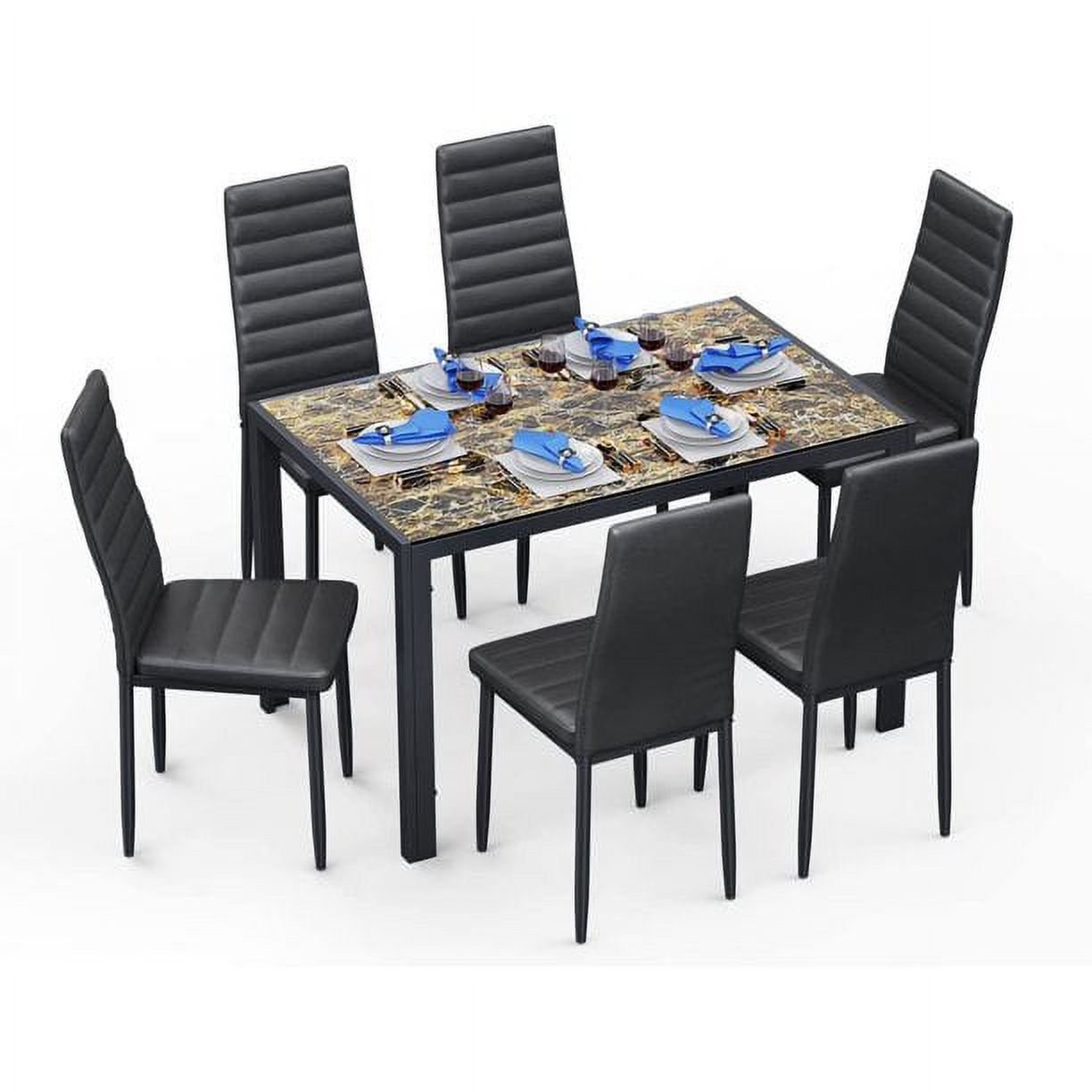 - Aiho Rectangular Kitchen Dining Table Set for 6 for Dining Room, Black & White & Marble