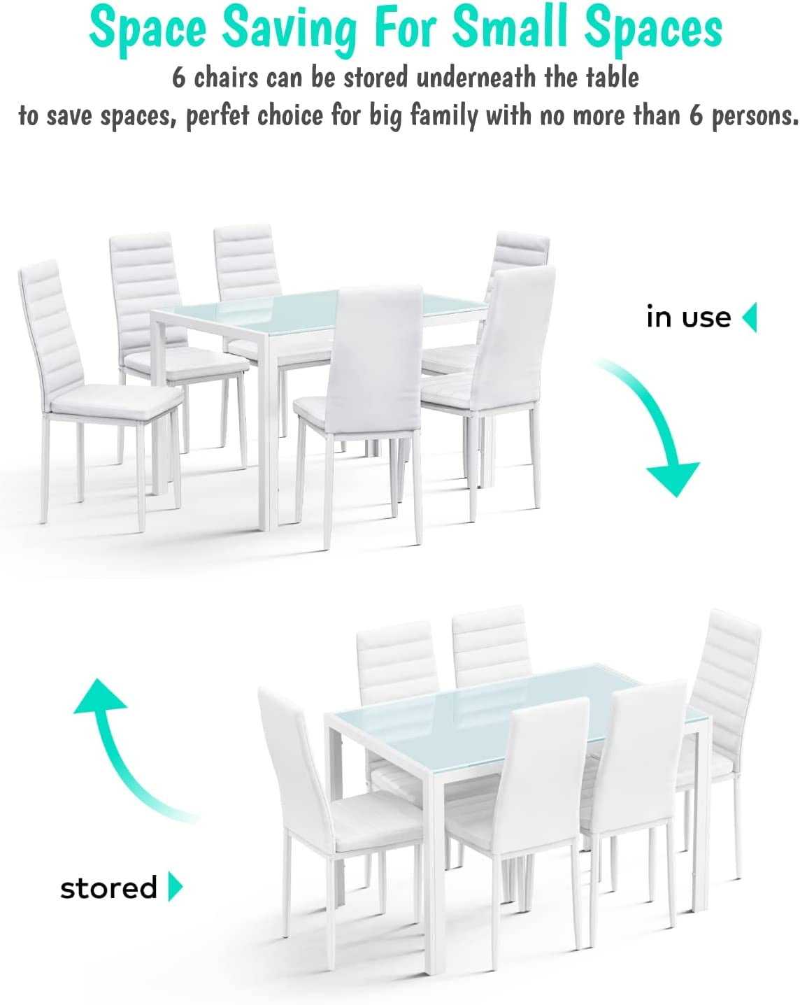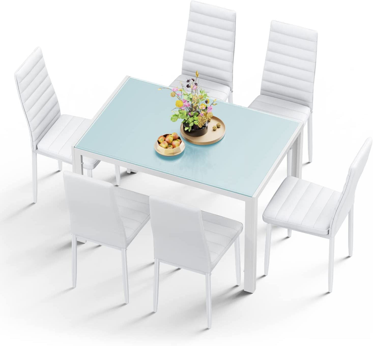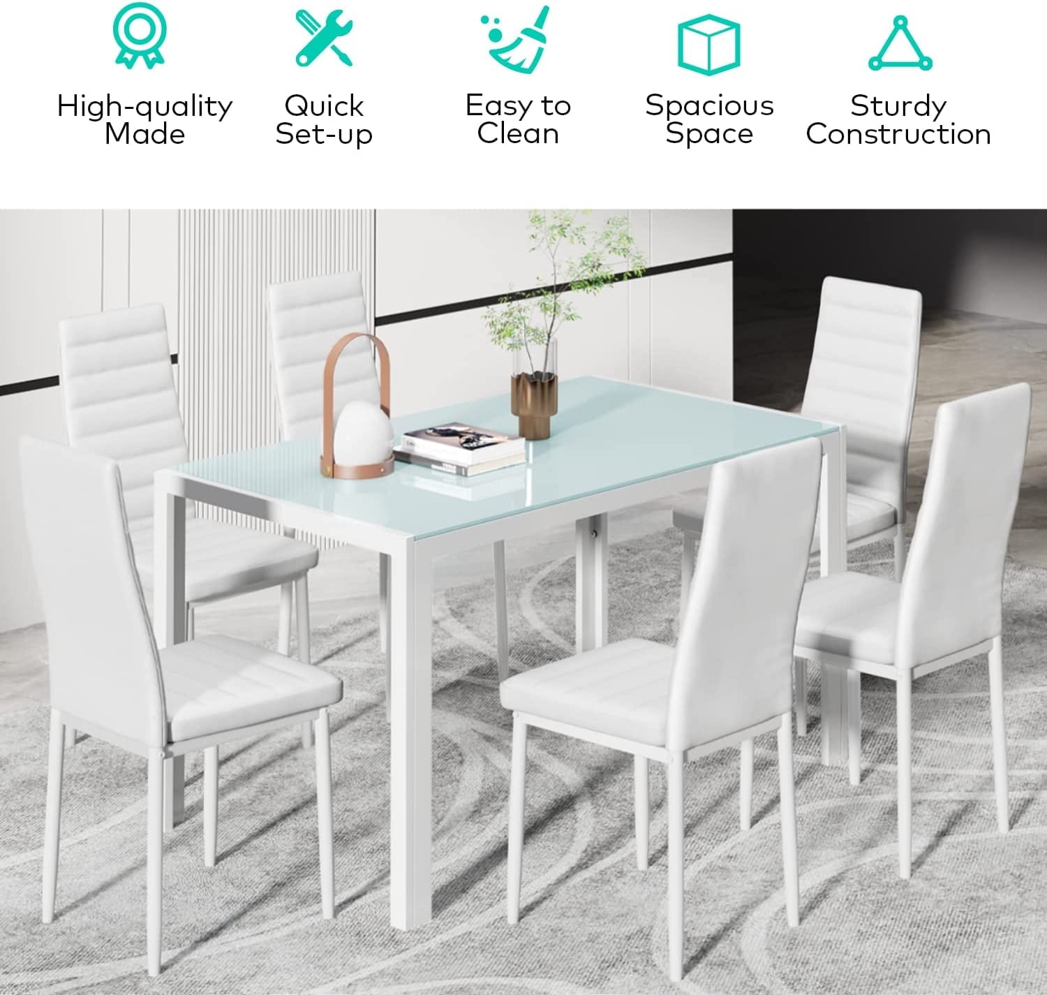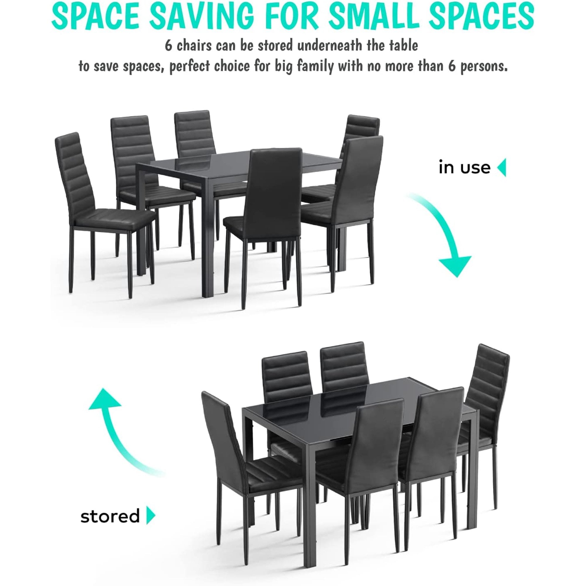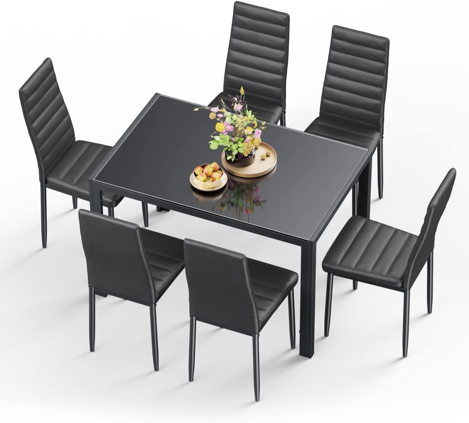 - Aiho Rectangular Kitchen Dining Table Set for 6 for Dining Room, Black & White & Marble