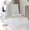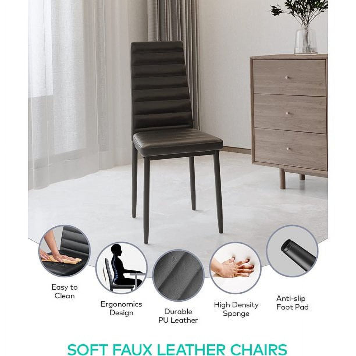 - Chairs (38.6”H x 15.7”W x 16.7”D | 18.3” seat height) feature steel frames wrapped in PU leather and high-density foam. Supports 330 lbs per seat. Space-saving design allows tucking under the table.