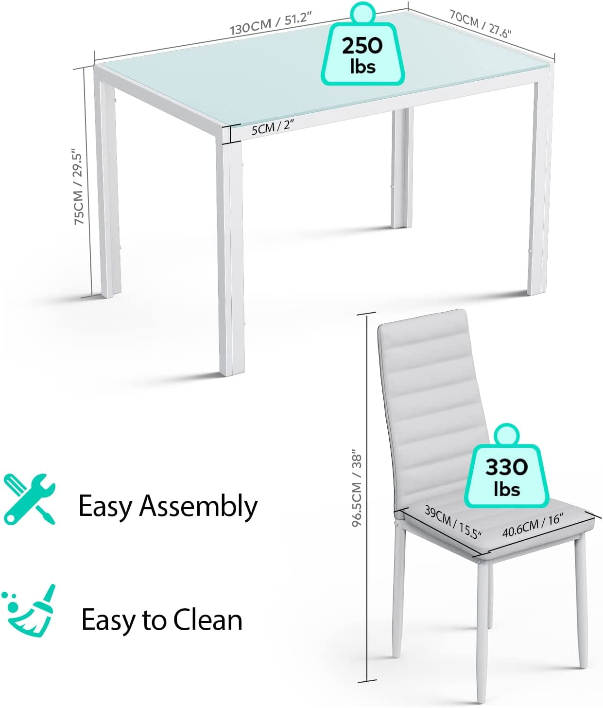 - Rectangular table (51.2”L x 27.6”W x 29.5”H) offers ample seating for family meals or social gatherings. Minimalist lines and neutral tones complement modern interiors.