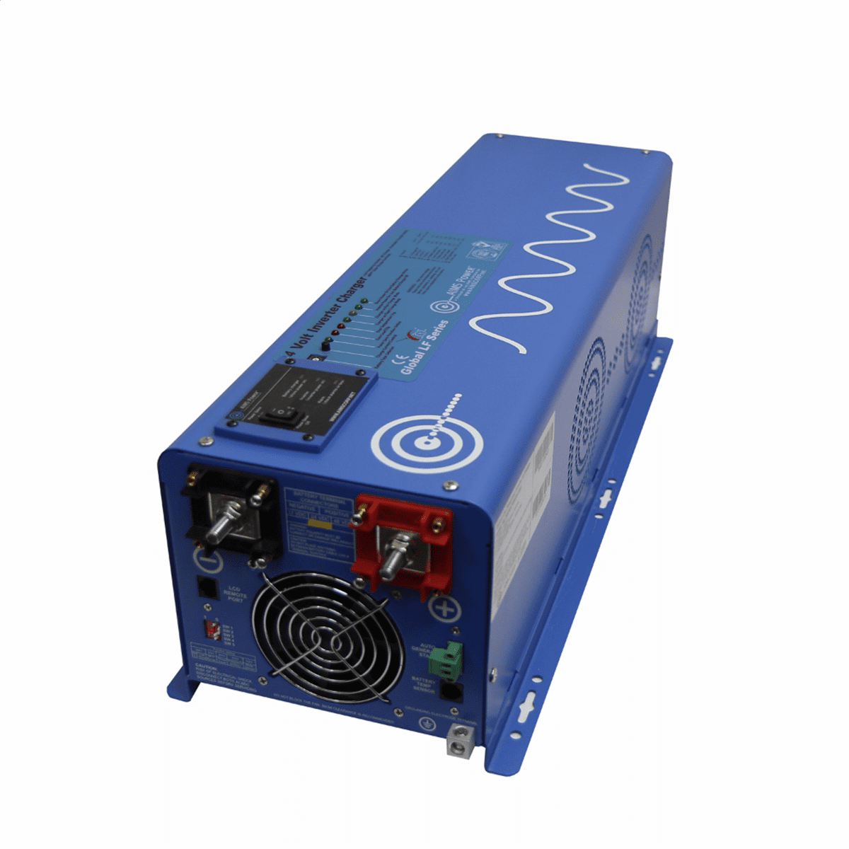 This is the AIMS 4000 Watt low frequency pure sine wave inverter charger. It is an inverter, charger and transfer in one unit! This inverter boasts a 12,000 watt surge capacity for 20 seconds and will deliver that sheer amount of power on demand. This is the 12 volt dc to 120 volt ac version with single bolt type dc terminals that will accept 4/0 (0000 AWG) cable.