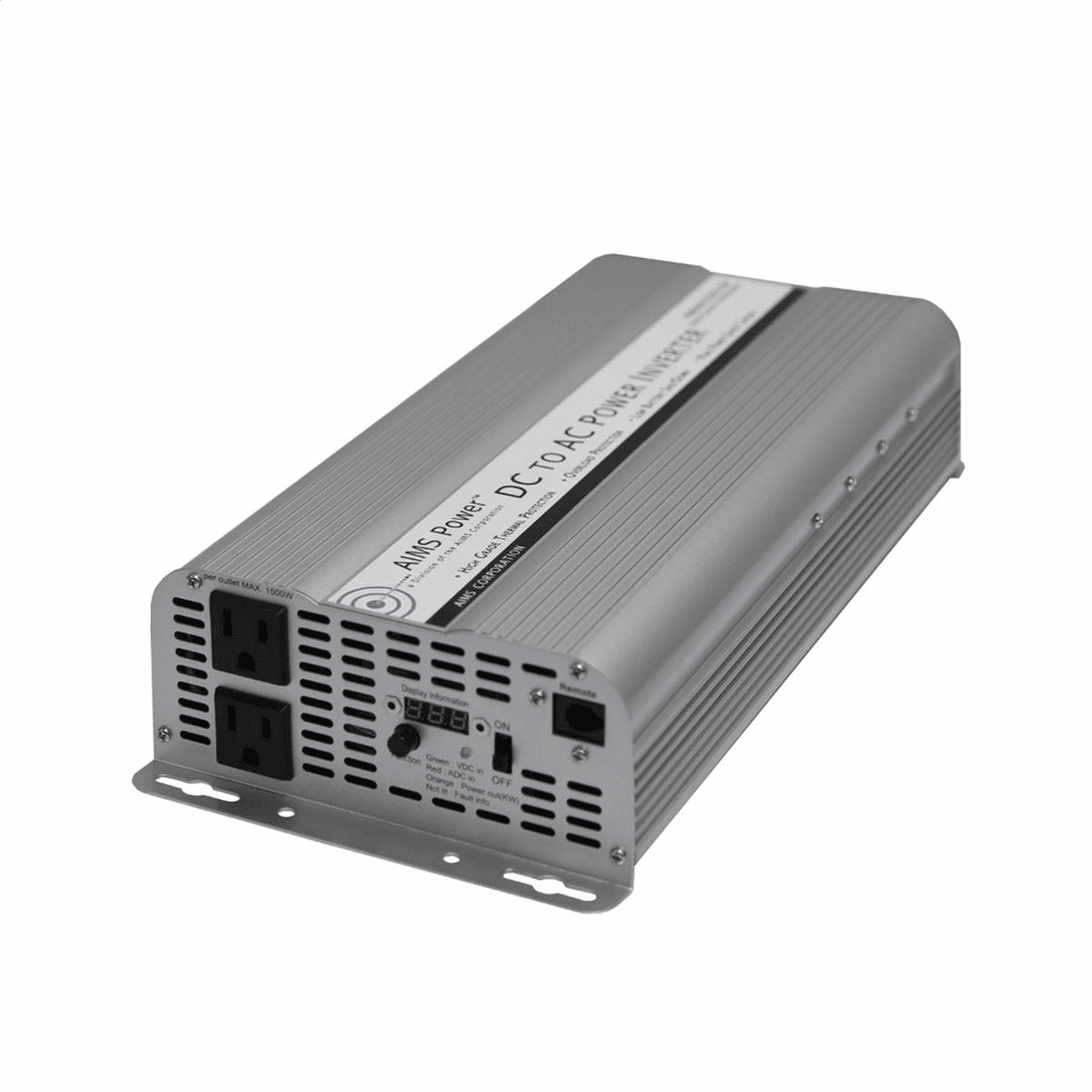 The AIMS Power 2500 watt modified sine wave inverter with a 24 volt DC input. This inverter is an excellent choice for our customers who currently have a 24 volt DC power source. AIMS offers all the great features found on a 12 volt version and included them with this inverter. Some of those great features include a digital bar graph style display gauges, thermally controlled fan, and isolated ground neutral.