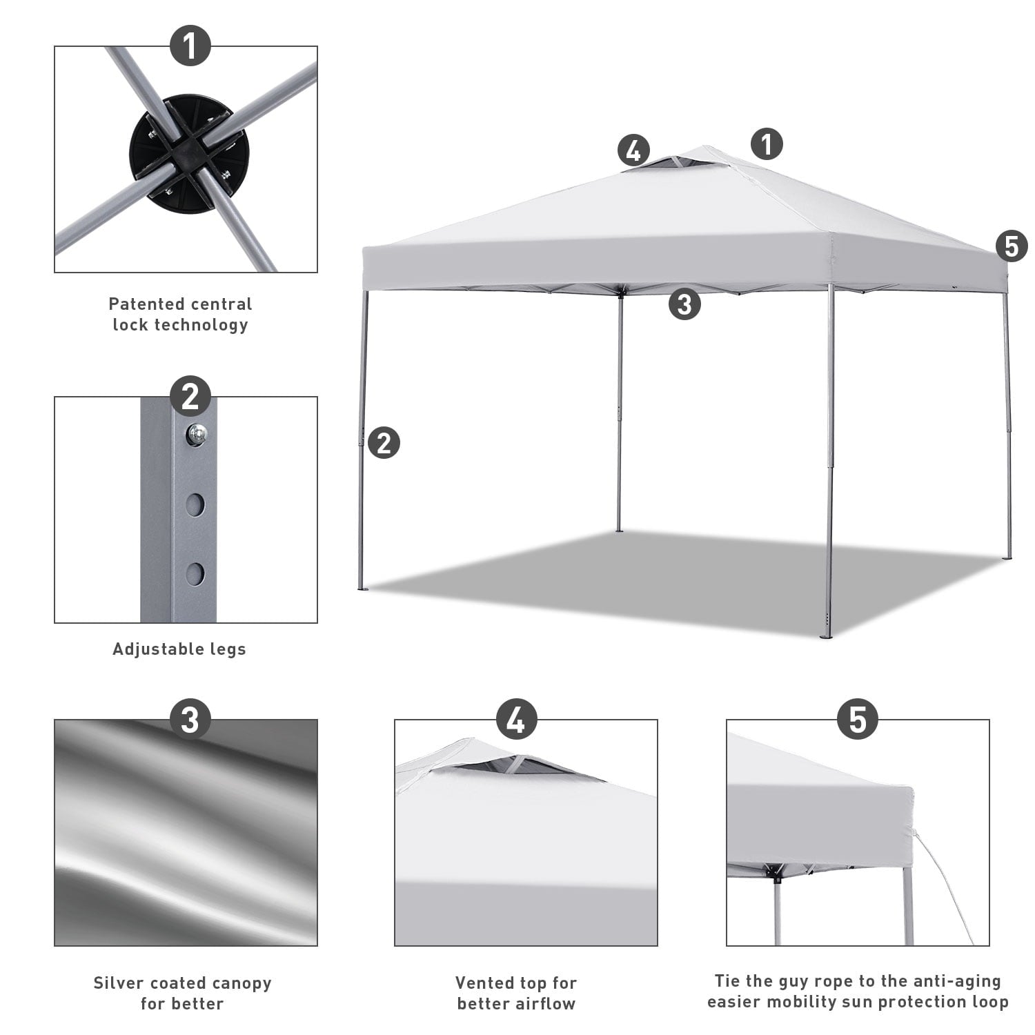 - Ainfox Pop up Canopy is made of durable premium grade steel tube with Nylon Plastic Connection Hardware Grey, Thickened and Sprayed the Frame, and Strengthened the four legs of the bracket.Rust-resistant Powder-coated Prevent Chipping,Peeling,Rust and Corrosion.Includes ropes and ground nails for extra stability and security in breezy and windy conditions.