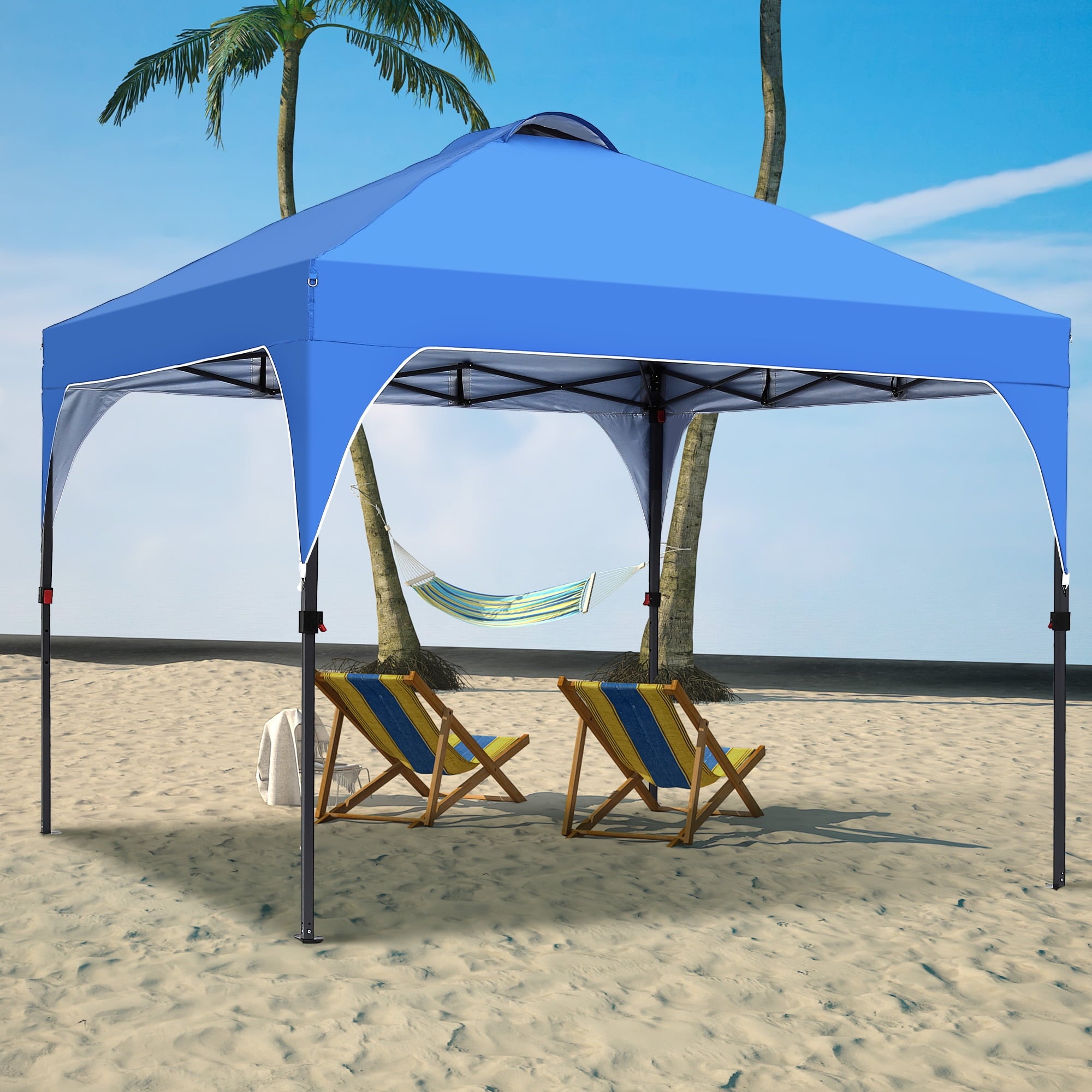 Turn any outdoor spot into your personal oasis with this 8×8 ft pop-up canopy tent. Whether you’re hosting a backyard barbecue, lounging at the beach, camping with friends, or setting up at a market, this canopy delivers instant shade and reliable protection. Built with a heavy-duty steel frame and durable weatherproof fabric, it’s designed to keep you cool on sunny days and dry during surprise showers. Best of all, it sets up in minutes—so you can spend less time fussing and more time making memories. When the fun’s over, pack it into the compact carry bag and take it wherever your next adventure leads.
