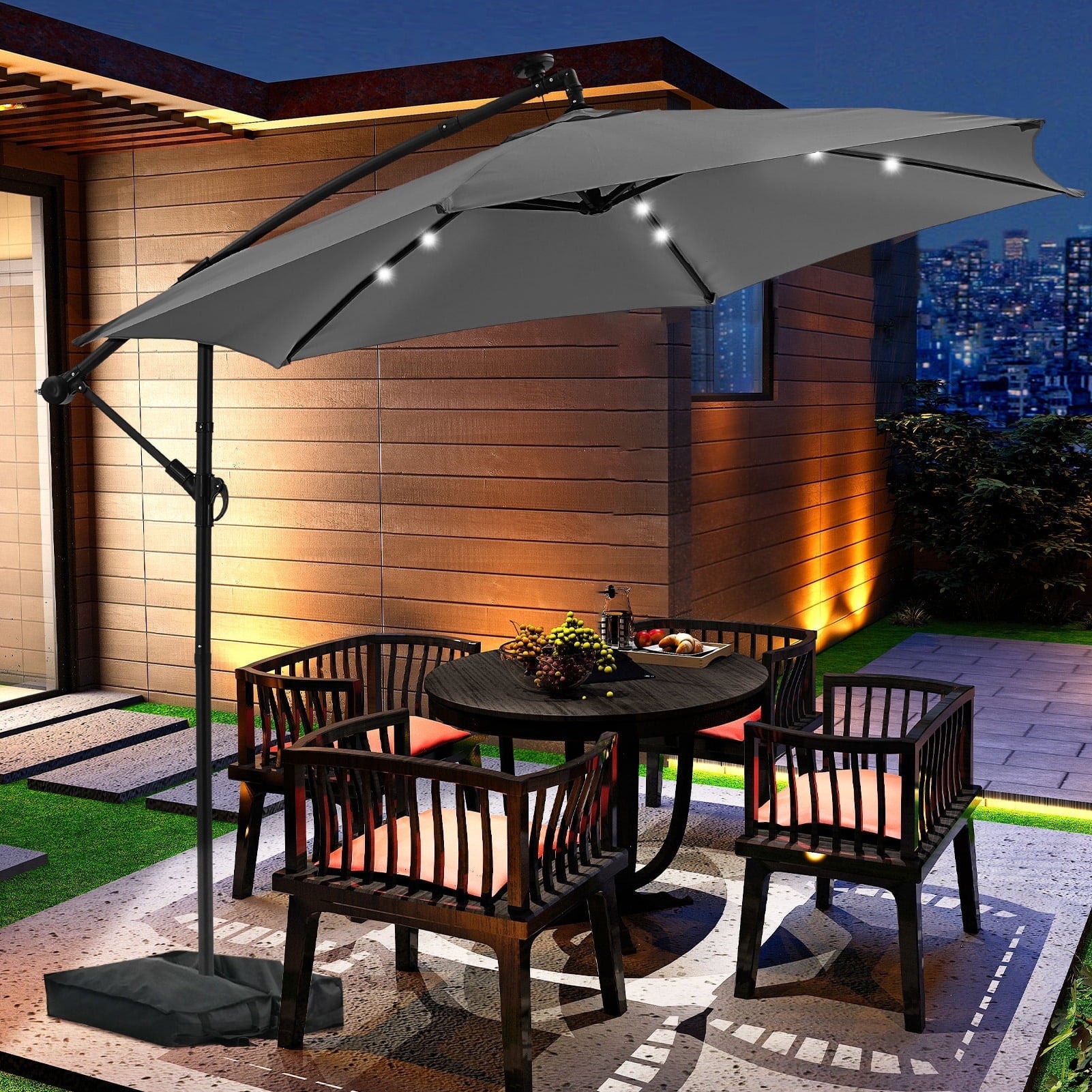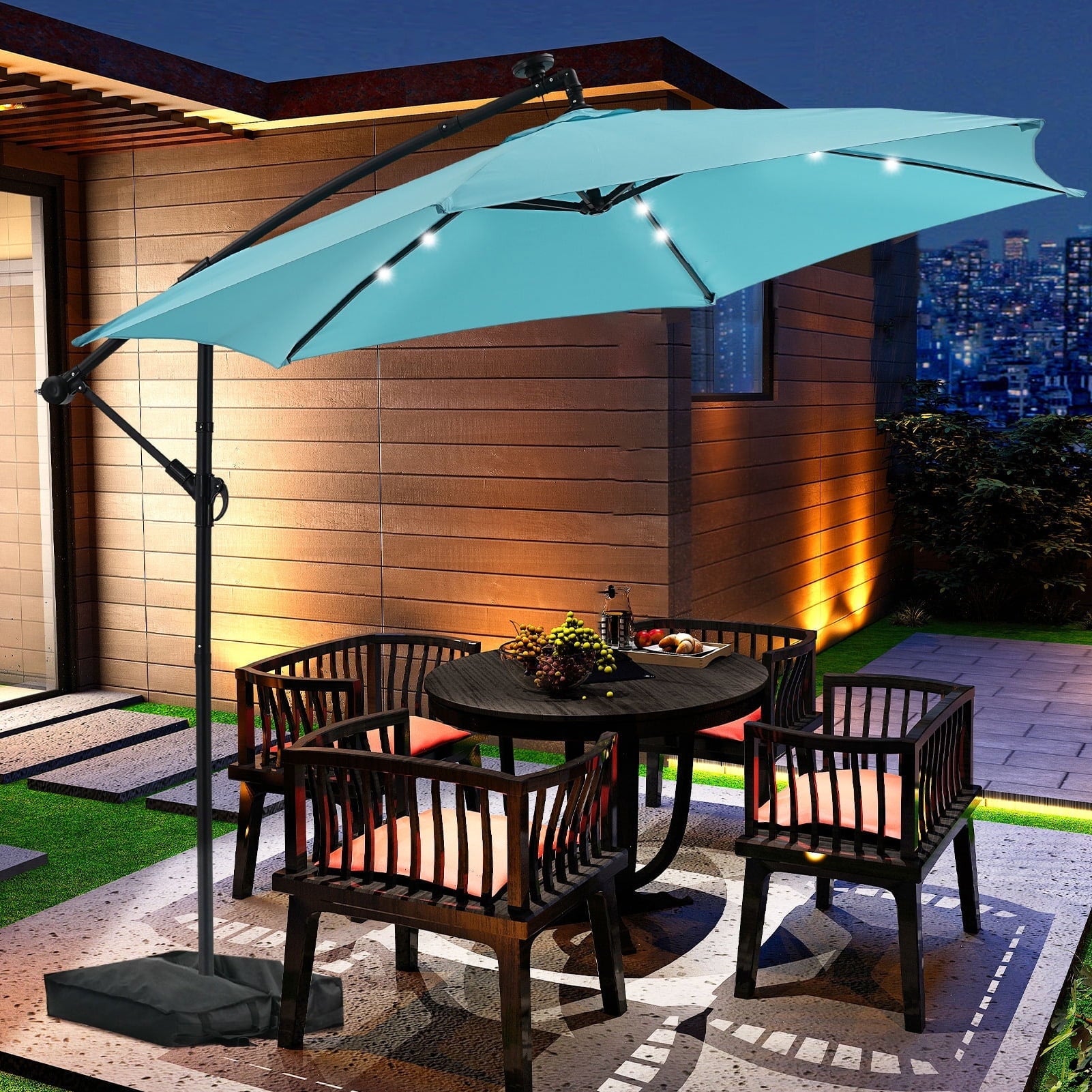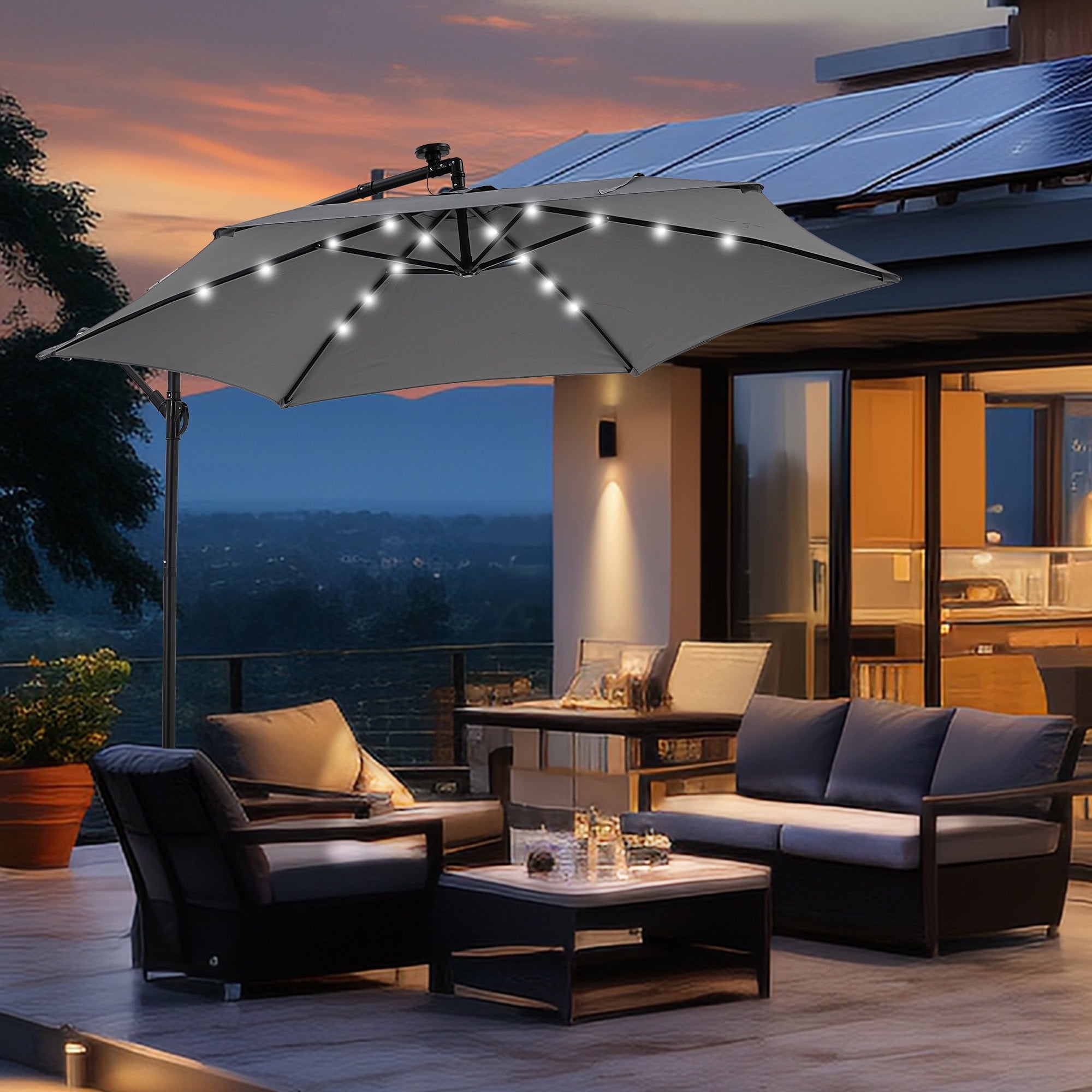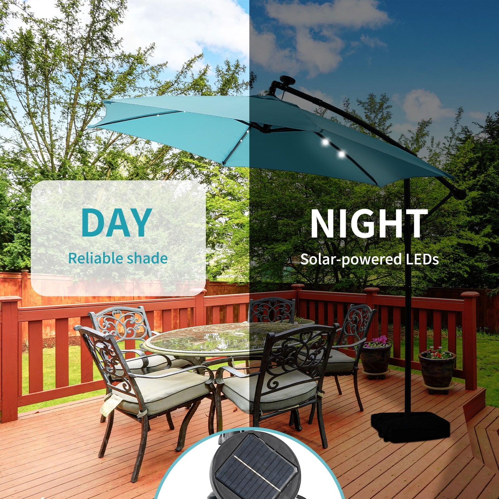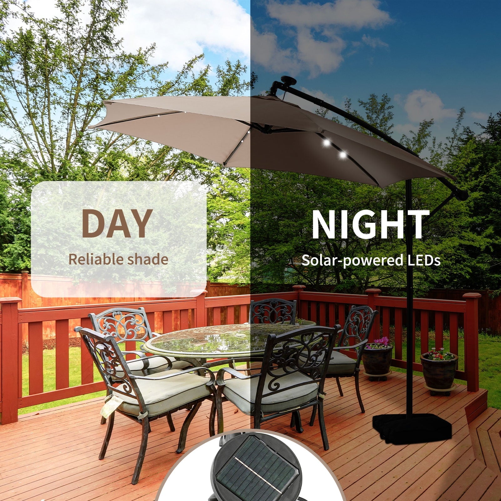 - ☂Solar Lighting System:Enjoy your evenings under the stars with our energy-efficient patio umbrella featuring 24 built-in solar-powered lights. After a full day of sun exposure, you can illuminate your outdoor area for up to 5 hours without the need for electricity or cumbersome power cords, allowing for relaxation after dark.