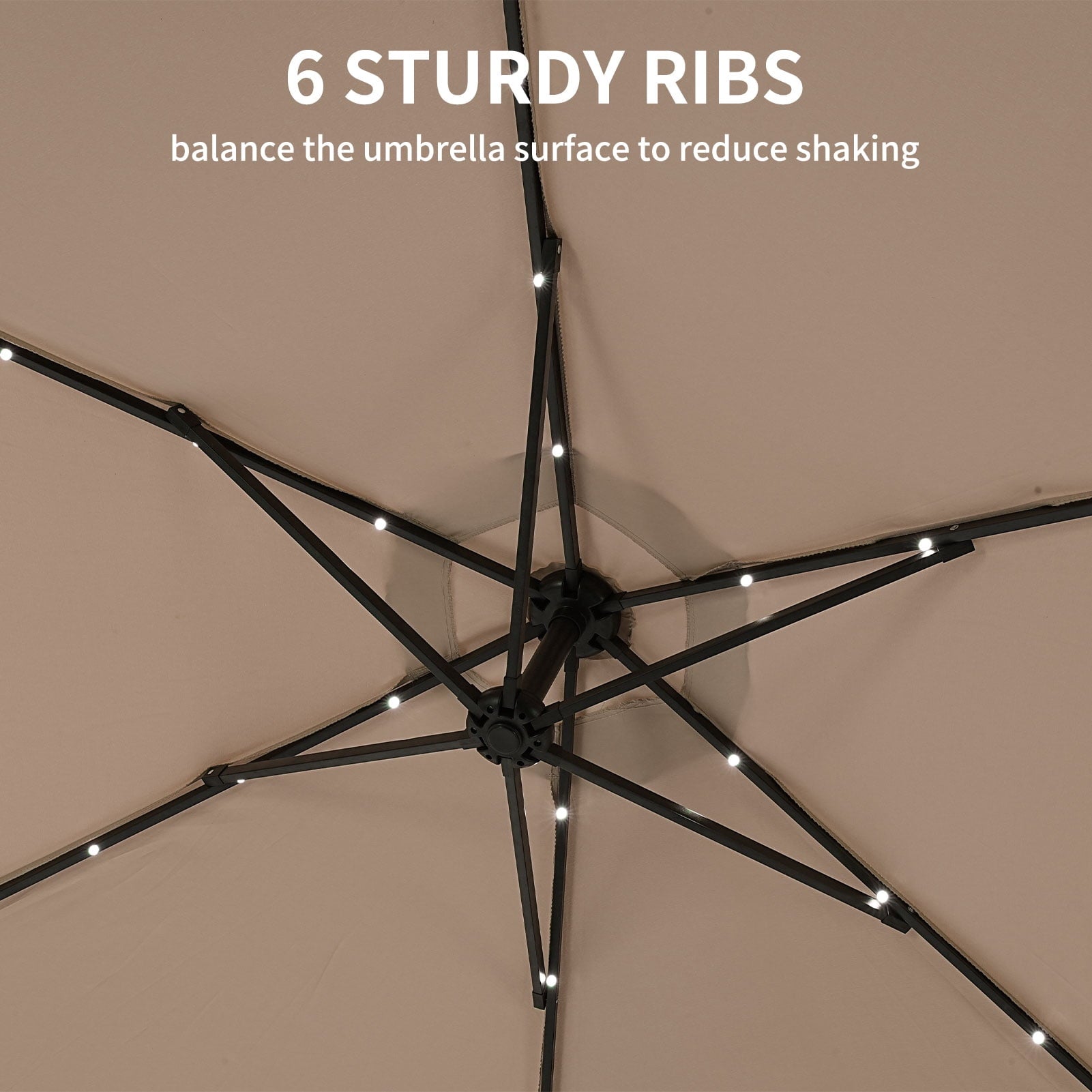 5. 6 Ribs with 24 Solar Powered LED Lights,Make More Ligher in Nights.