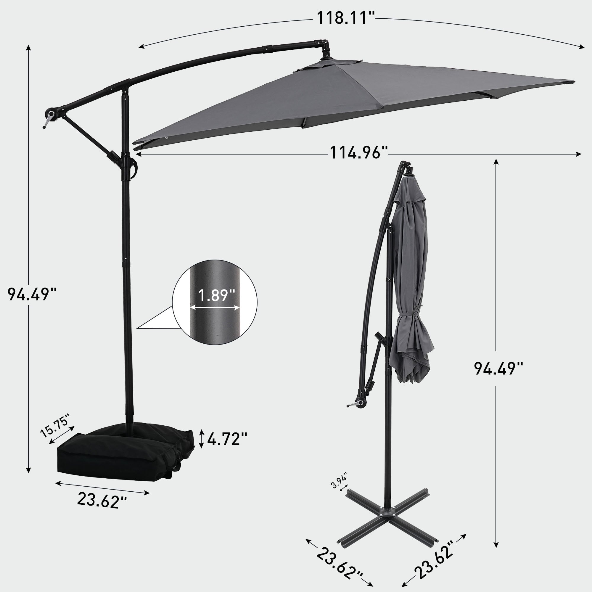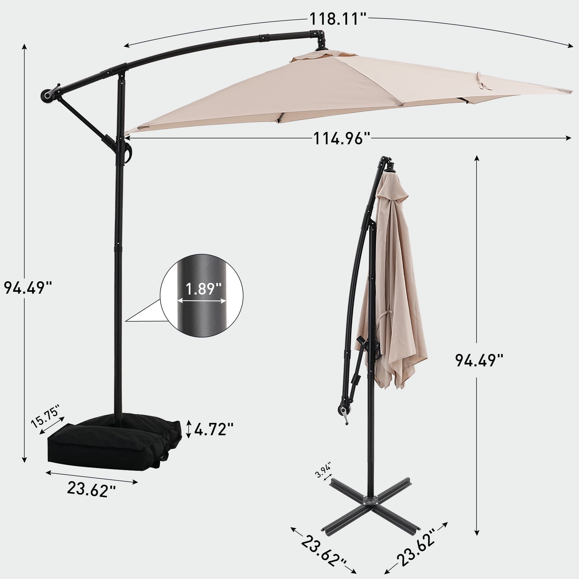 -Umbrella height: 7.87ft