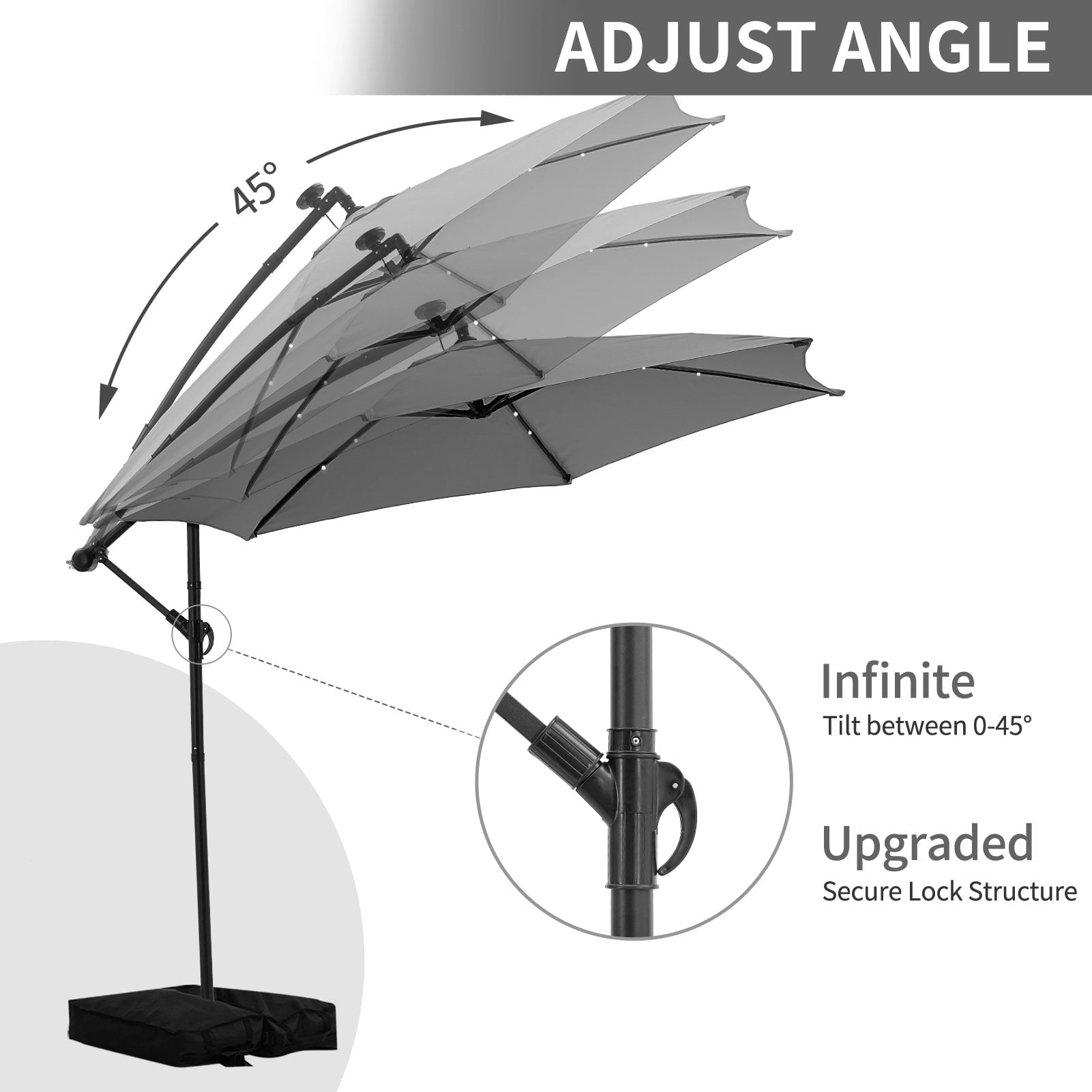 - ☂Ainfox offset umbrella canopy is constructed with high quality and durable polyester to ensure a dependable waterproof and UV protection.This patio umbrella equipped with air vent which is designed for air flow and prevent from inversion, keeping you cool and comfortable on hot days.