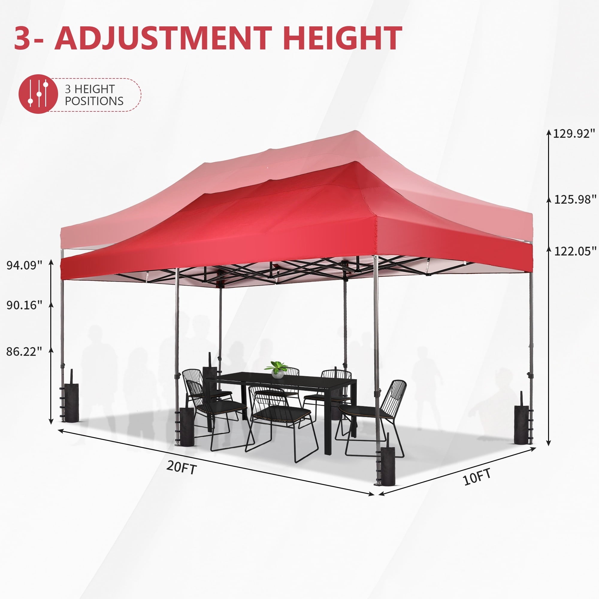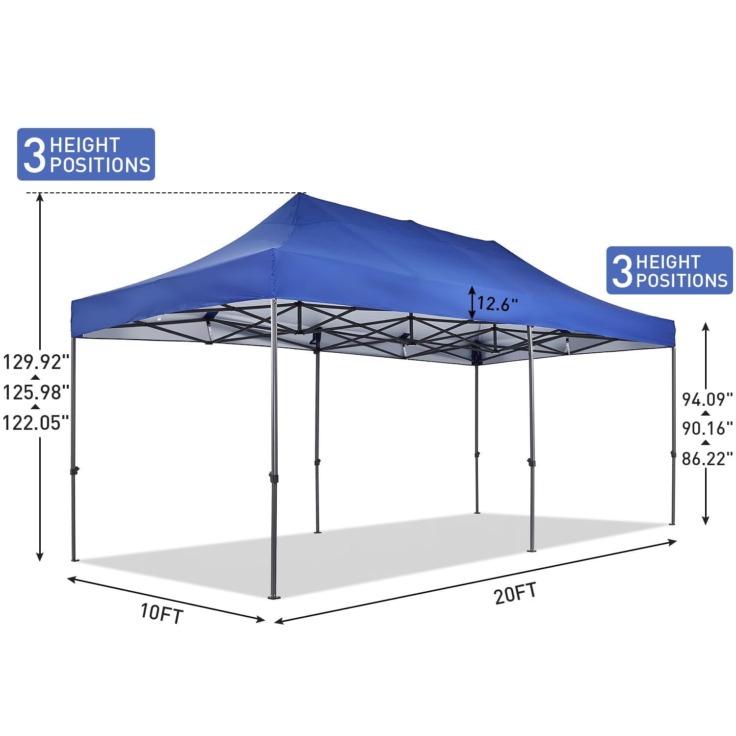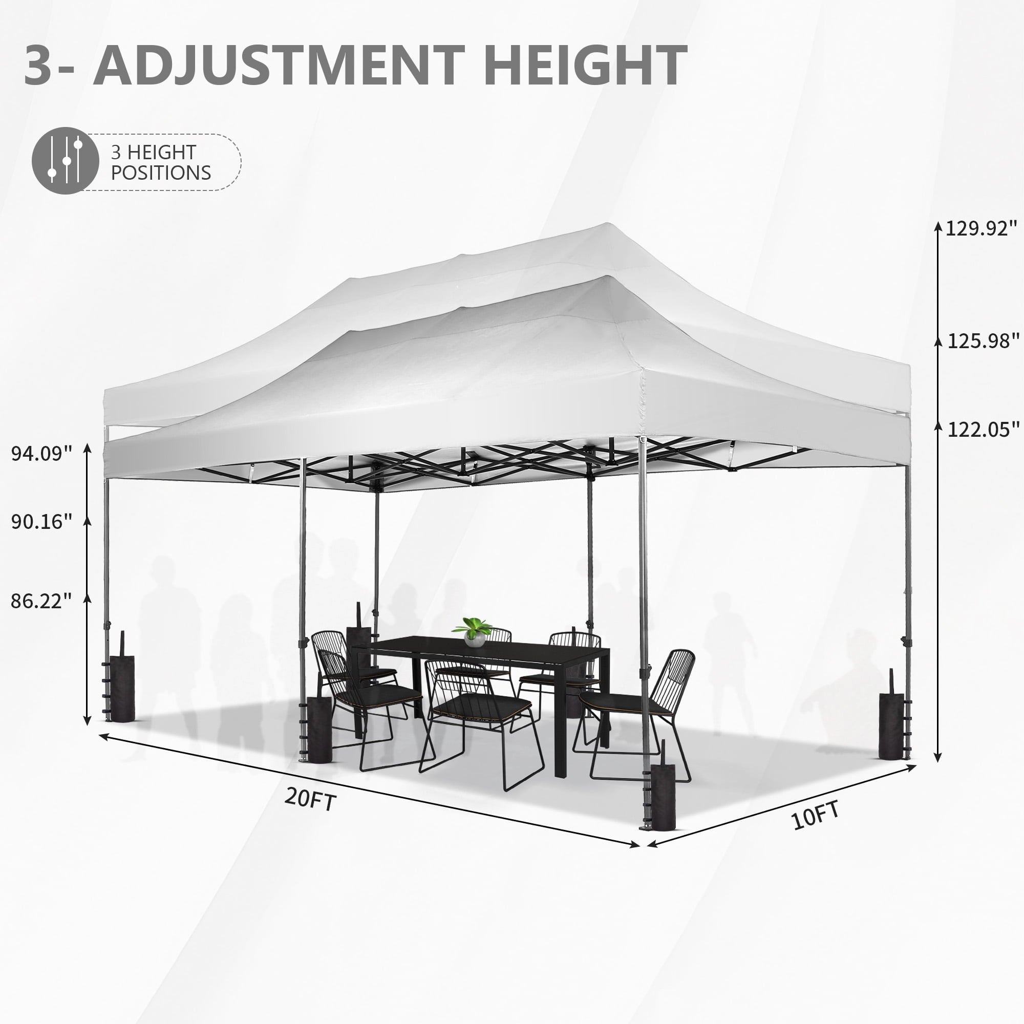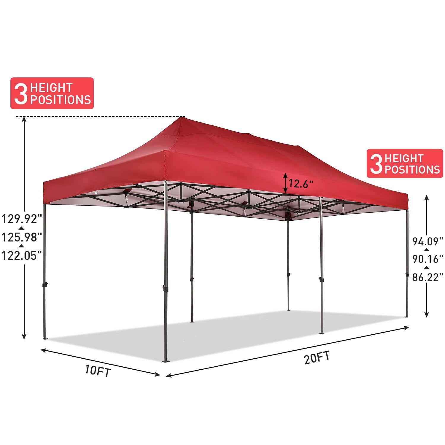 Top Height: 122.05‘’/125.98‘’/129.92‘’,Three Height Settings