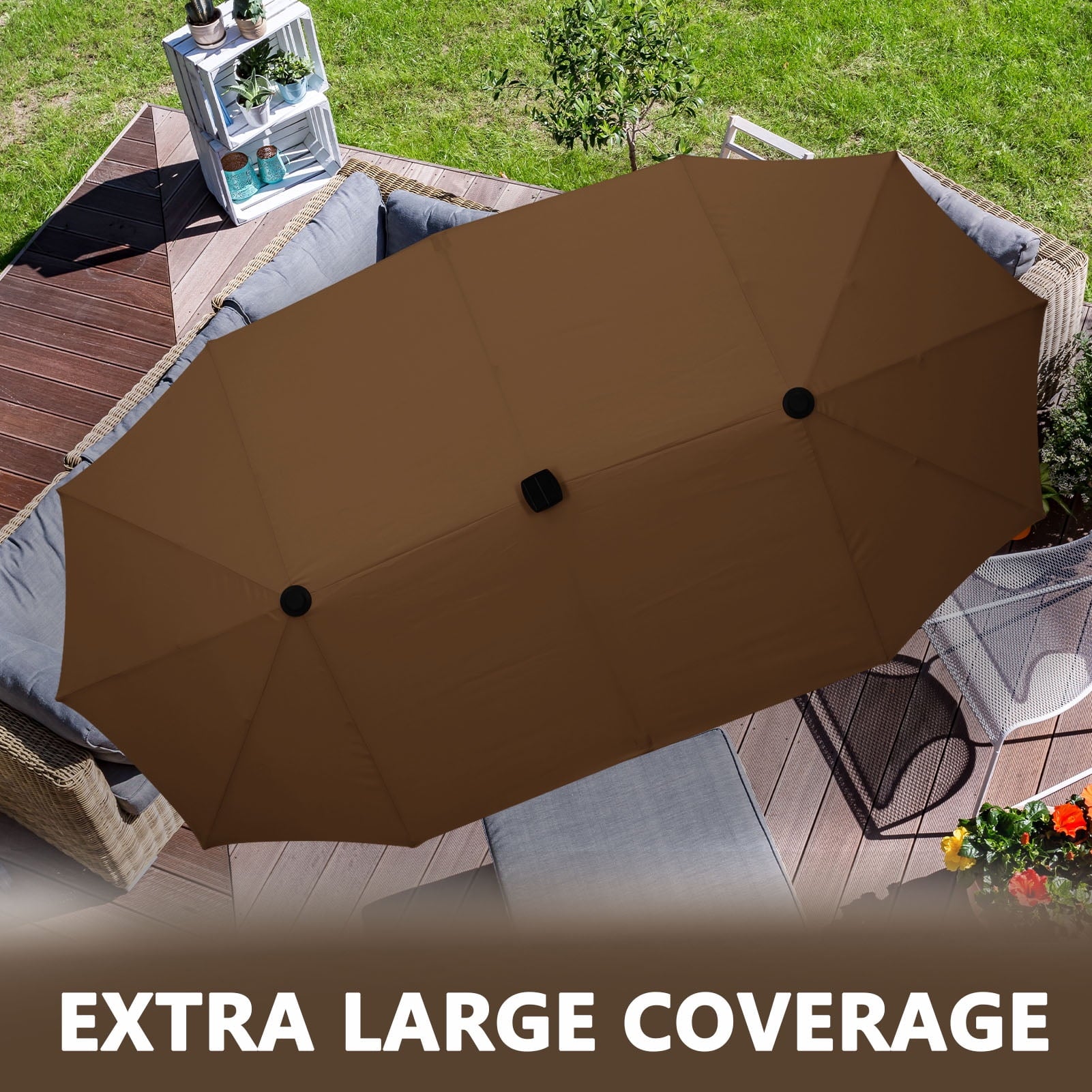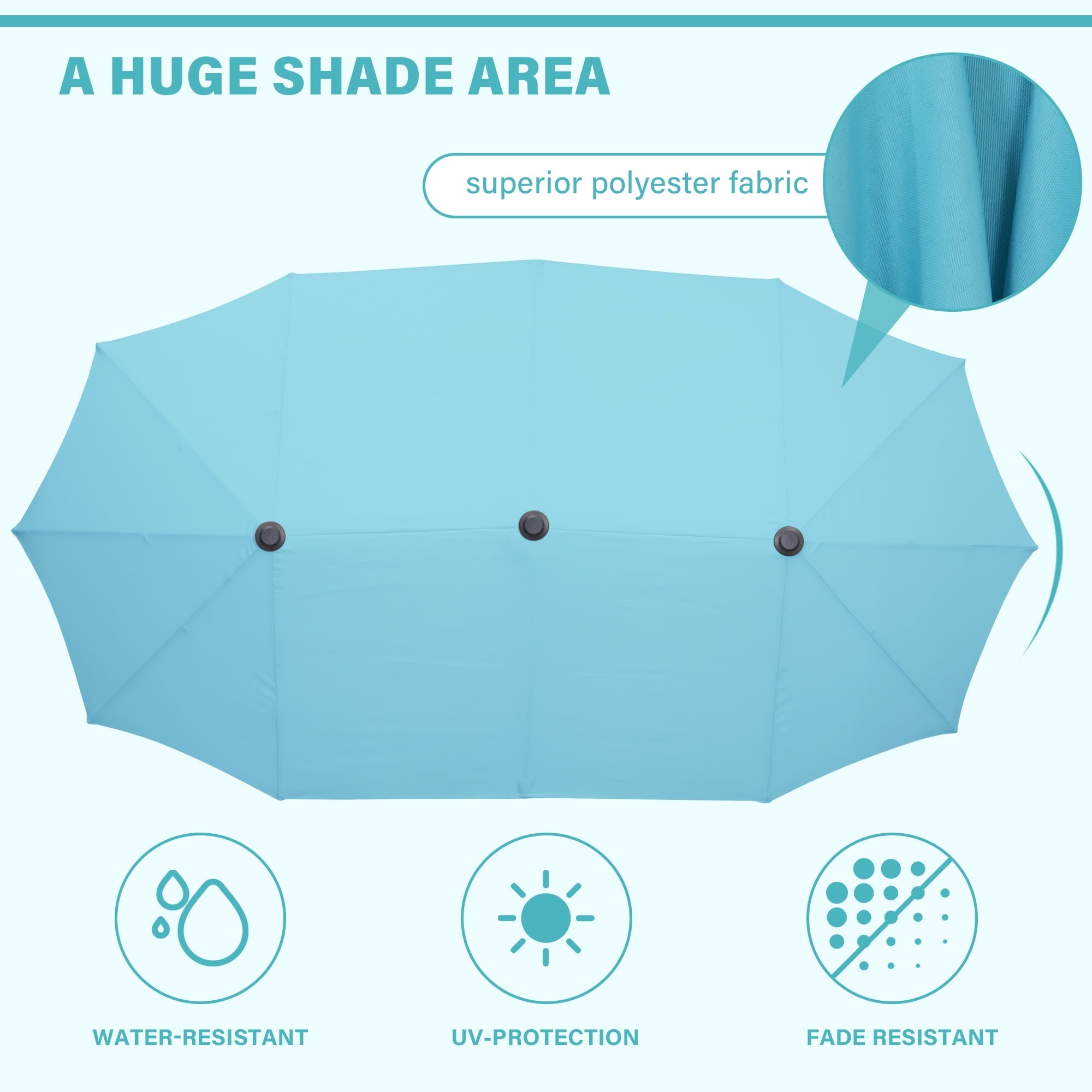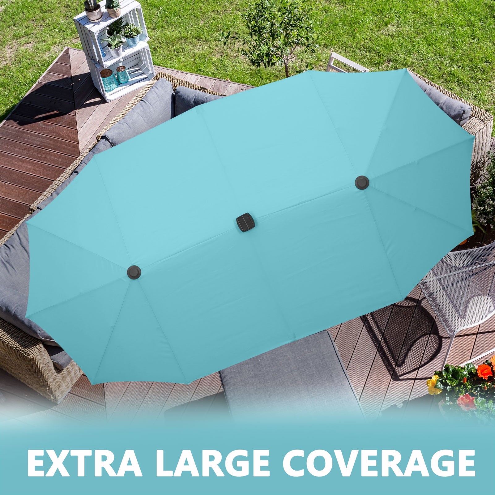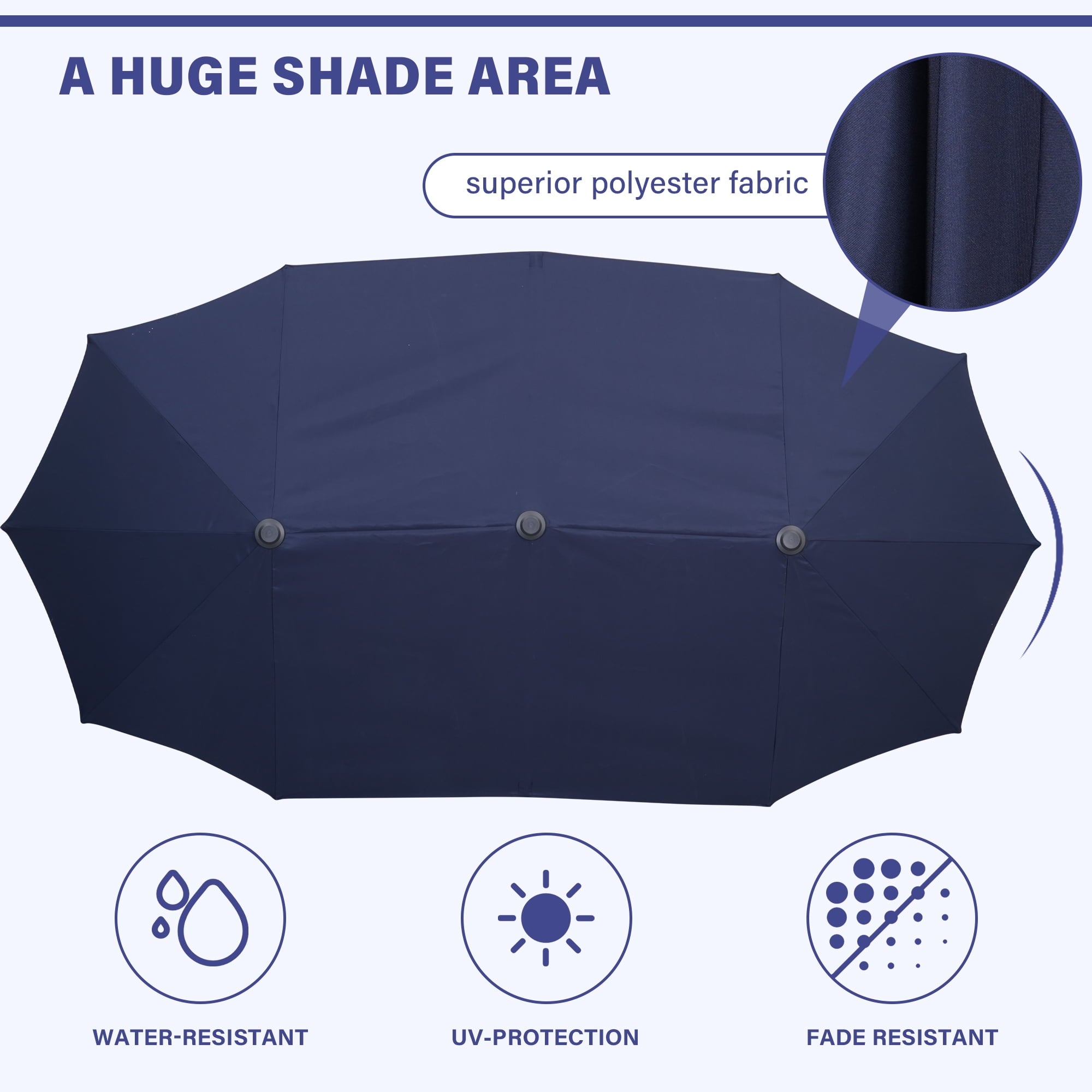 • 【Large double-sided shade space】Ainfox 13 ft rectangle patio umbrella provides larger shading area up to 85 square feet shade area when fully open. Perfect choice for both residential and commercial locations, such as garden, backyard, balcony, porch, deck, poolside or market place and any other outside area.