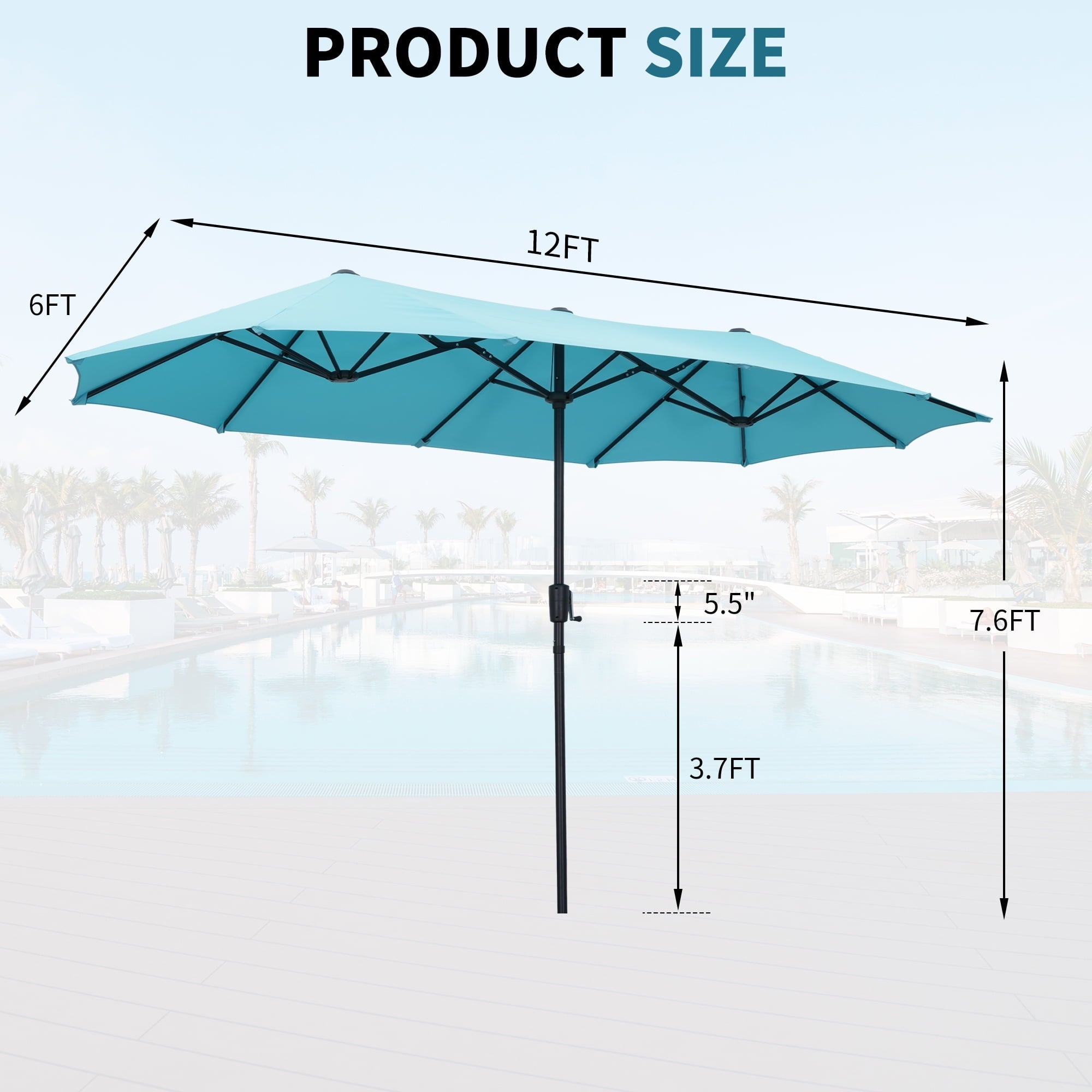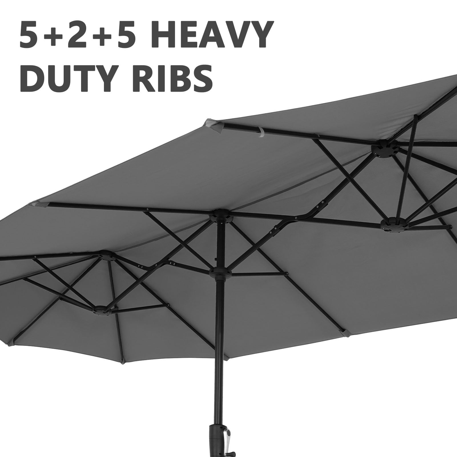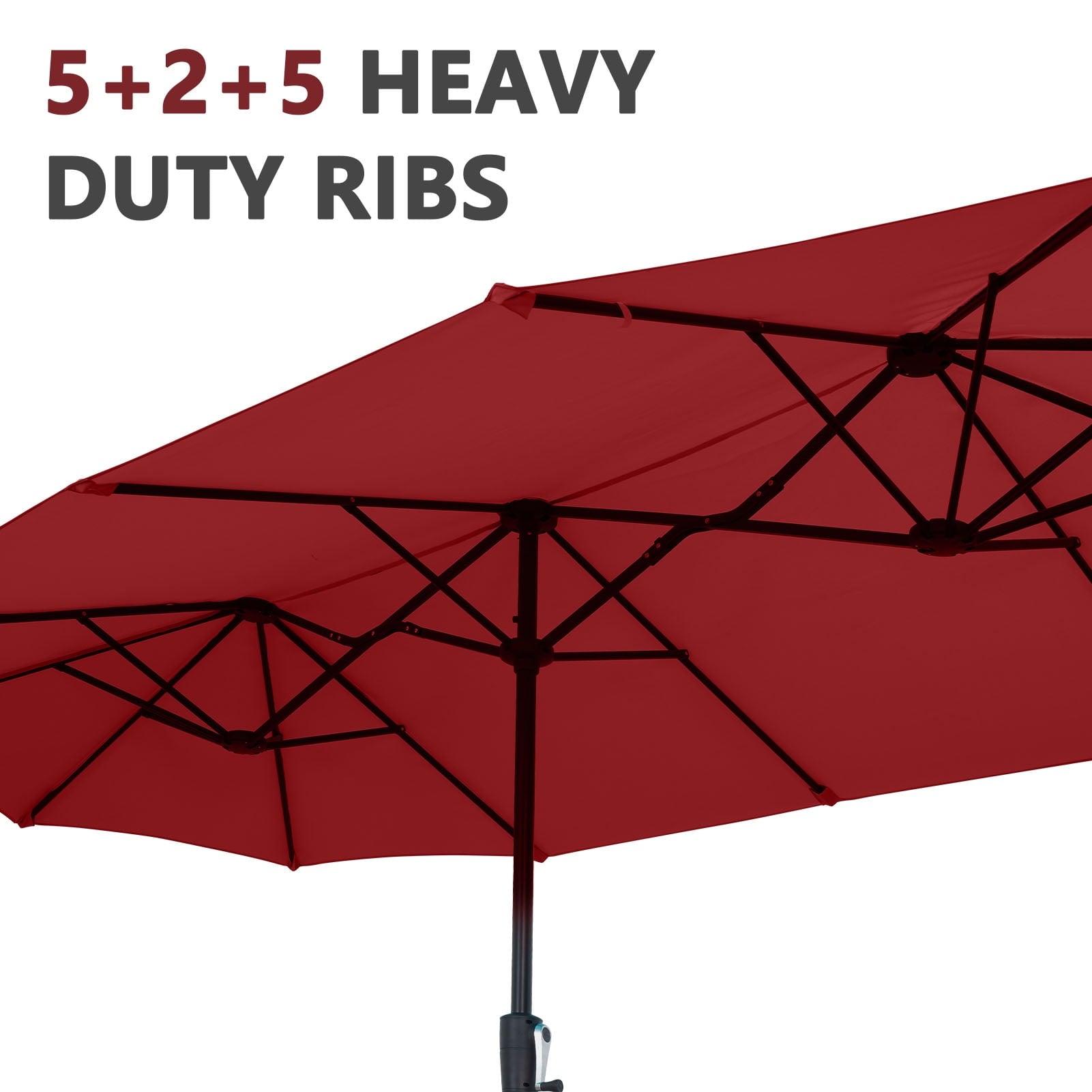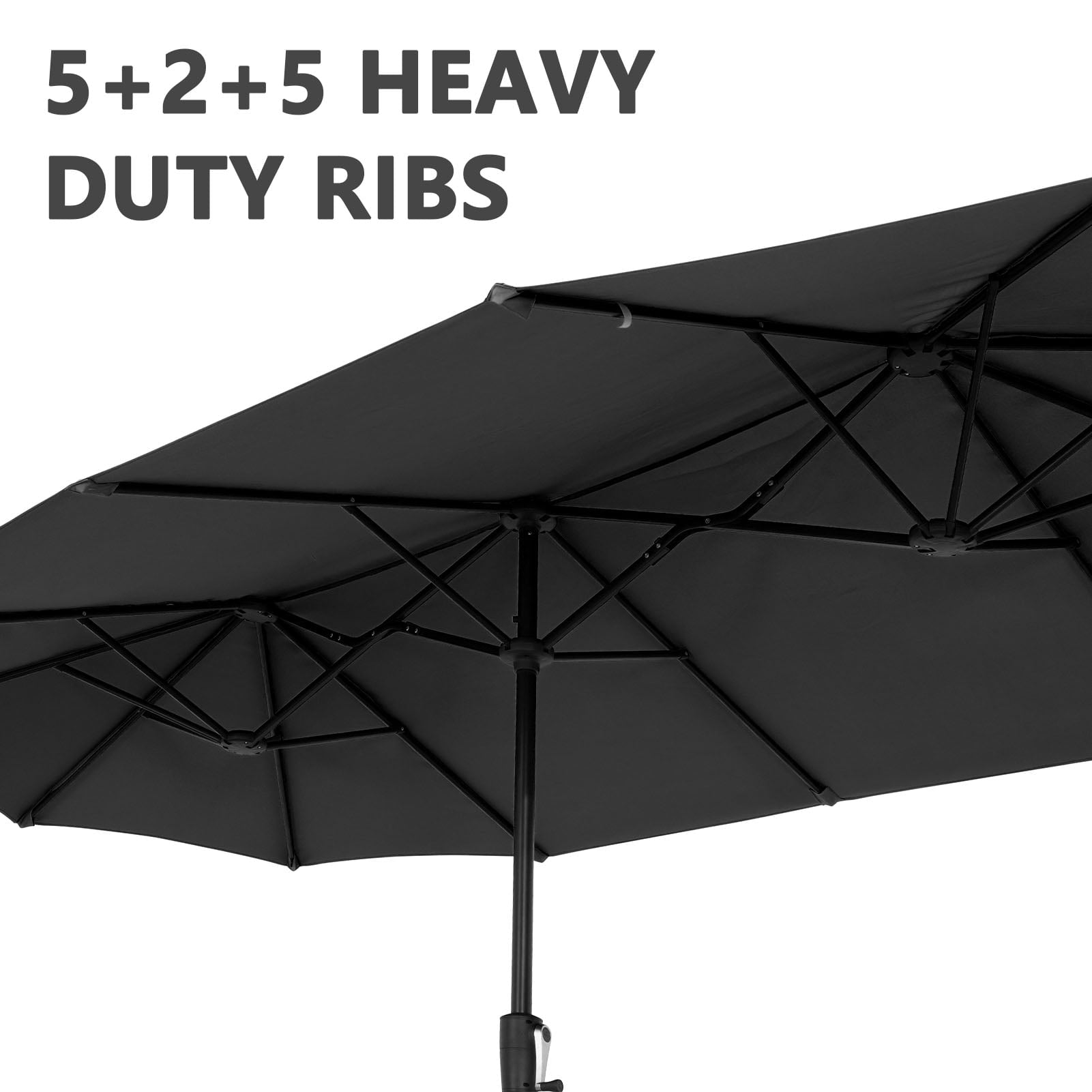 • 【Stable Structure Design】This outdoor umbrella is made of powder coated steel pole and 12 sturdy heavy duty square ribs that provide optimal support for the large double-sided canopy.Even better, safe latch design for better-fixed canopy.