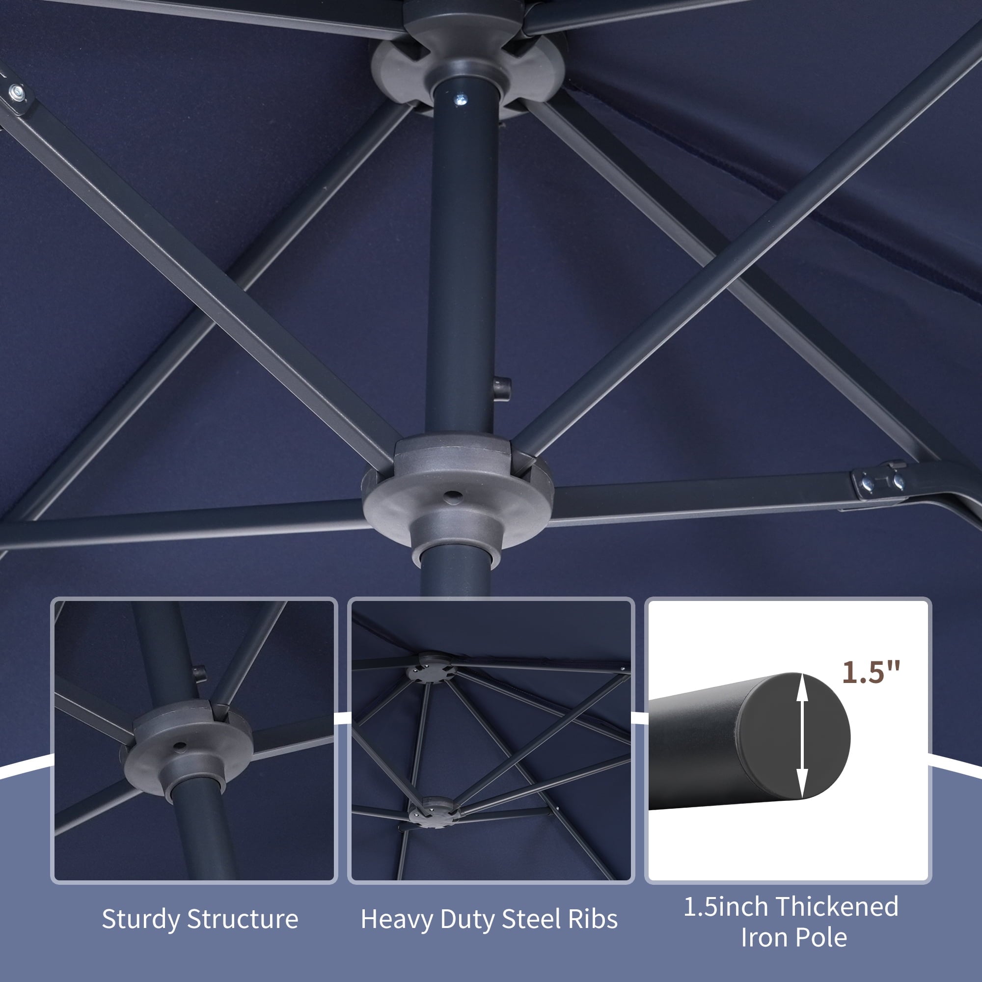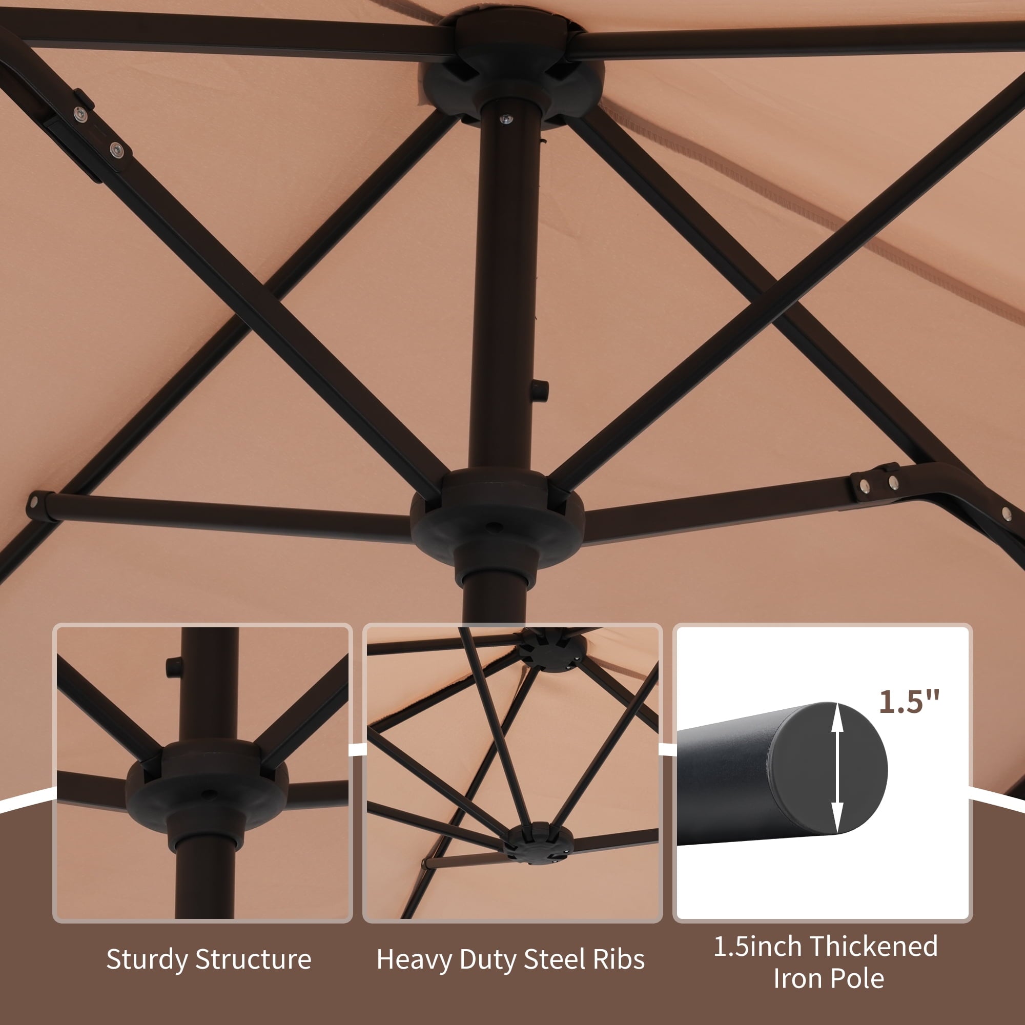 5.Powder Coated Steel Pole and 12 Durable Steel Ribs, Preventing Chipping,Peeling,Rust and Corrosion.