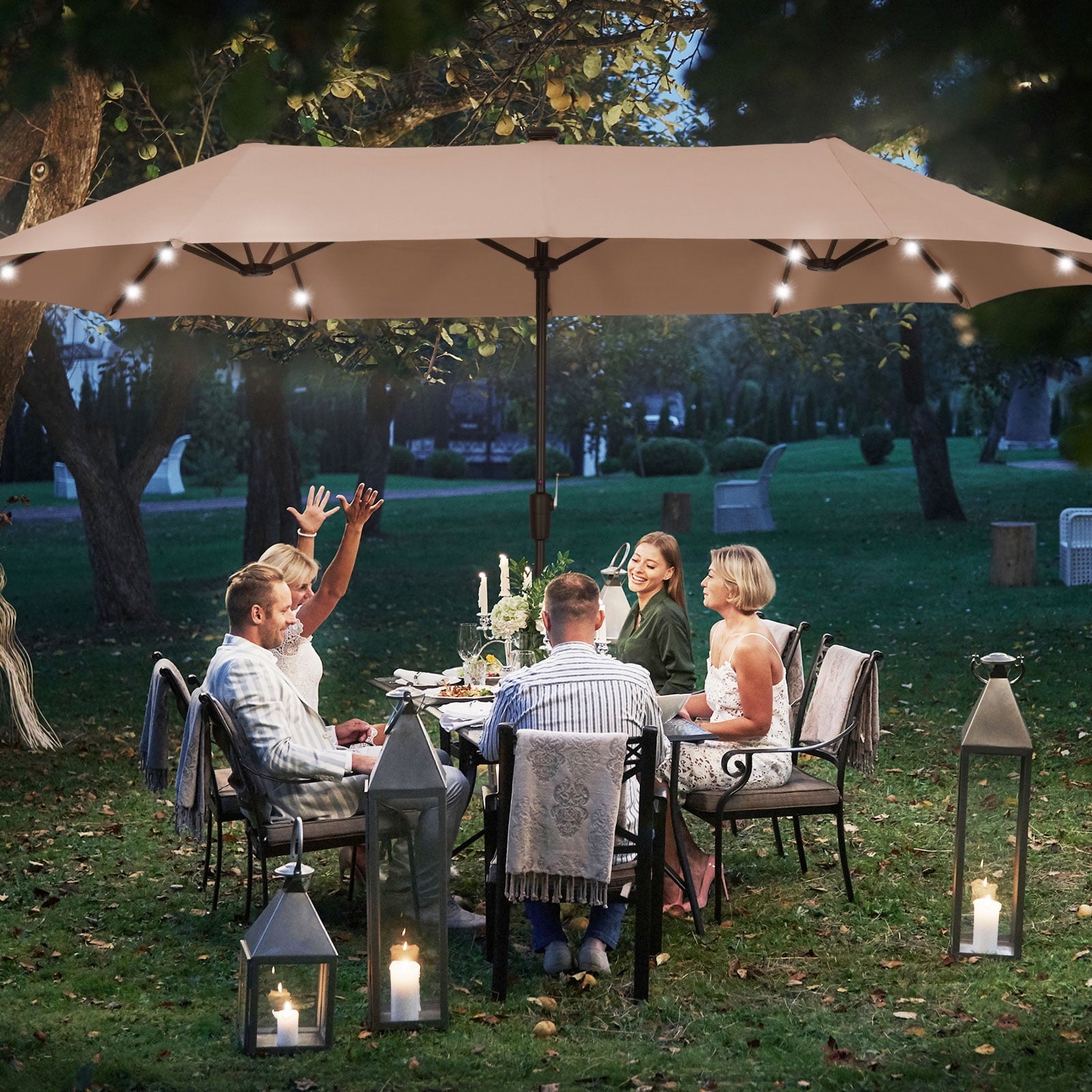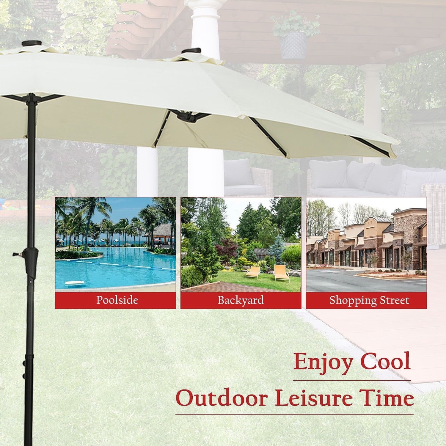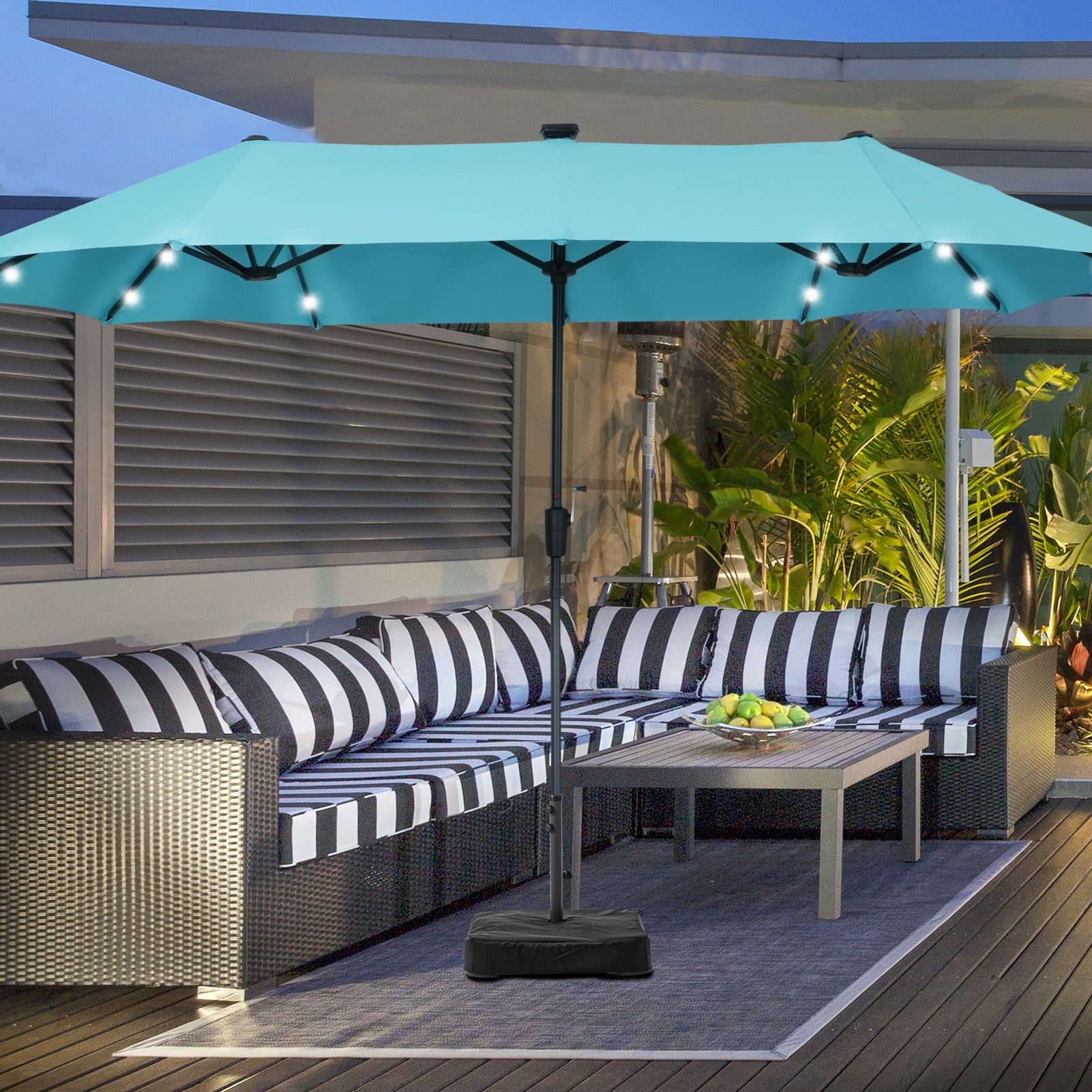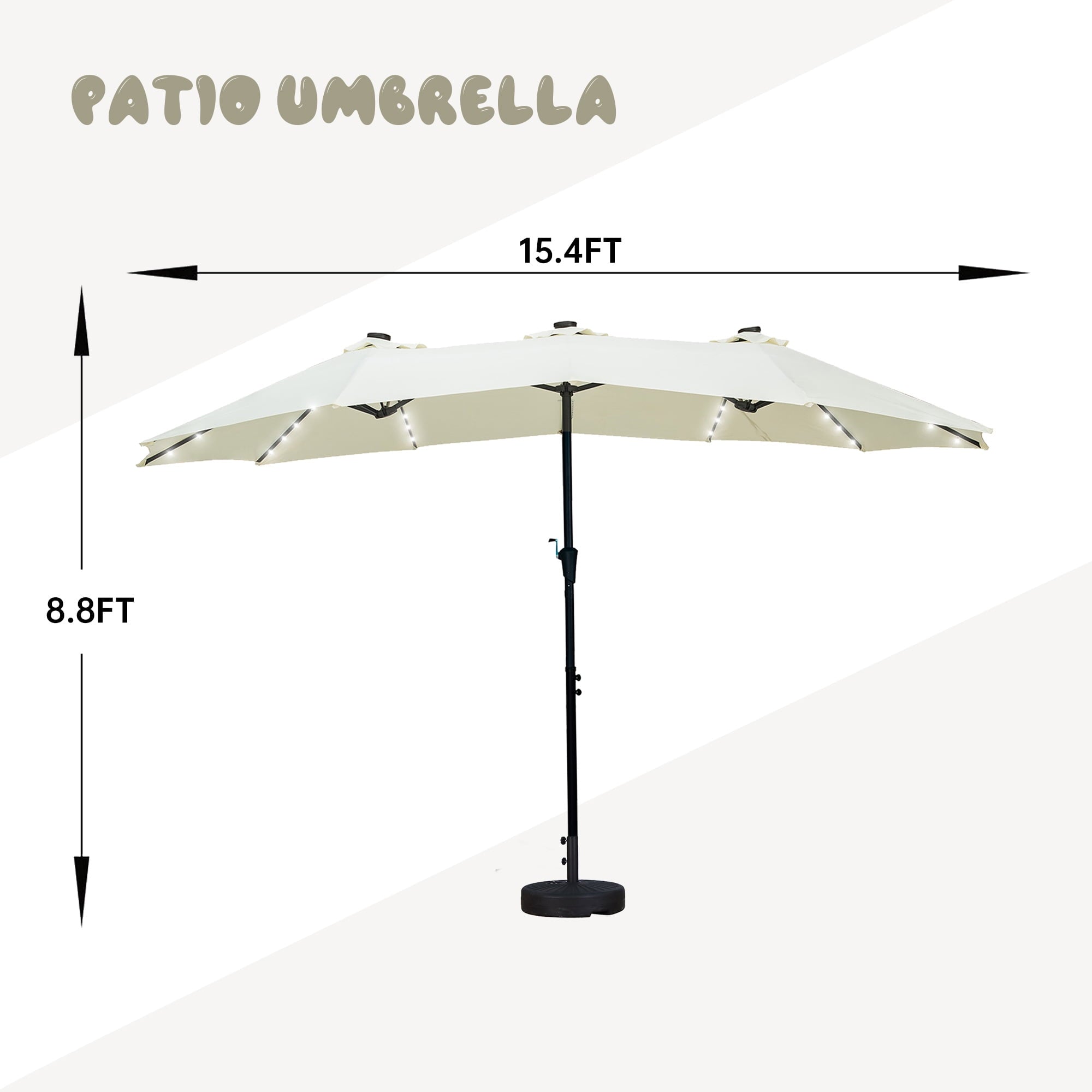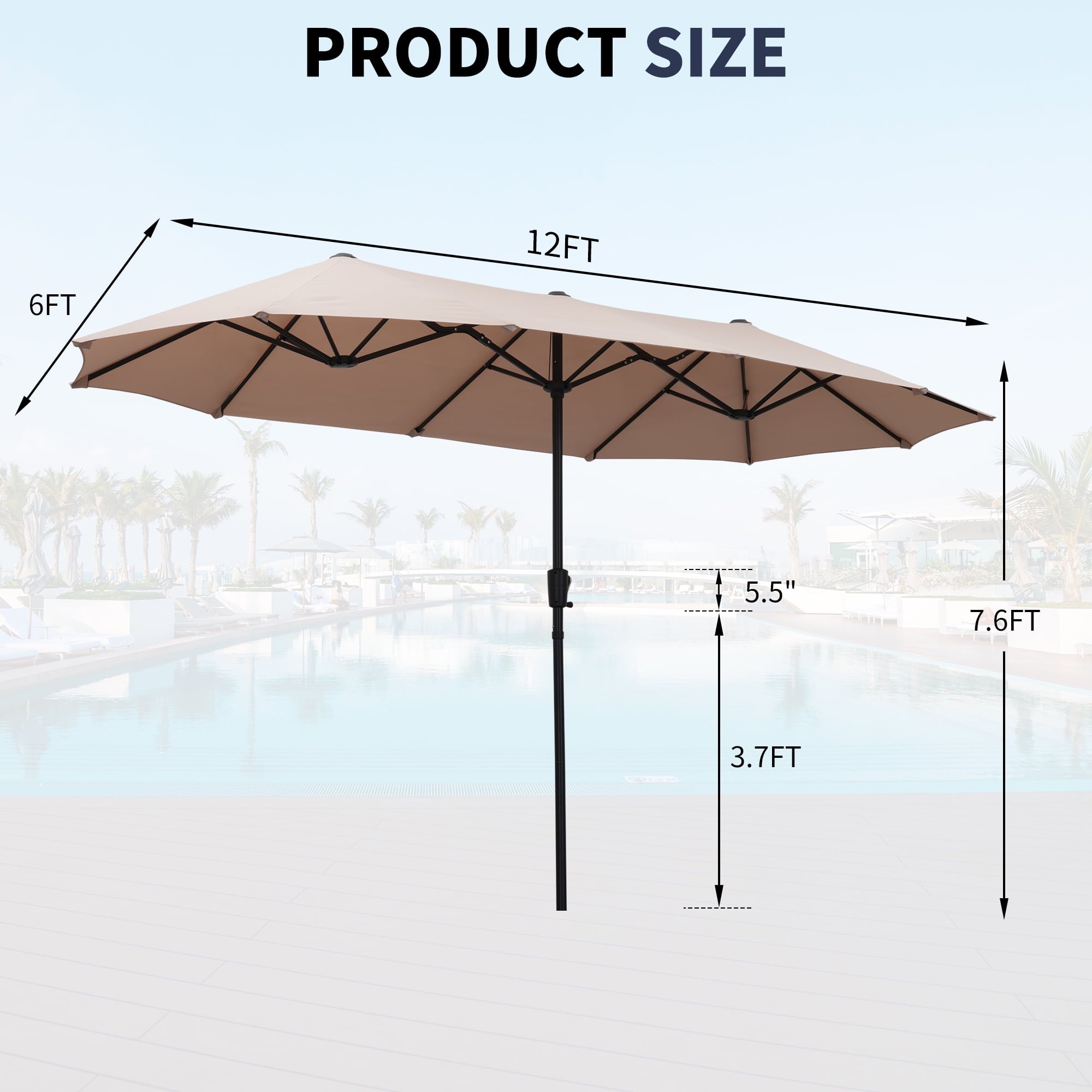 3. 13 ft(L) x 6ft (W) x 7.6Ft (H) ft Provides Added Shade with its large Double-sided,Umbrella Suit for Big Patio Sofas.