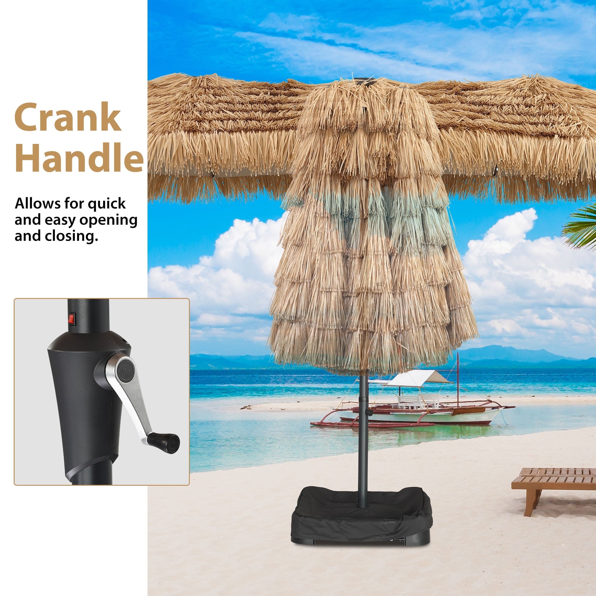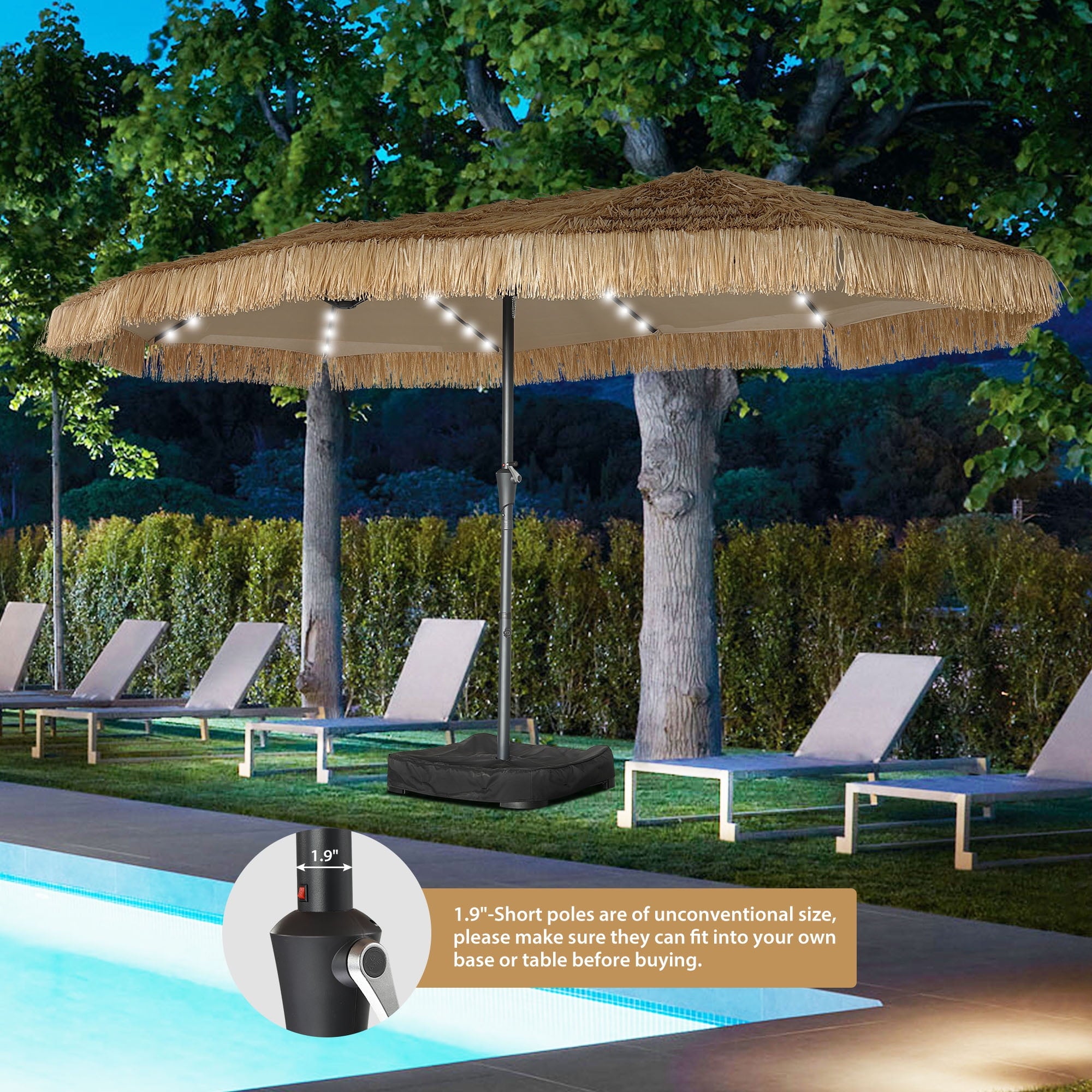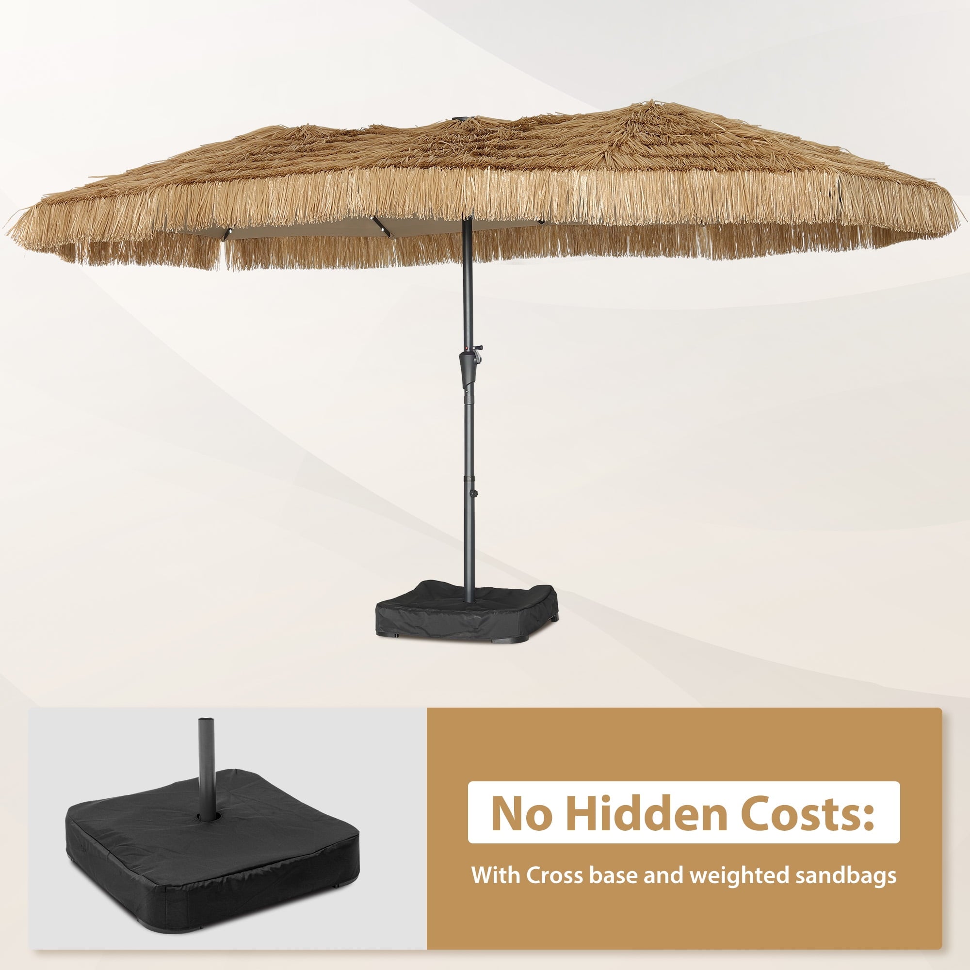 • 15ft/Thatched Tiki/Lights/Weighted Sandbags