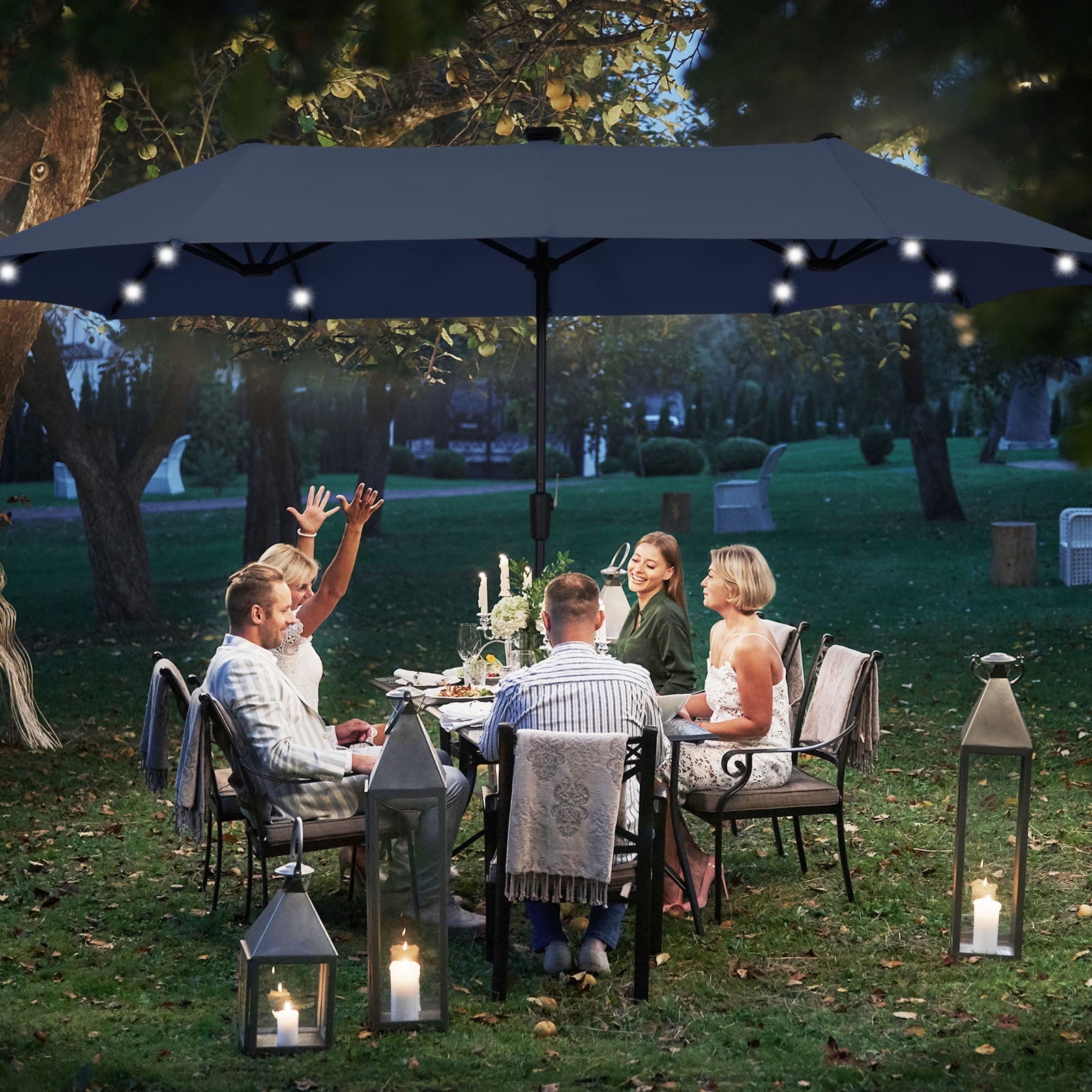 Ainfox 13ft Large Patio Umbrella, Outdoor Double-Sided Rectangle Market Heavy Duty Umbrellas without Base, Blue
