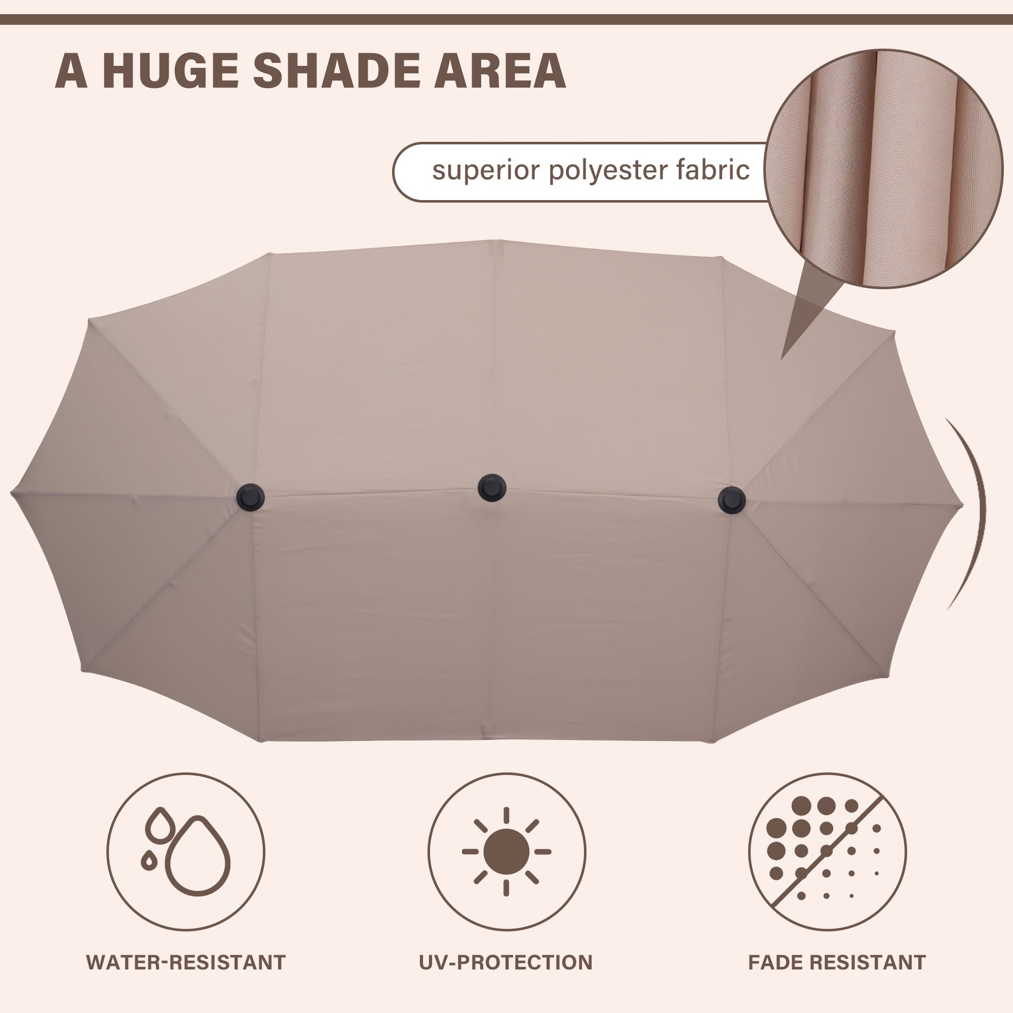 • 【Durable and sturdy canopy materials – Made of 100% polyester fabric, the umbrella outdoor patio is waterproof,fade resistant , easy to clean and UV protected, provides up to 99% UV protection on summer days and blocks most harmful UV rays and have better color fastness performance.