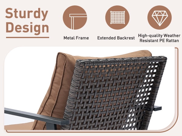 - ✔ 【Durable All-Weather Construction】 – Sturdy steel frame wrapped in handwoven PE rattan wicker, resistant to fading, cracking, and rust. Built to withstand sun, rain, and wind.