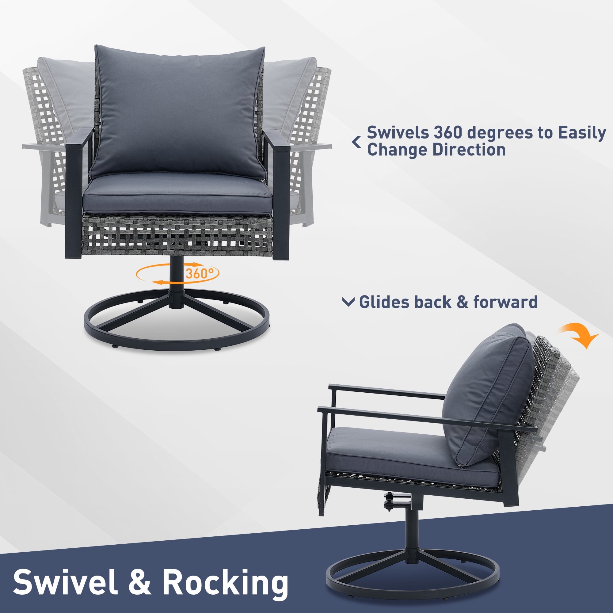 - ✔ 【Ultra-Comfortable Swivel & Glide】– Smooth 360° swivel and gentle gliding motion for the ultimate relaxation experience. Perfect for reading, lounging, or enjoying your morning coffee.
