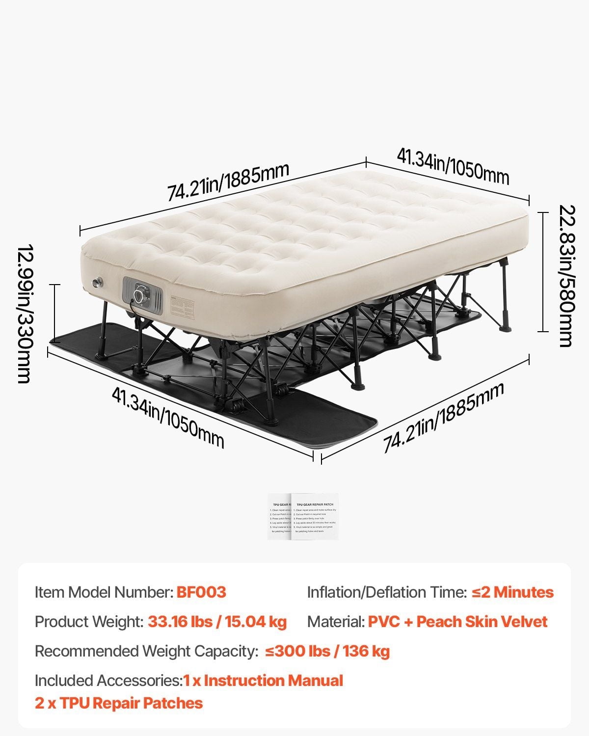 - Easy Inflation: Simply open the casing, plug in the power, adjust the settings, and walk away. The air mattress with frame will fully inflate in just 2 minutes, making setup quick and effortless.