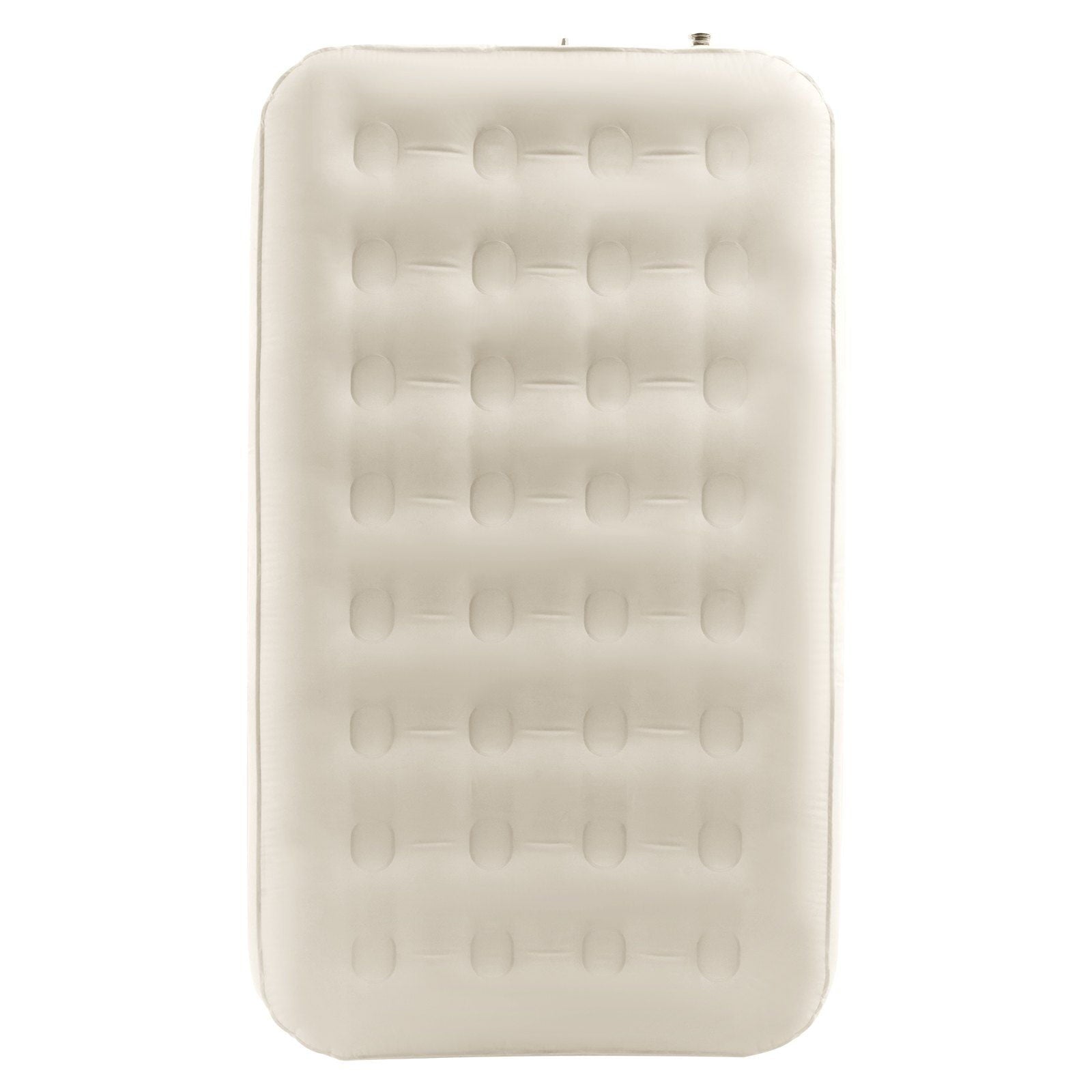 - Durable & Sturdy: This inflatable air bed supports up to 330lbs (150kg), with a recommended weight limit of 300lbs (136kg). Suitable for individuals up to 6ft tall. Made from heavy-duty PVC + peach-skin fabric, it’s durable, tear-resistant, and provides stable support.