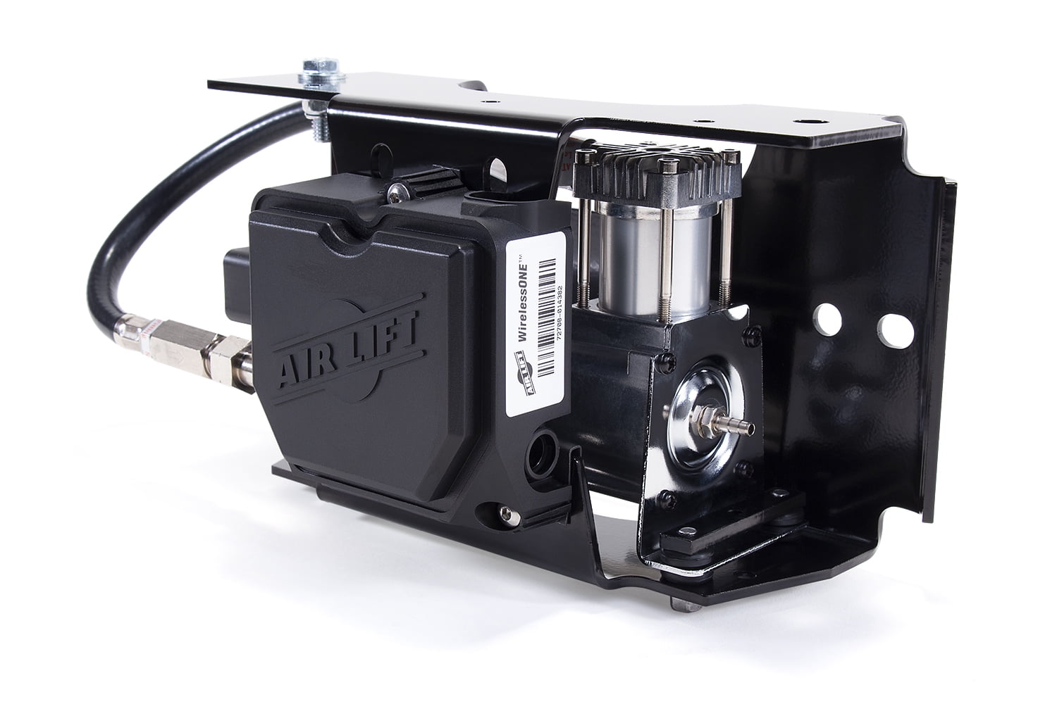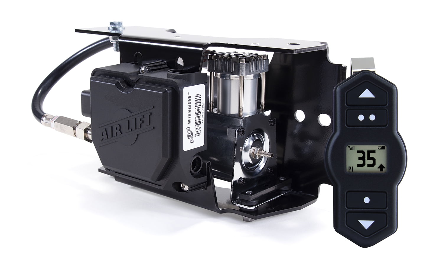 WirelessOne puts the power in your hands. Whether it is with the easy-to-read handheld controller or the free mobile app, you can inflate or deflate your air spring system with one touch. WirelessOne is a single-path system, meaning both air springs will be inflated or deflated to the same pressure. This is ideal for vehicles carrying loads that are equally distributed left-to-right. The controller and app are both programmable with user-defined presets, so WirelessOne can remember your frequently used pressures. Purchasing the WirelessOne system with EZ Mount gives you everything you need for the fastest, easiest installation possible. EZ Mount packages the manifold and upgraded, heavy-duty compressor into one convenient, pre-assembled and factory-tested bracket, giving you everything you need to have full control of your air springs in no time at all.