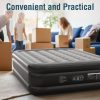 - Excellent Sleeping Experience: The top of 18 inch Air Mattress Queen is made of high quality flocked fabric, which is waterproof, odor-resistant and easy to clean. Sleeping on this Queen Size Inflatable Bed will not only provide you with a skin-friendly soft feeling, but also like mother giving you a kind hug.