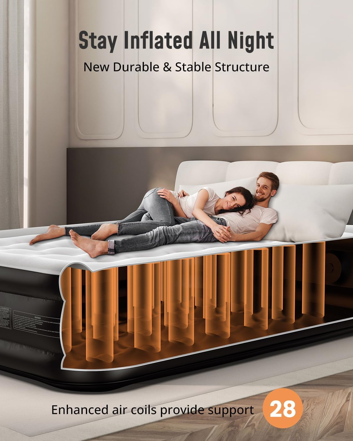 - Incorporates 28 internal air coils for enhanced support.