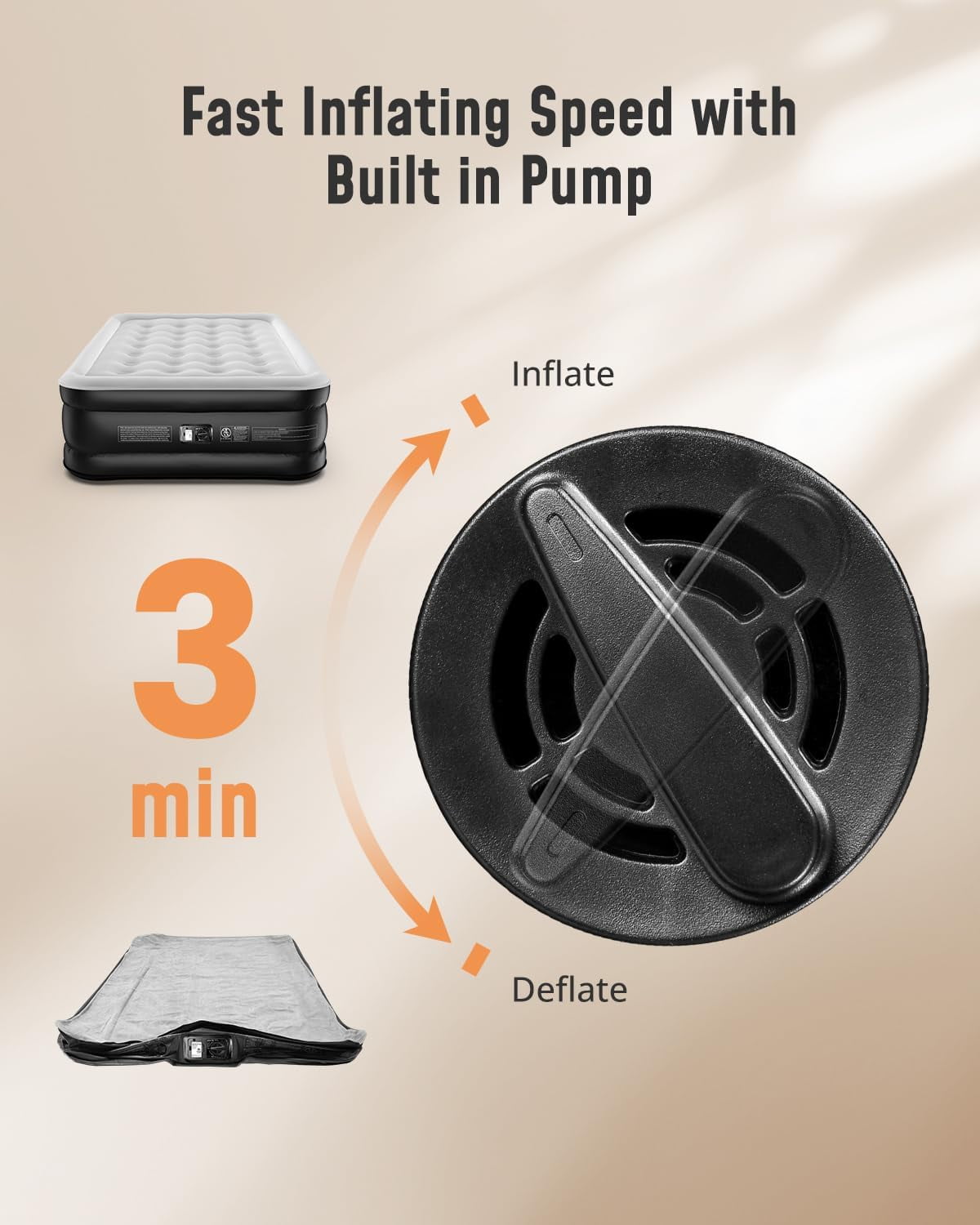 - Achieves desired comfort and firmness in just 3 minutes with the push of a button.