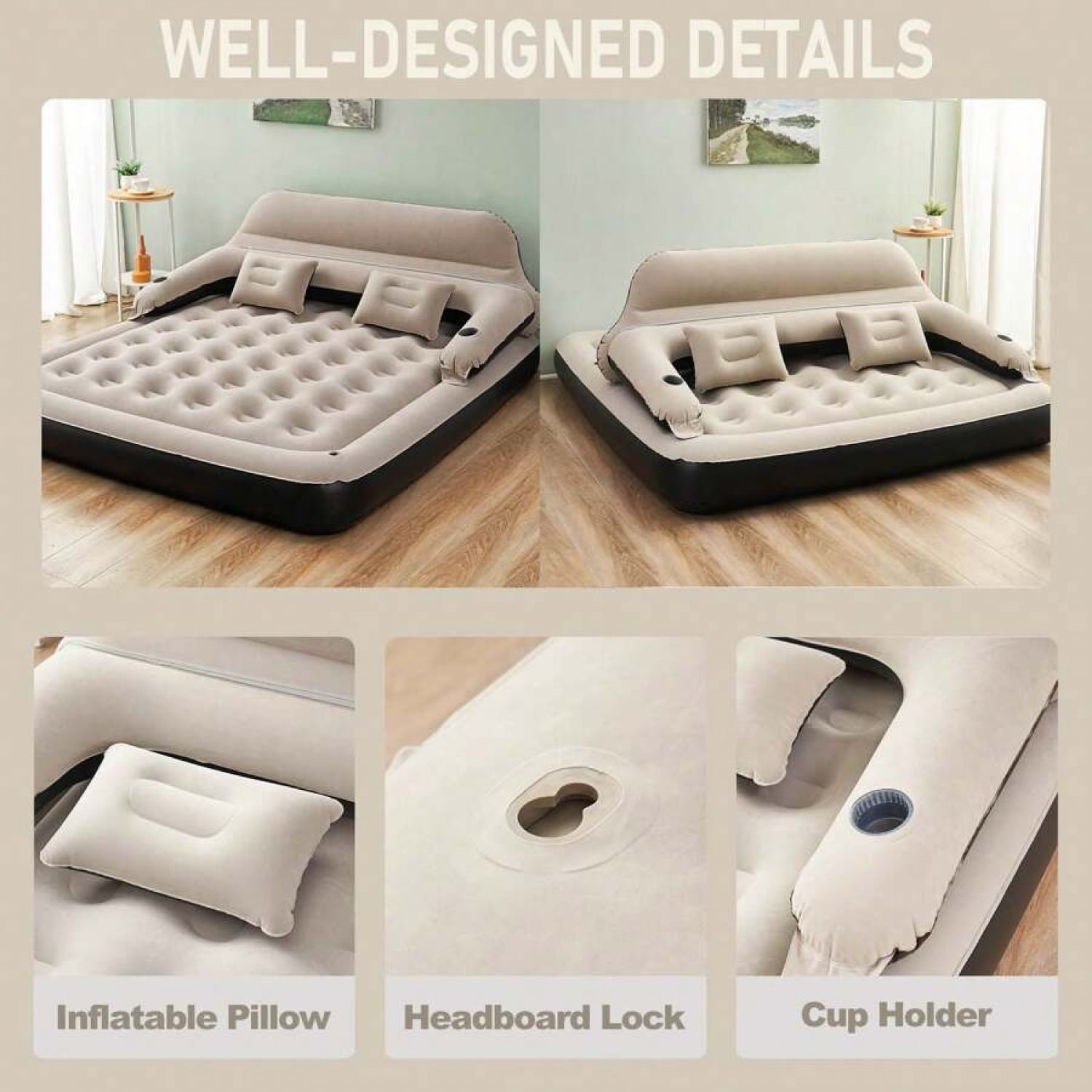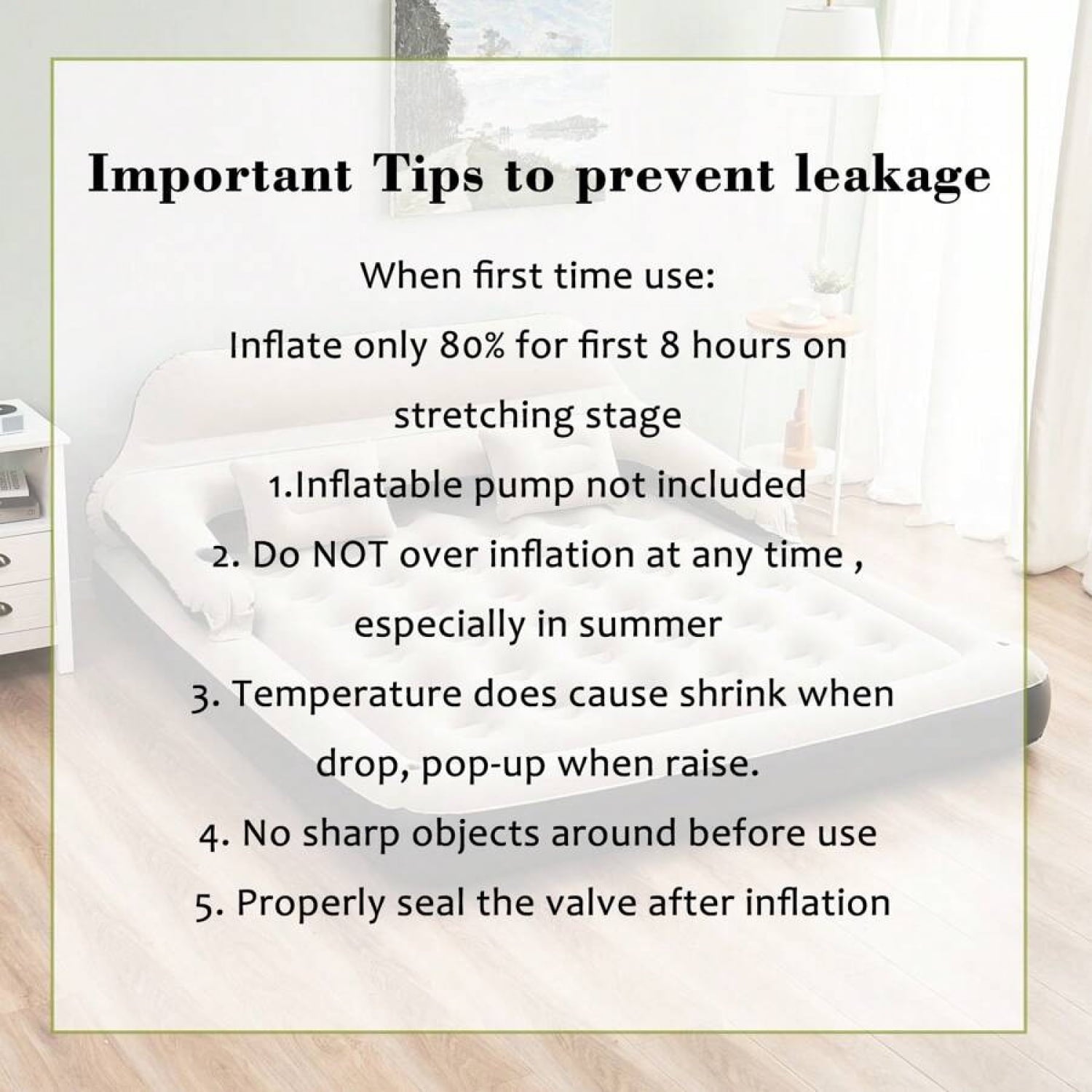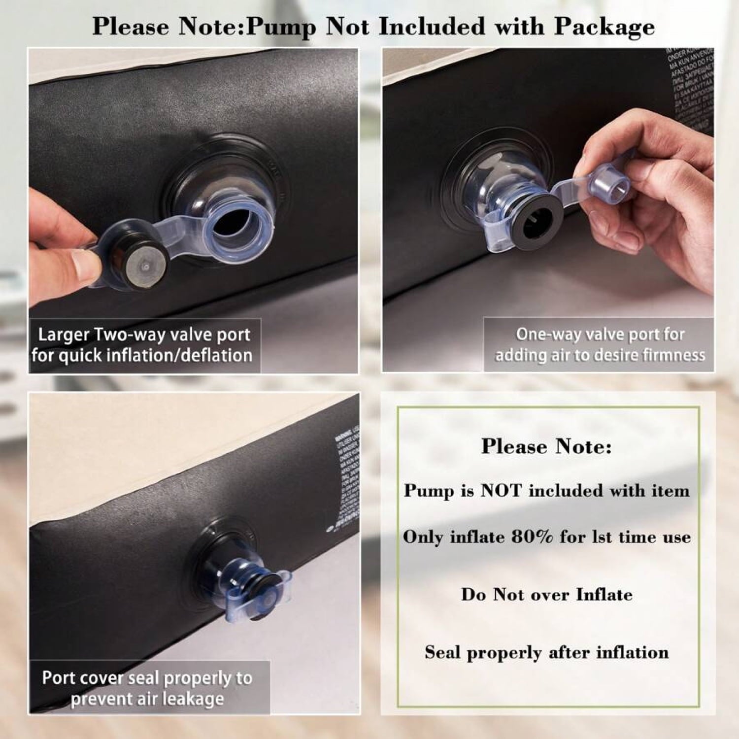 Dimension: The mattress measures 79.5″ x 60″ x 27.5″ and can hold 450 pounds.(Air pump not included)
