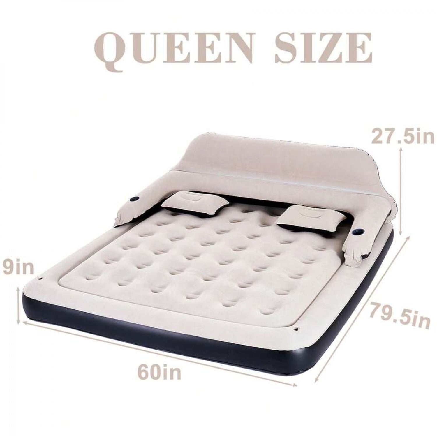 - Dimension: The mattress measures 79.5″ x 60″ x 27.5″ and can hold 450 pounds.(Air pump not included)