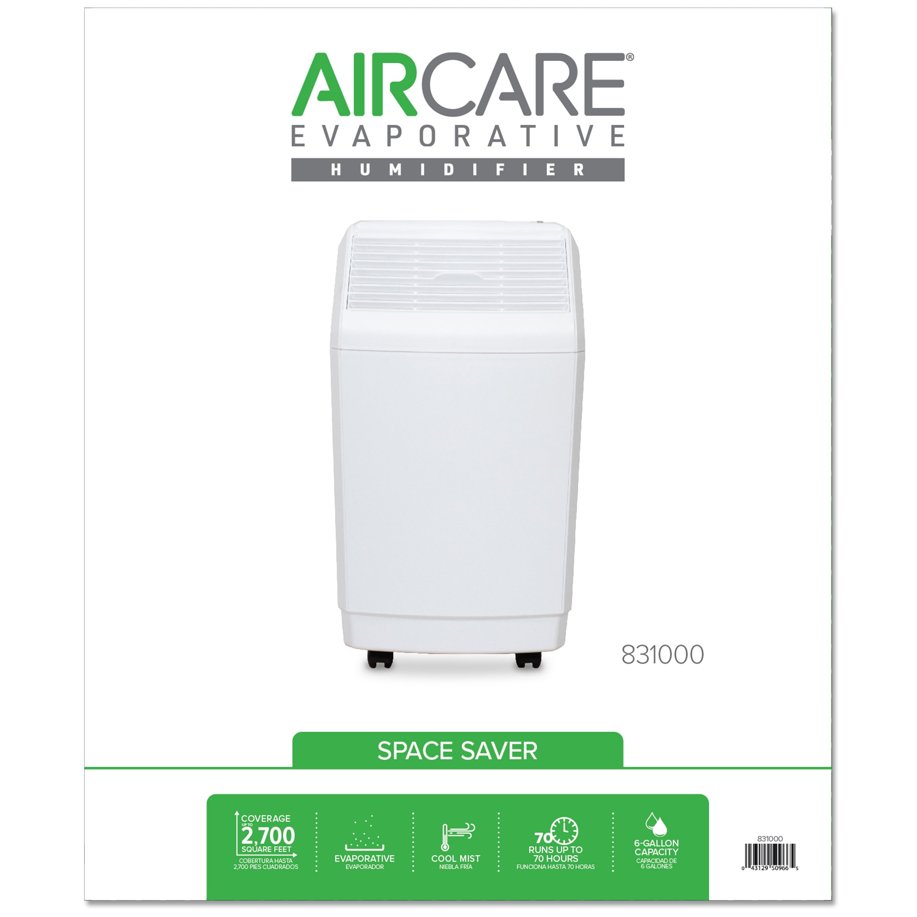 This item is REFURBISHEDThis Space-Saver humidifier from AIRCARE is sure to complement any decor. Our humidifiers work by adding invisible moisture to your environment by moving dry air through a saturated wick. MaintainingRefurbished AIRCARE 6 gal. Evaporative Humidifier for 2700 sq. ft.-831000