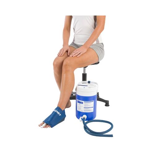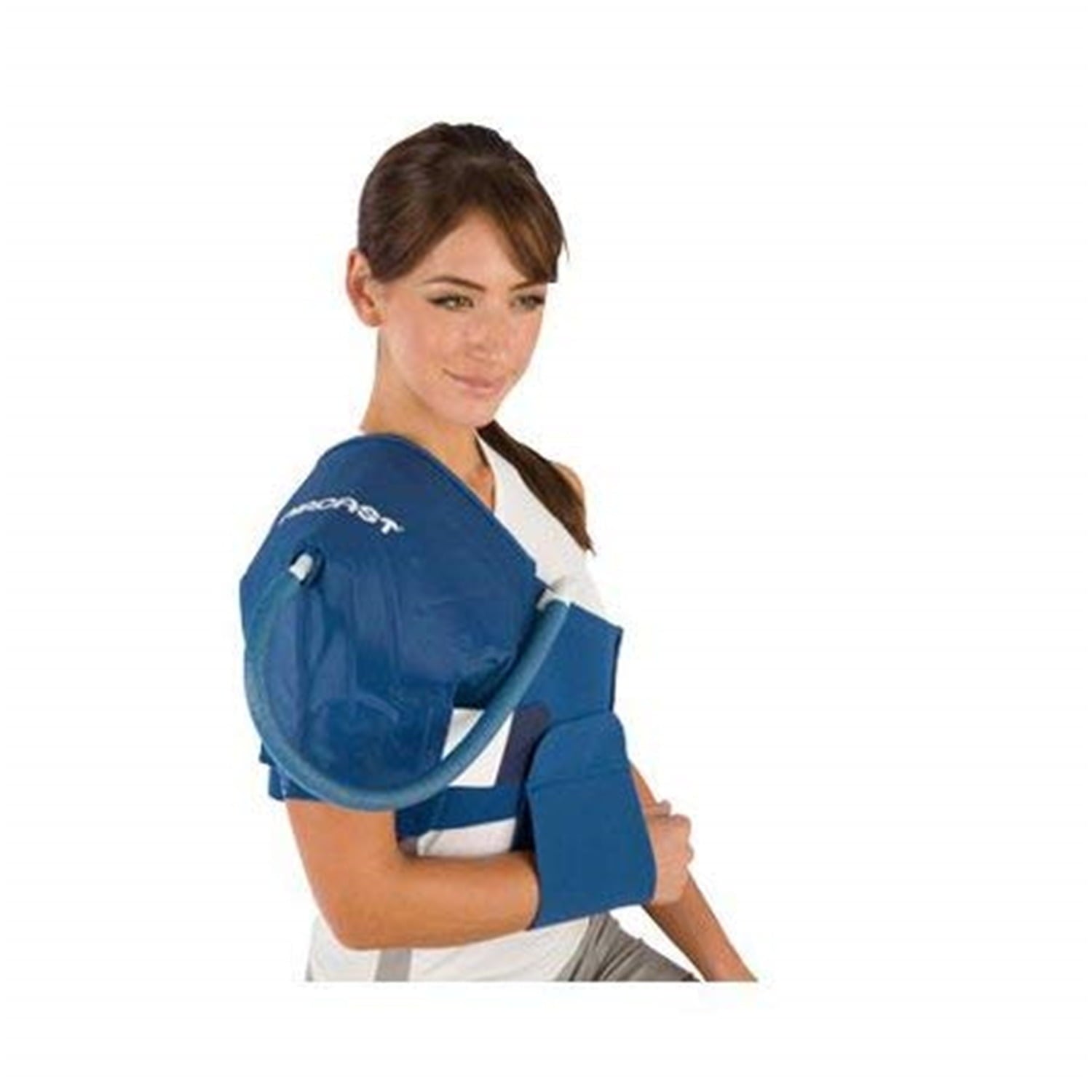 Cold therapy with the AirCast? CryoCuff? combines compression and cold. Compression minimizes swelling, while cold minimizes pain. Set consists of water cooler and cuff. Cooler holds enough ice and water for 8 hours of cryotherapy. Compression is gravity controlled. Cuffs are made of nylon and vinyl. Use with gravity feed (included) or continuous AutoChill electric pump (sold separately).AirCast? CryoCuff? – shoulder, XL strap with gravity feed cooler