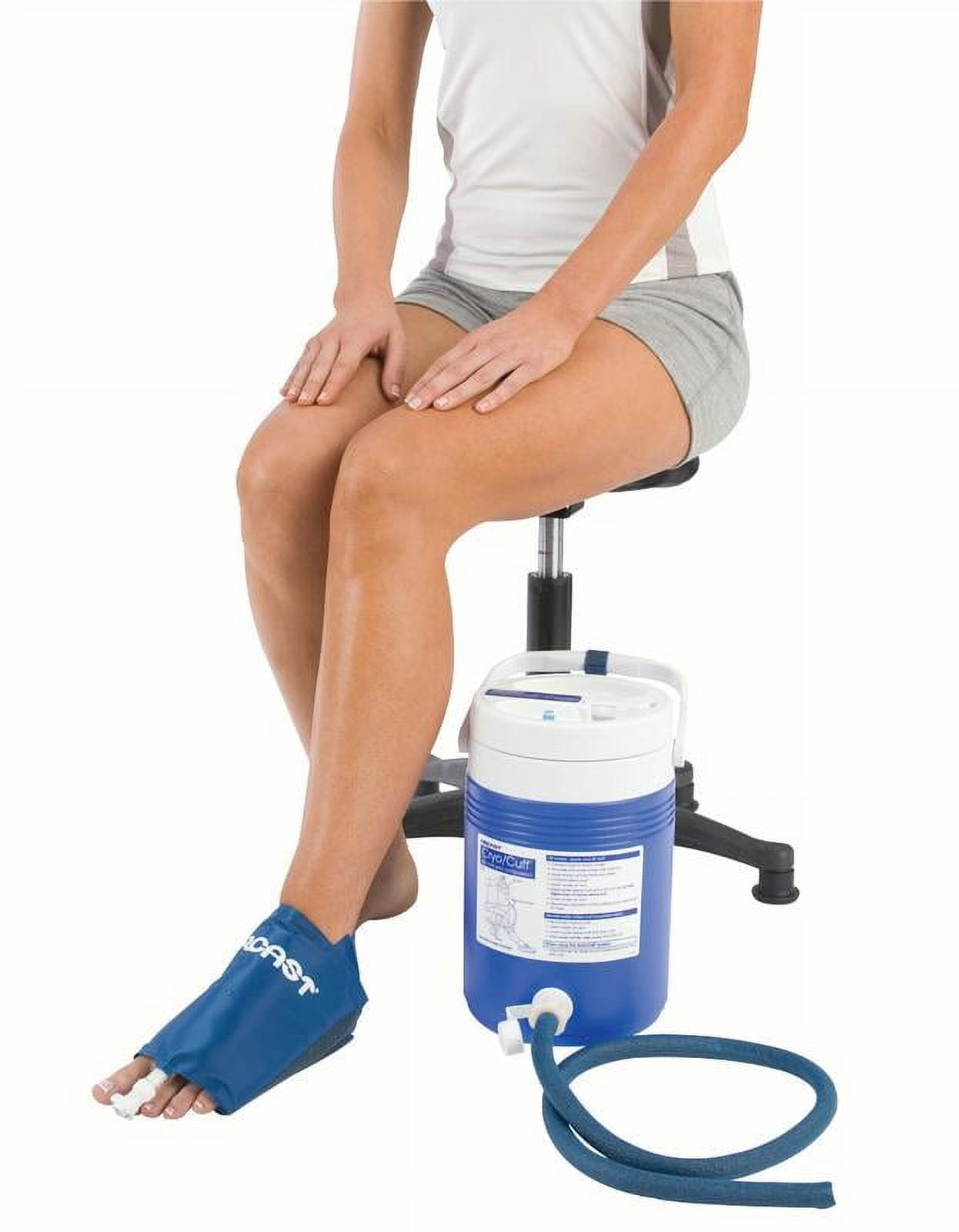 Integrated cold and compression is clinically proven to help reduce post-operative swelling and regain range of motion. The Cryo/Cuff IC provides both gravity and motorized cold and compression therapy for flexibility of care. An integrated pneumatic pump within the cooler lid provides automated cold and compression therapy, with simplicity of design and ease-of- use operation. Indication: Ideal for post-operative recovery, trauma, athletic training rooms, and home use.AirCast® CryoCuff® IC Cooler Only