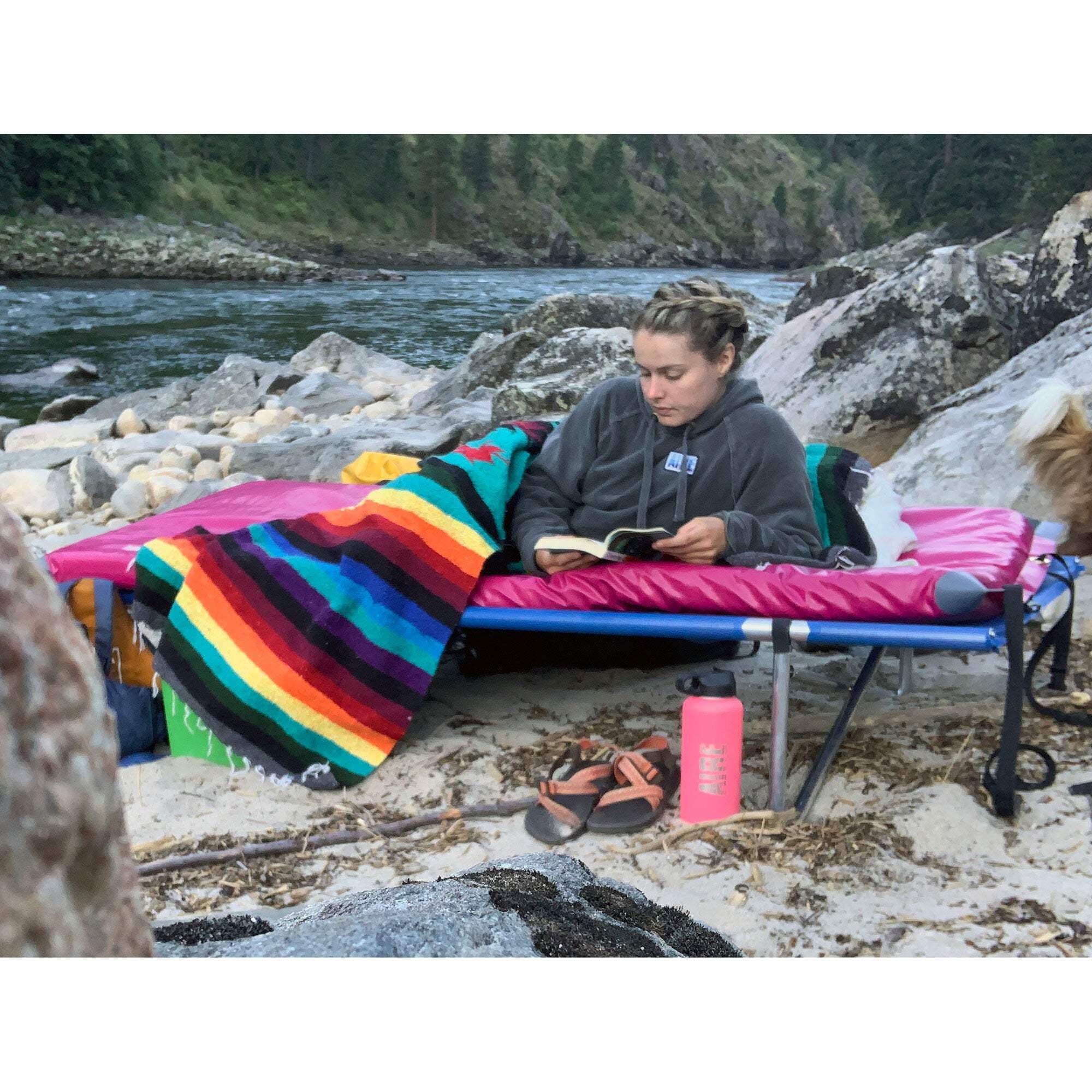 Upgrade your next river trip with the AIRE Landing Pad, a foam sleeping pad that is perfect for camping and rafting. Its self-inflating feature ensures a hassle-free setup, and the robust waterproof construction guards against leaks. Looking for a truly multi-functional inflatable camping pad? Use it as a seat by day or a float on calmer water. Camping has never been so easy with this camping self-inflatable mattress, a must-have for any nature excursion.