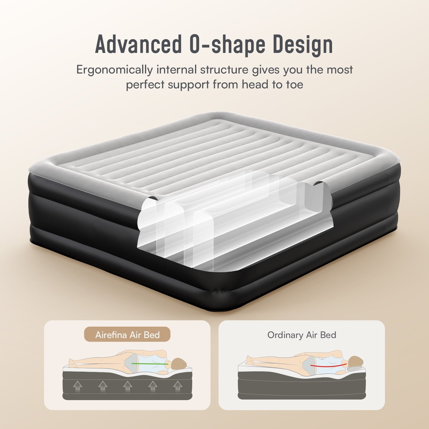 - Featuring the advanced Type-0 air coil structure, this king-size air mattress with a built-in pump sets a new standard for inflatable beds. It remains airtight for up to 48 hours, ensuring consistent firmness and preventing unexpected deflation. Enjoy uninterrupted comfort night after night.