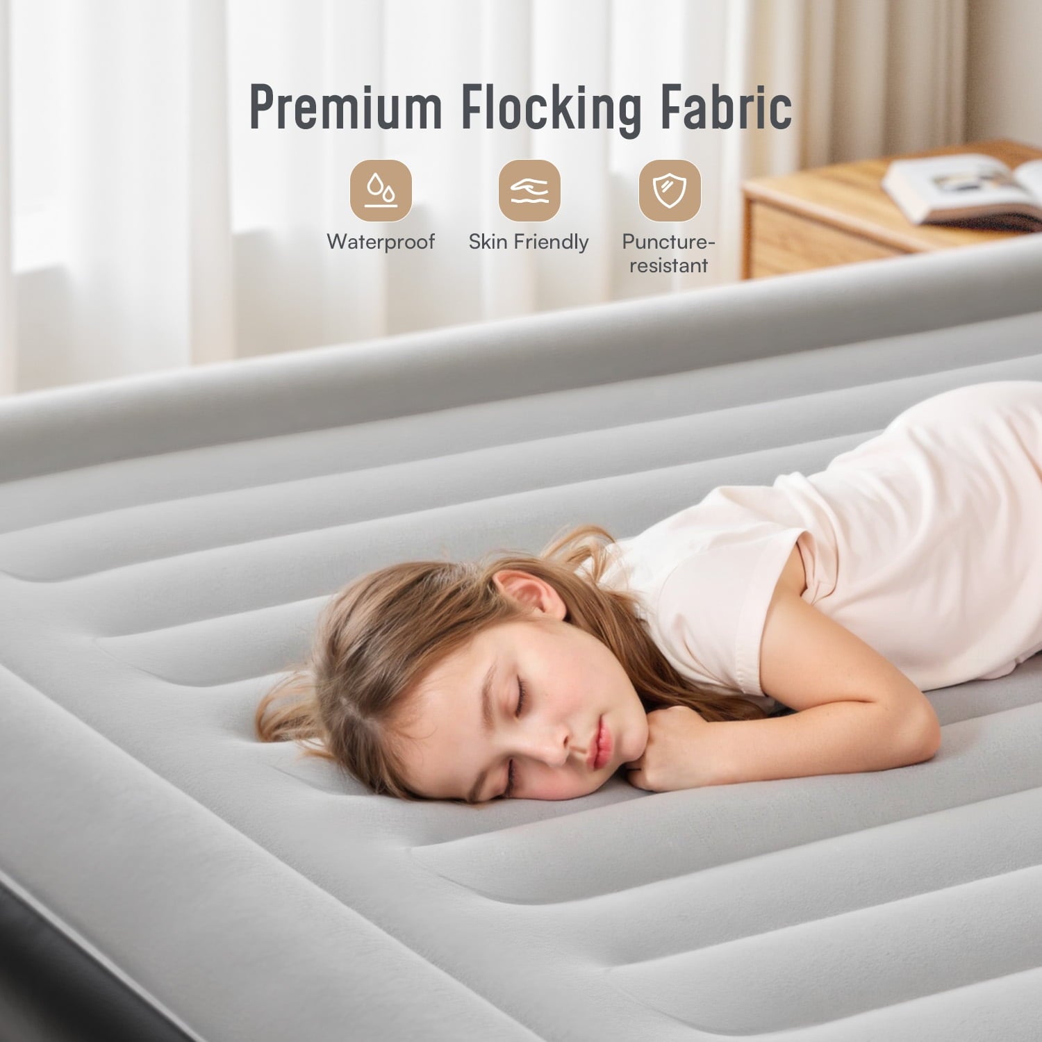 - The mattress boasts a soft, waterproof flocked top layer and multi-layer PVC construction, offering an unparalleled sleeping experience. It’s easy to clean, puncture-resistant, and abrasion-resistant. **Note:** Avoid sharp objects and ensure the area is clear before placing the mattress.