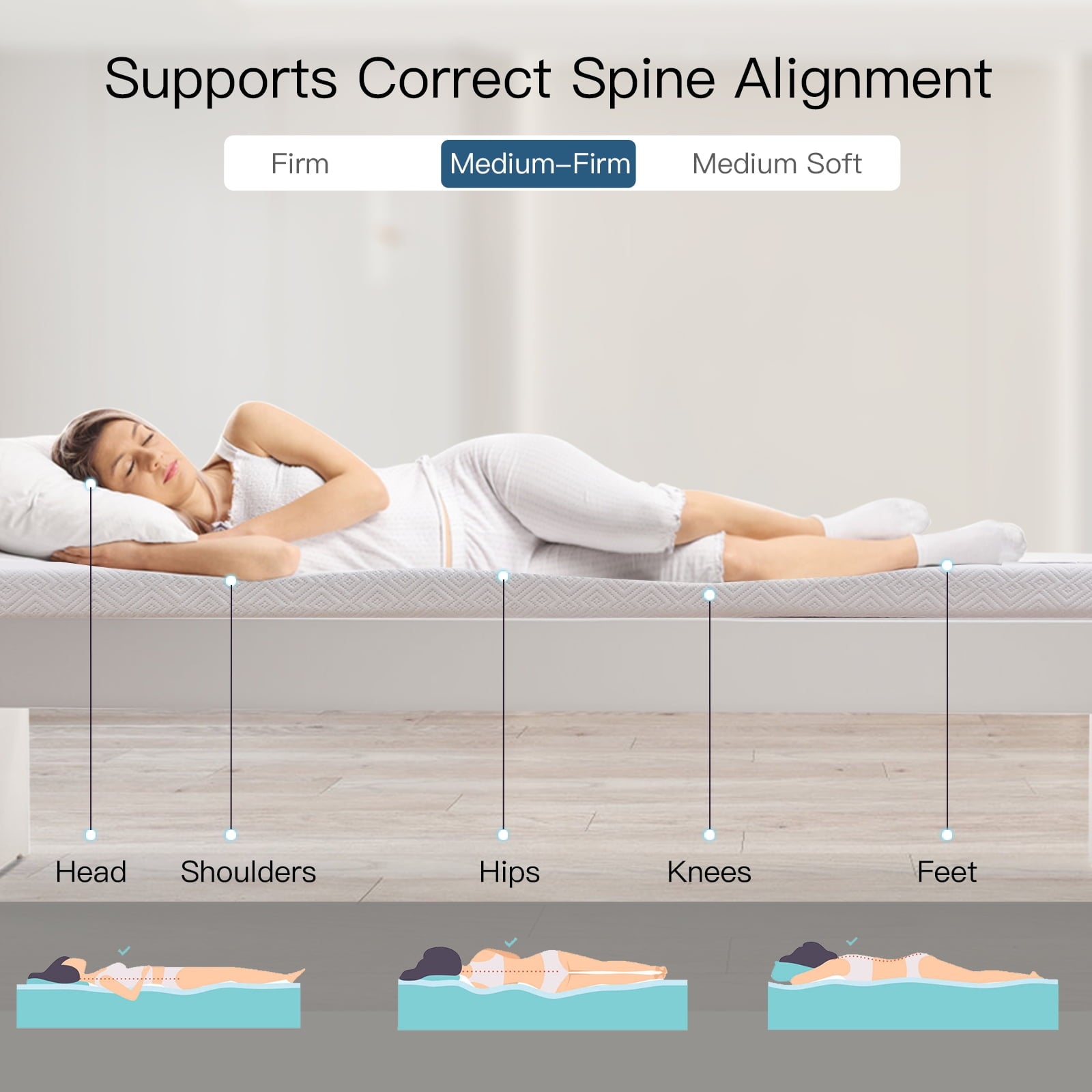 Slow rebound: Memory foam also known as slow rebound, Airensky Memory foam mattress topper can effectively balance and disperse the pressure at the contact points between the human body and the mattress, achieving the most comfortable state.
