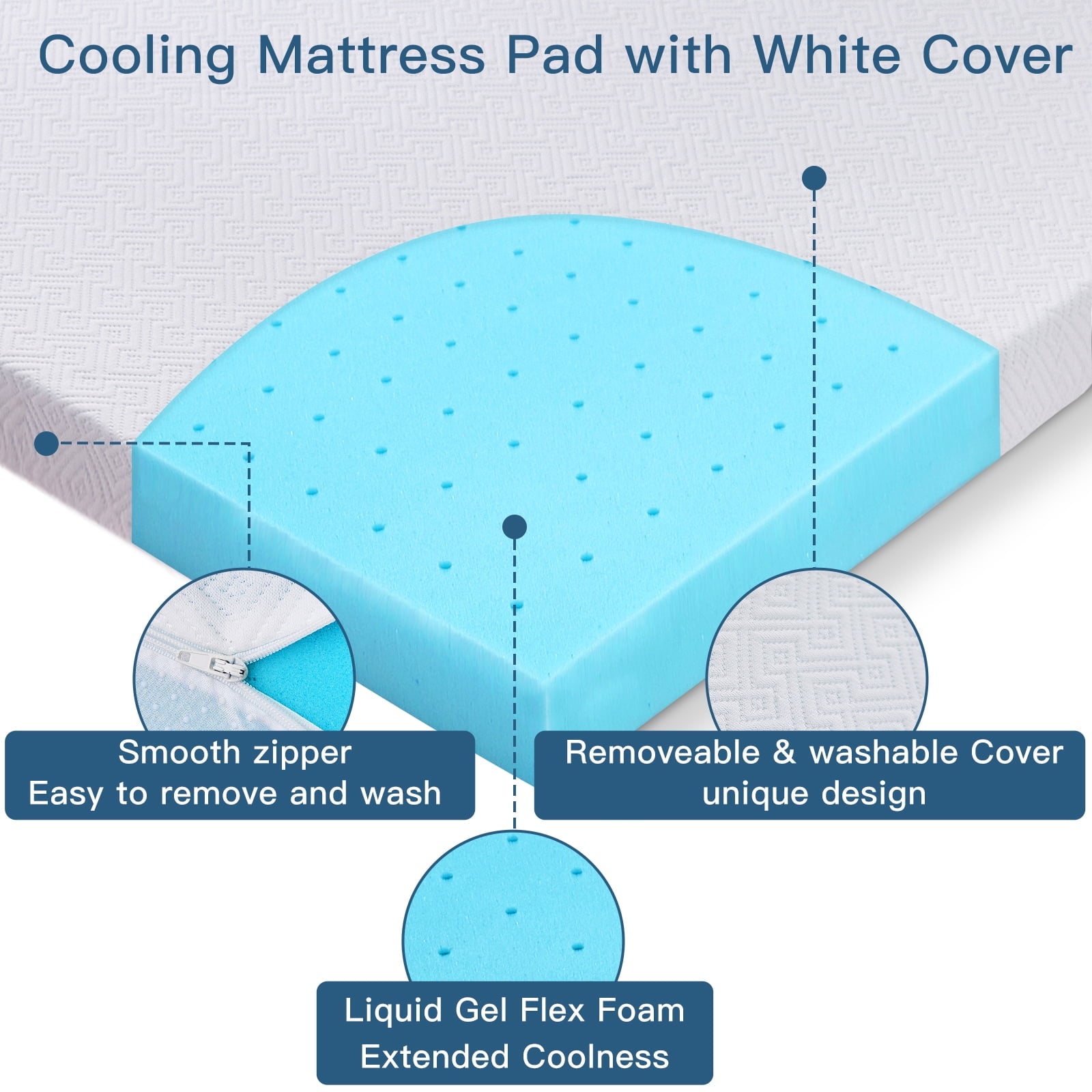 - 【Skin-friendly Cover & Durable Zipper】Made with skin-friendly and breathable fiber. The topper cover is machine washable and wear-resistant, with adjustable elastic straps and anti-slip surface backing to prevent sliding, straps are stretchy and reliable. Premium durable zipper for convenient disassembly and washing, won’t break. Keep your topper fresh and clean.