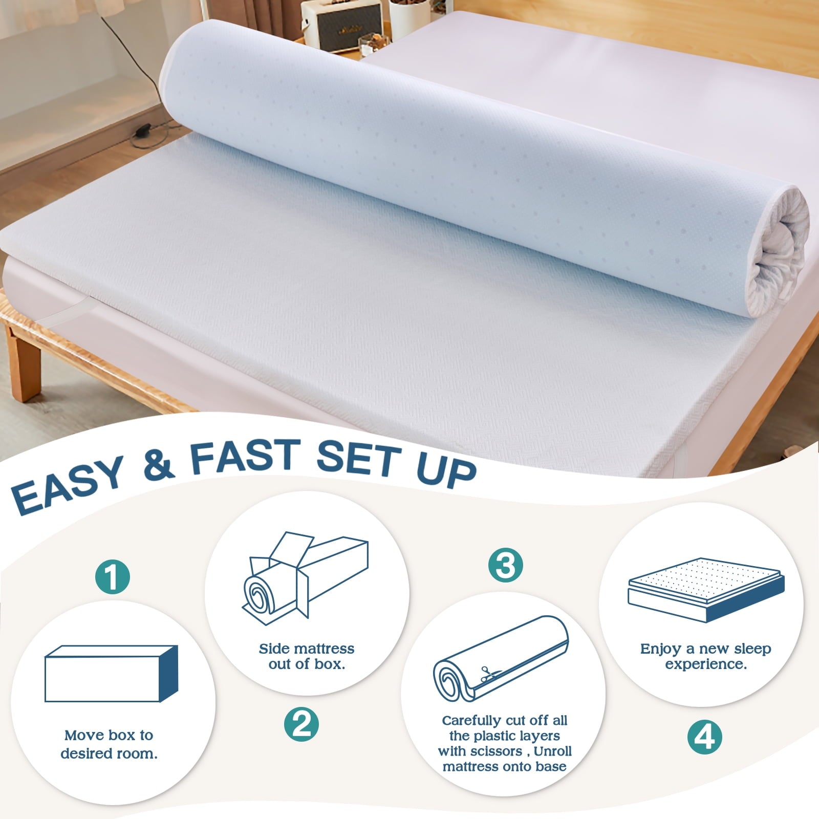 - 【Upgraded Gel Memory Foam & no weird smell】No smell at all. High-density memory foam provides adaptive comfort and support. Airensky memory foam mattress topper is breathable to prolong the service life of the mattress, and will bring you a new sleeping experience that is comfortable and not stuffy all night. Enjoy deeper and better and more comfortable sleep.
