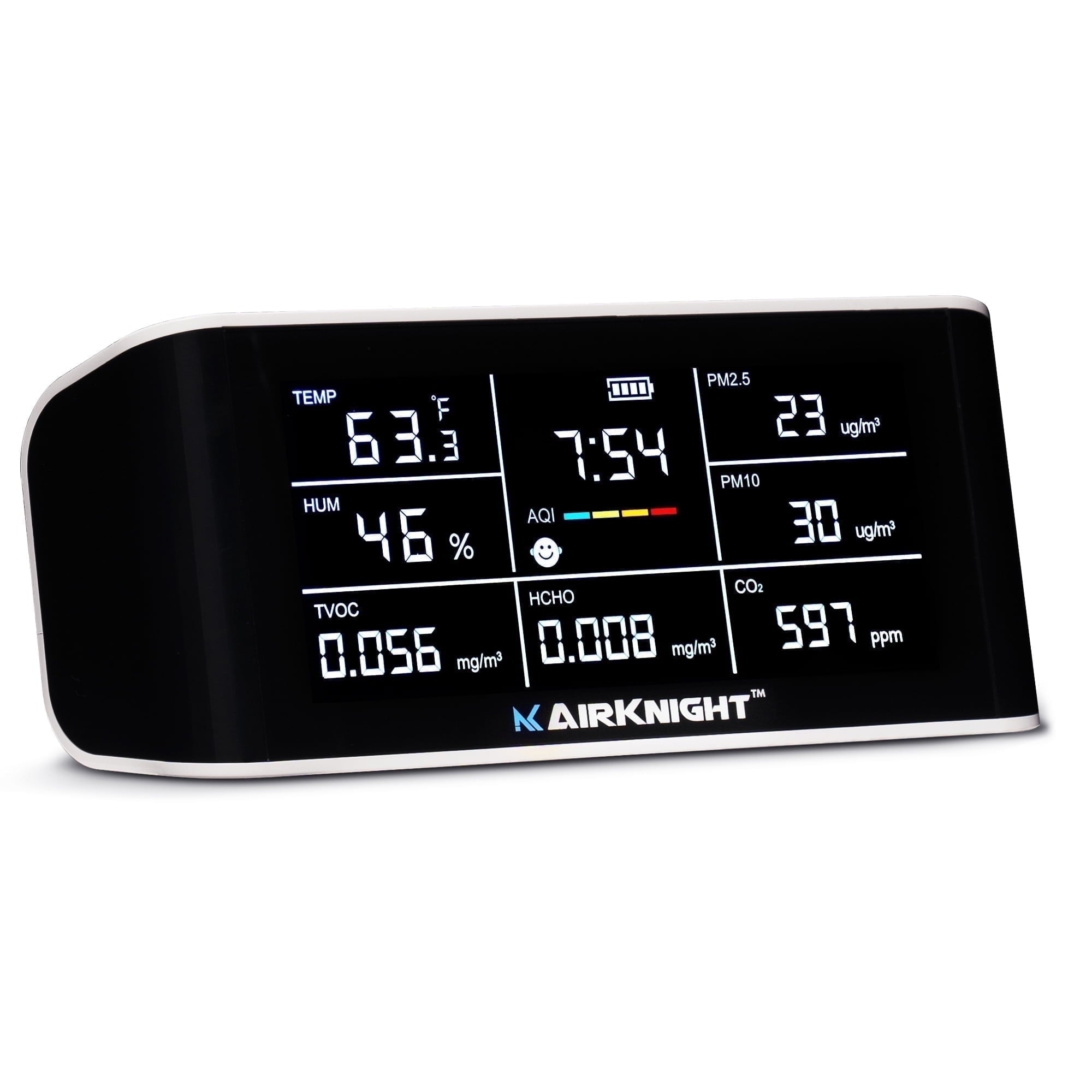 - ✅ [PROTECTS EVERY BREATH] – When it comes to the health of your family, AirKnight air quality tester for home knows that every breath counts. Our 9-in-1 air quality monitor is equipped with powerful sensors that detect the main 8 kinds of air pollution (CO2, VOCs, Formaldehyde, AQI, PM2.5 & PM10 Dust Particles, & more) in REAL-TIME, all displayed on one sleek, clear LCD screen.