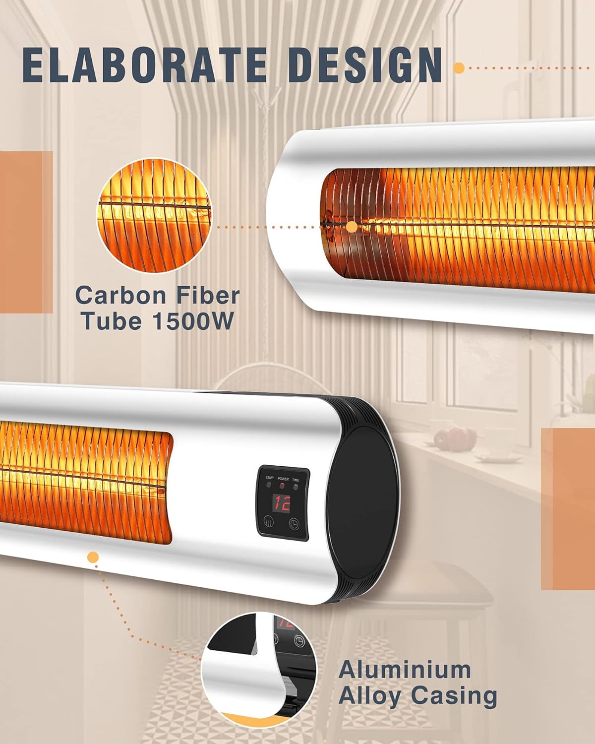- Carbon Tube Heating Technology: Provides efficient and even heat distribution for outdoor comfort