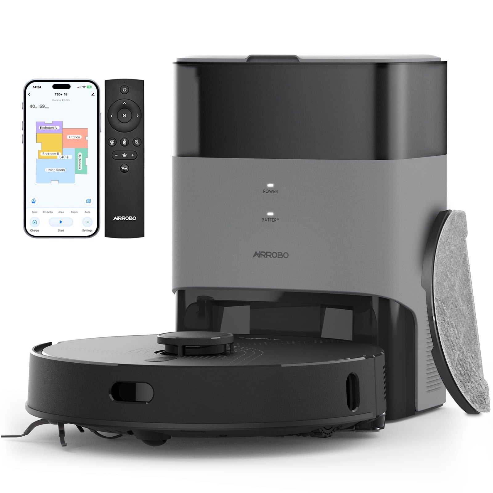 Home Robotic Floor Cleaners AIRROBO Robot Vacuum Cleaner and Mop Combo L40+, 60 days Self-Empty Bin, 180 min Runtime, APP and Voice Control