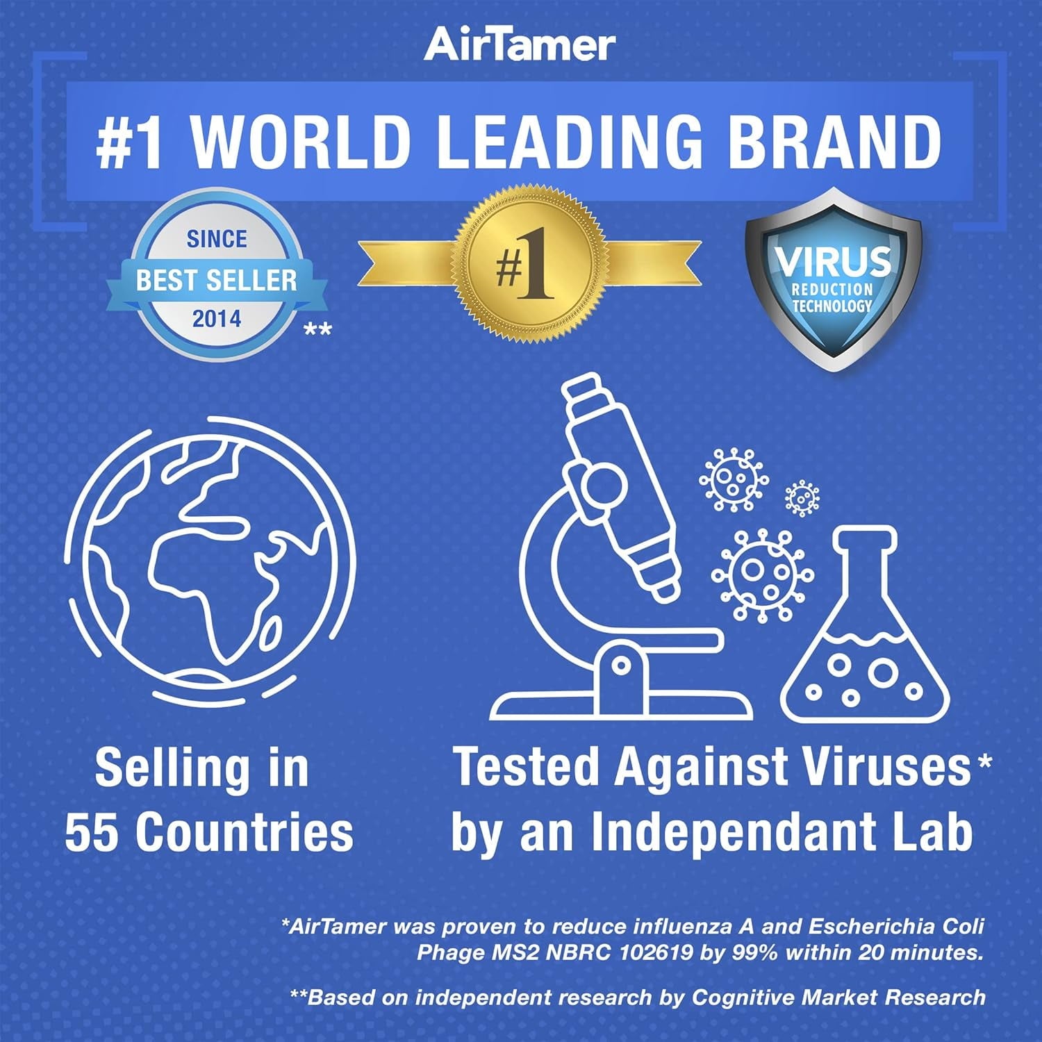 The AirTamer A310 is the worlds most effective portable air purifier for travel with leather travel case. AirTamers Advanced Ionic Technology emits a constant stream of healthy negative ions that force airborne pollutants away from your personal space giving you a zone of cleaner, healthier air.
